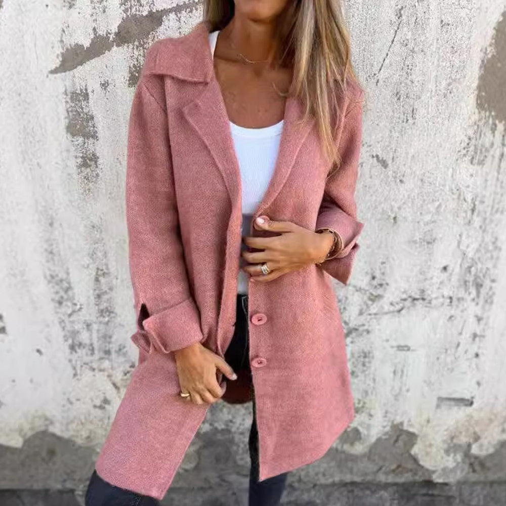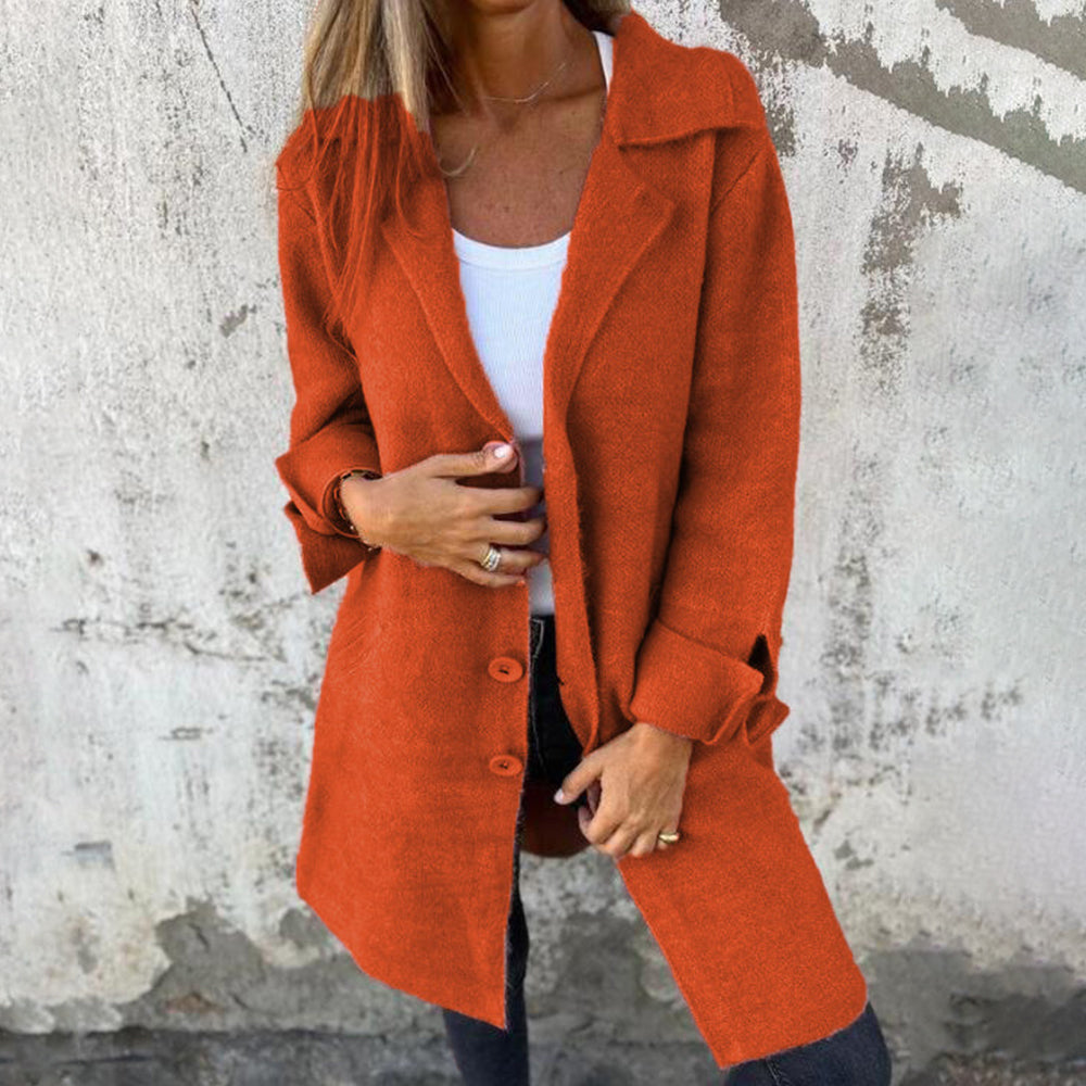 • 1 x Einreihiger, mittellanger Damenmantel mit einfarbigem Revers und Taschen