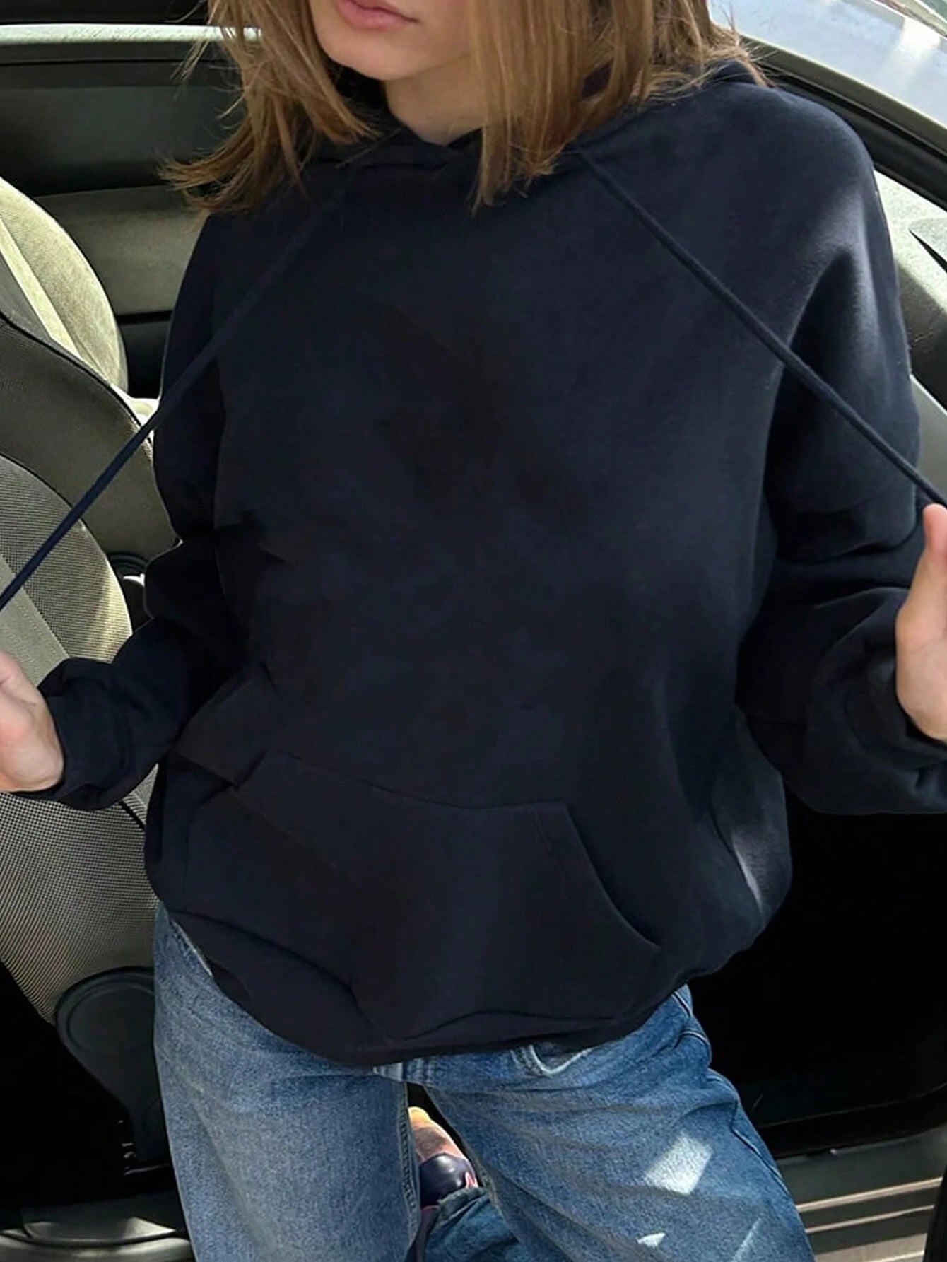 - 1 x Neues einfarbiges, lockeres Langarm-Sweatshirt mit Kapuze und Knopfleiste für Damen