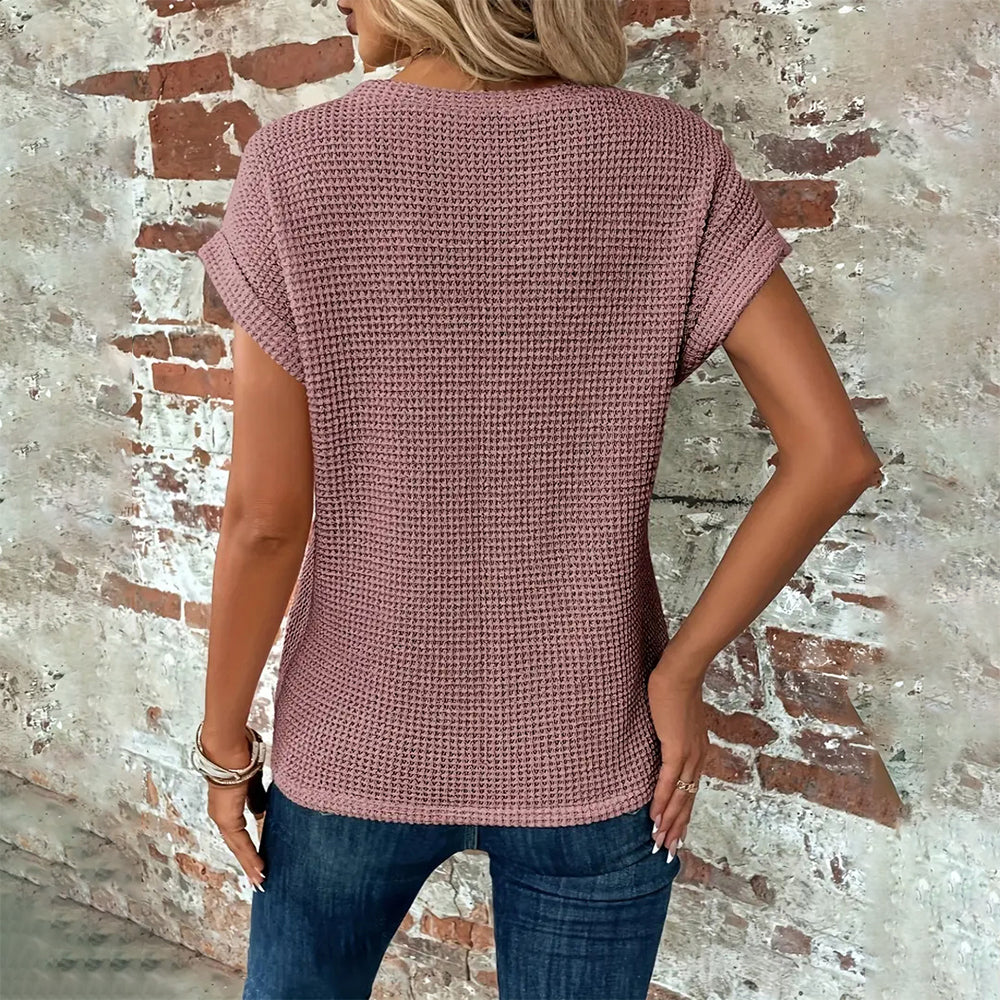 Stilvolles, elegantes, einfarbiges T-Shirt mit Rundhalsausschnitt für Damen im Sommer