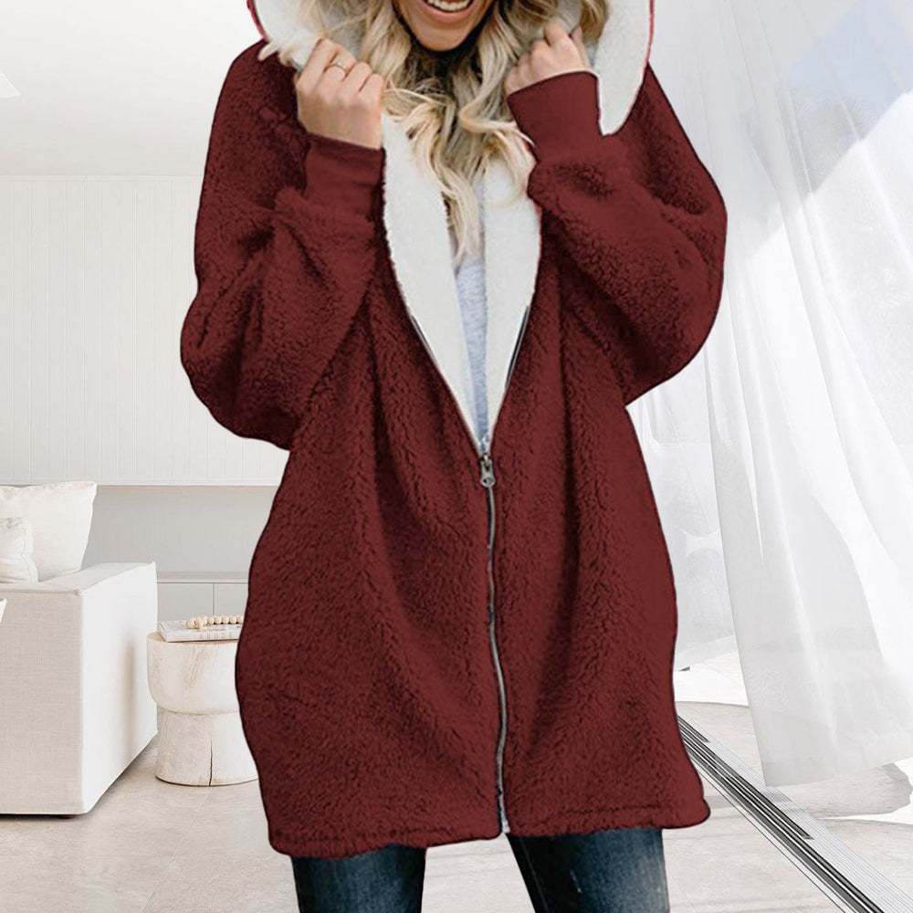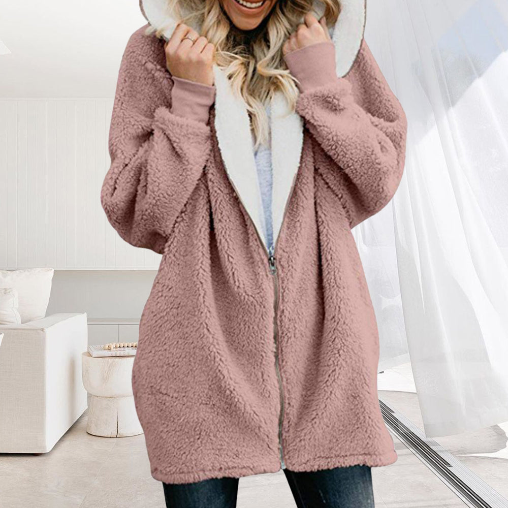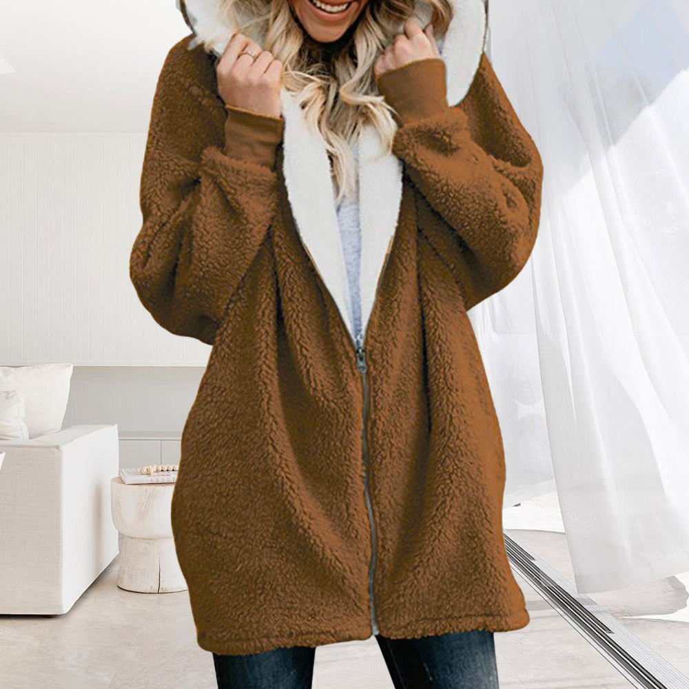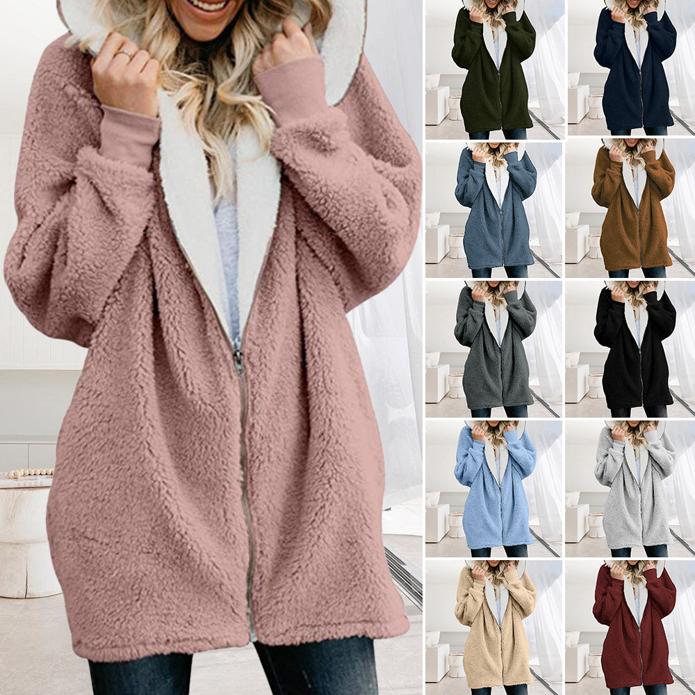 2024 Herbst Und Winter Neue Mit Kapuze Reißverschluss Strickjacke Plüsch Dicken Mantel
