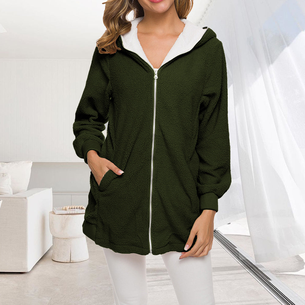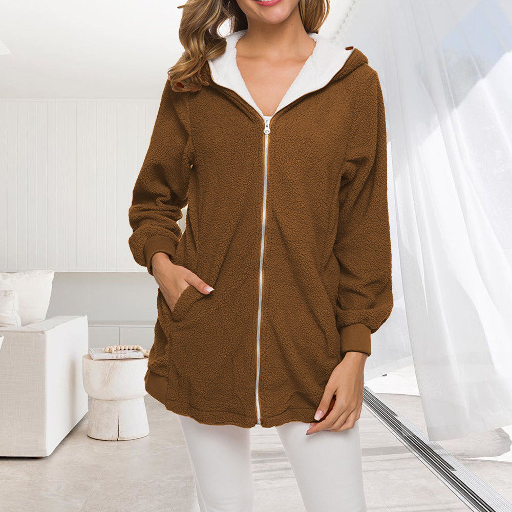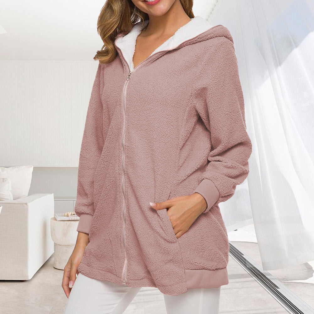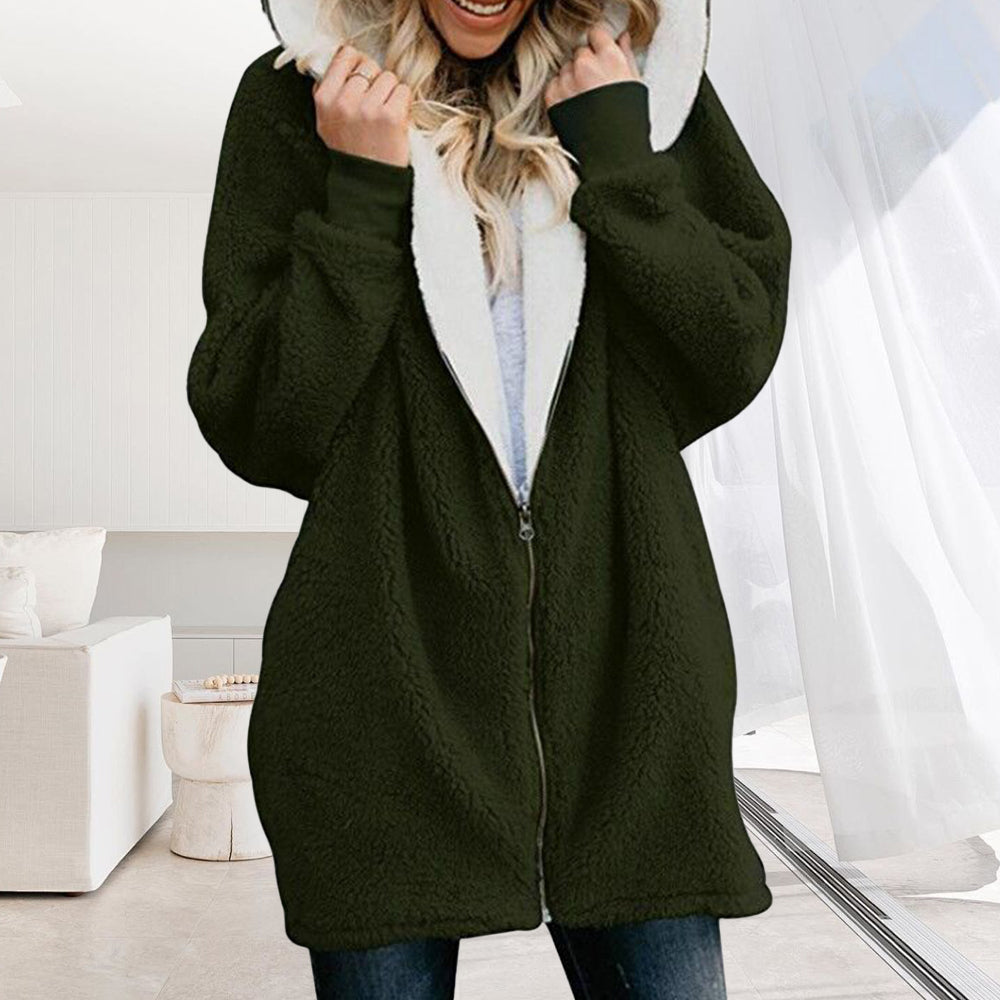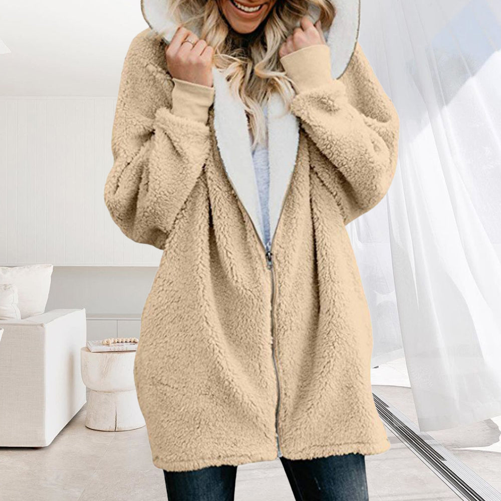 • 1 x 2024 Herbst Und Winter Neue Mit Kapuze Reißverschluss Strickjacke Plüsch Dicken Mantel