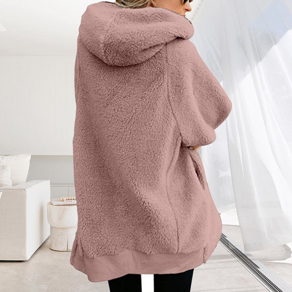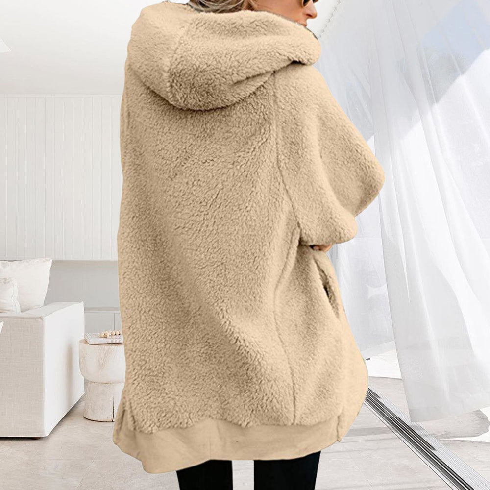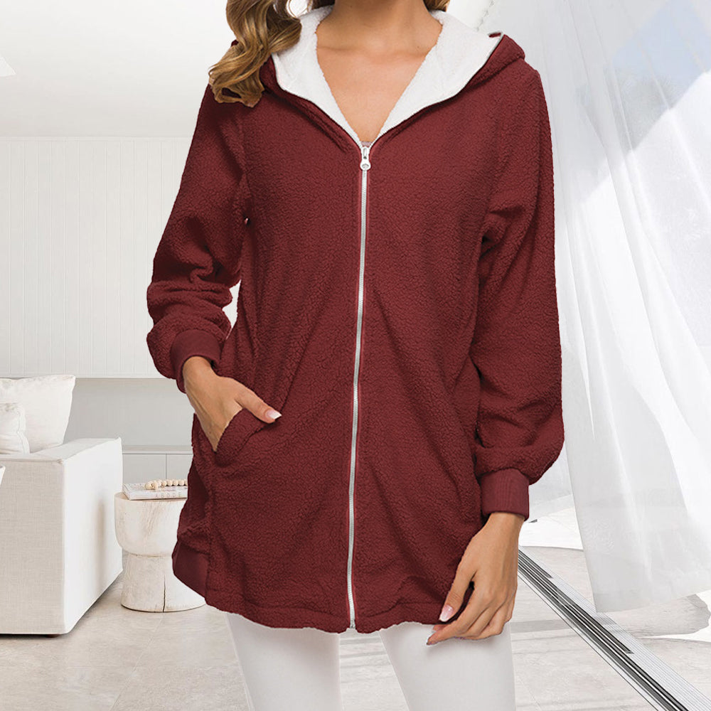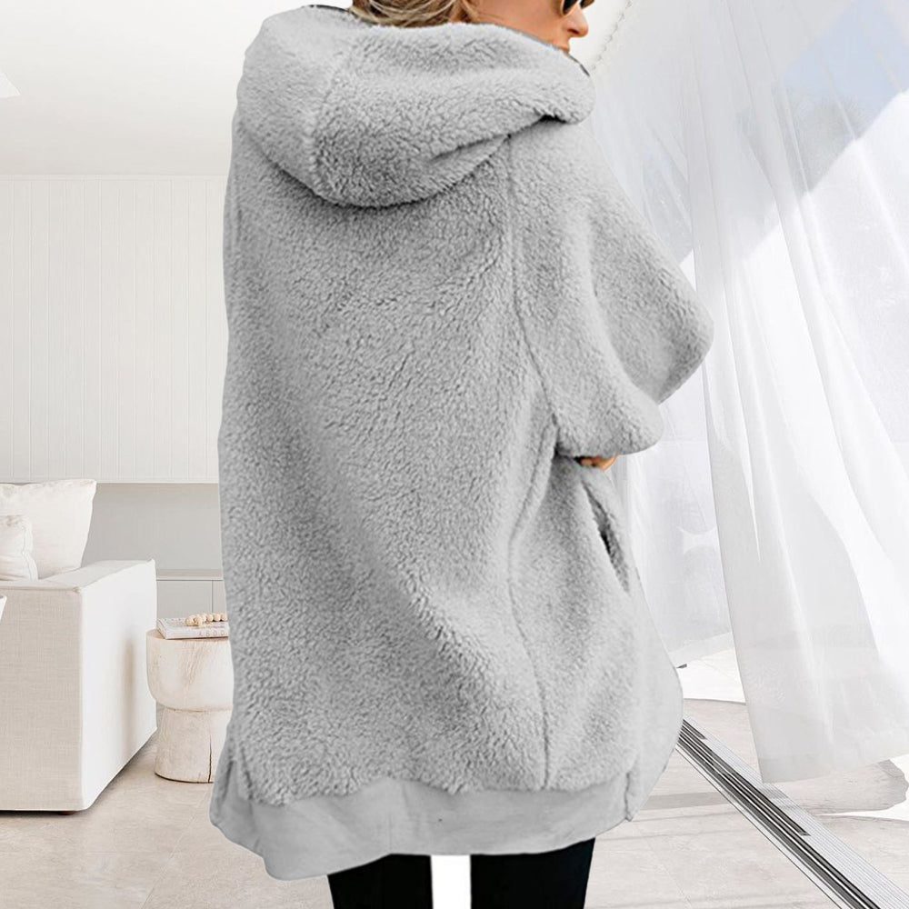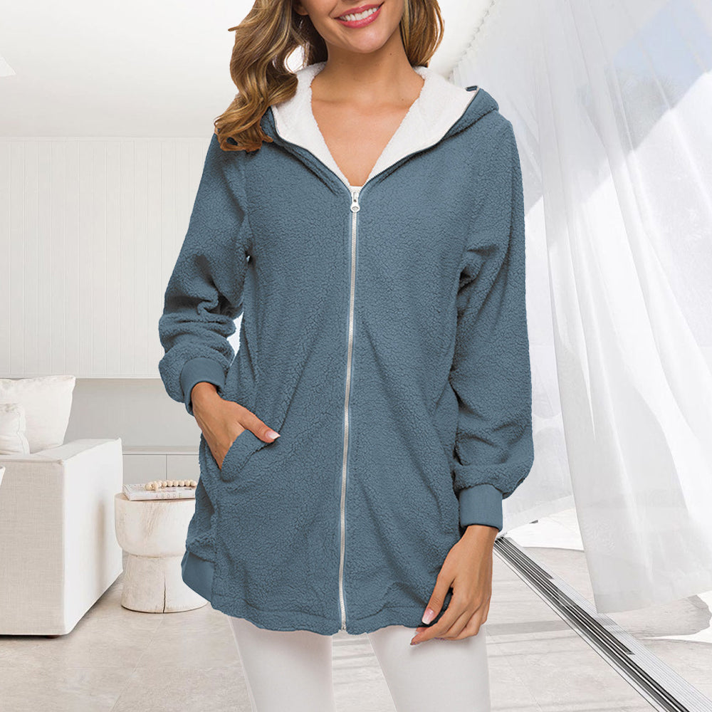 • 1 x 2024 Herbst Und Winter Neue Mit Kapuze Reißverschluss Strickjacke Plüsch Dicken Mantel