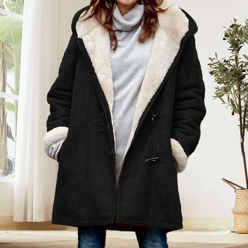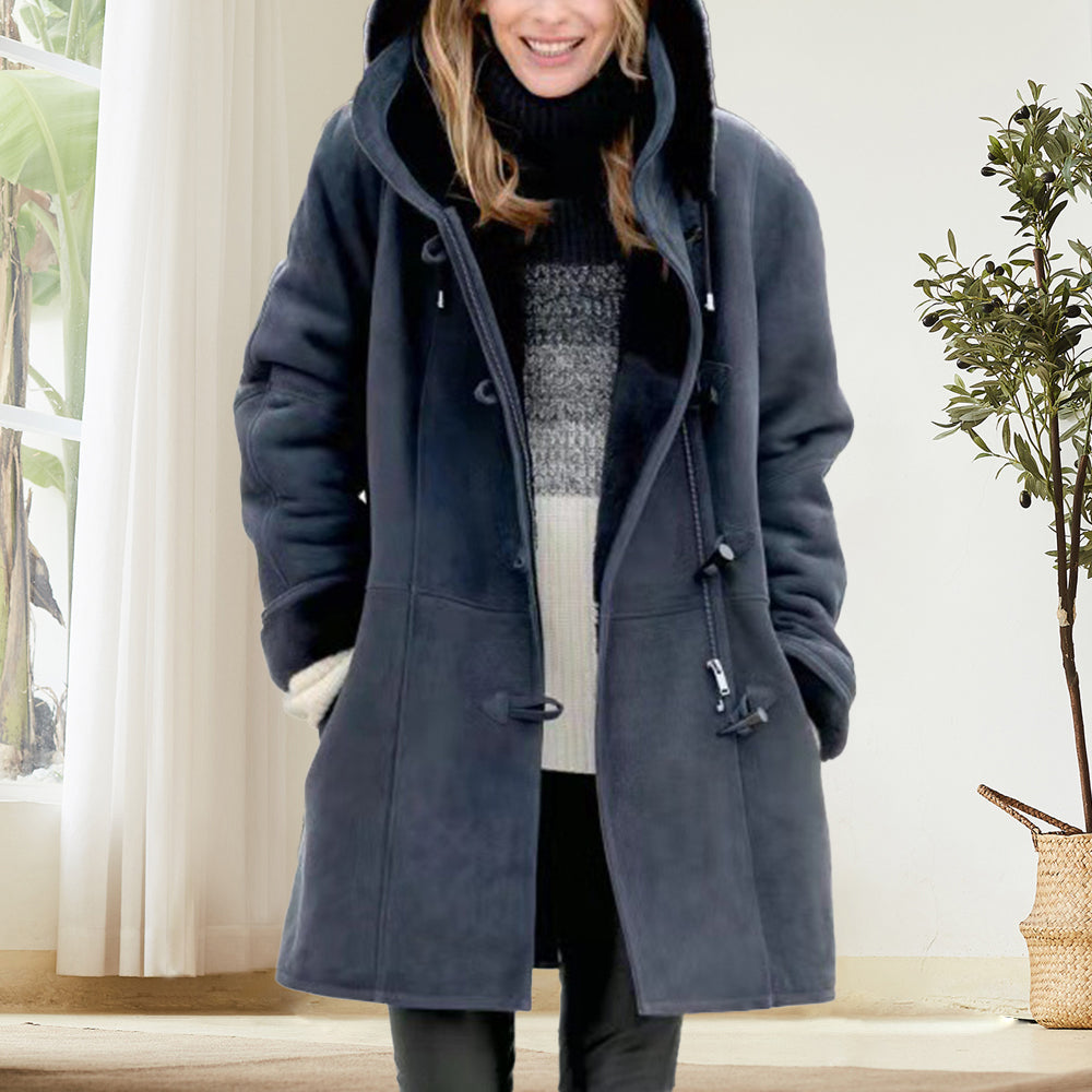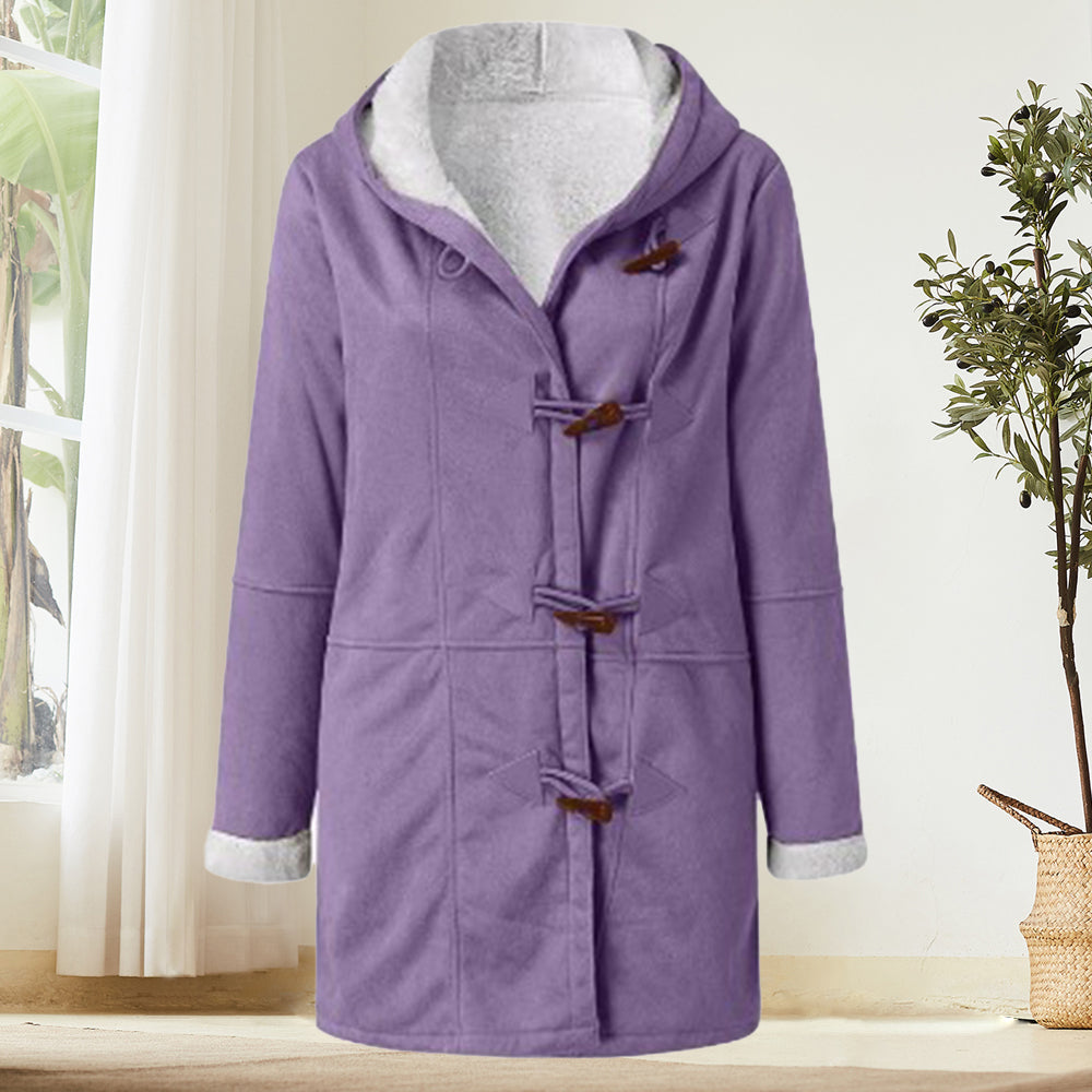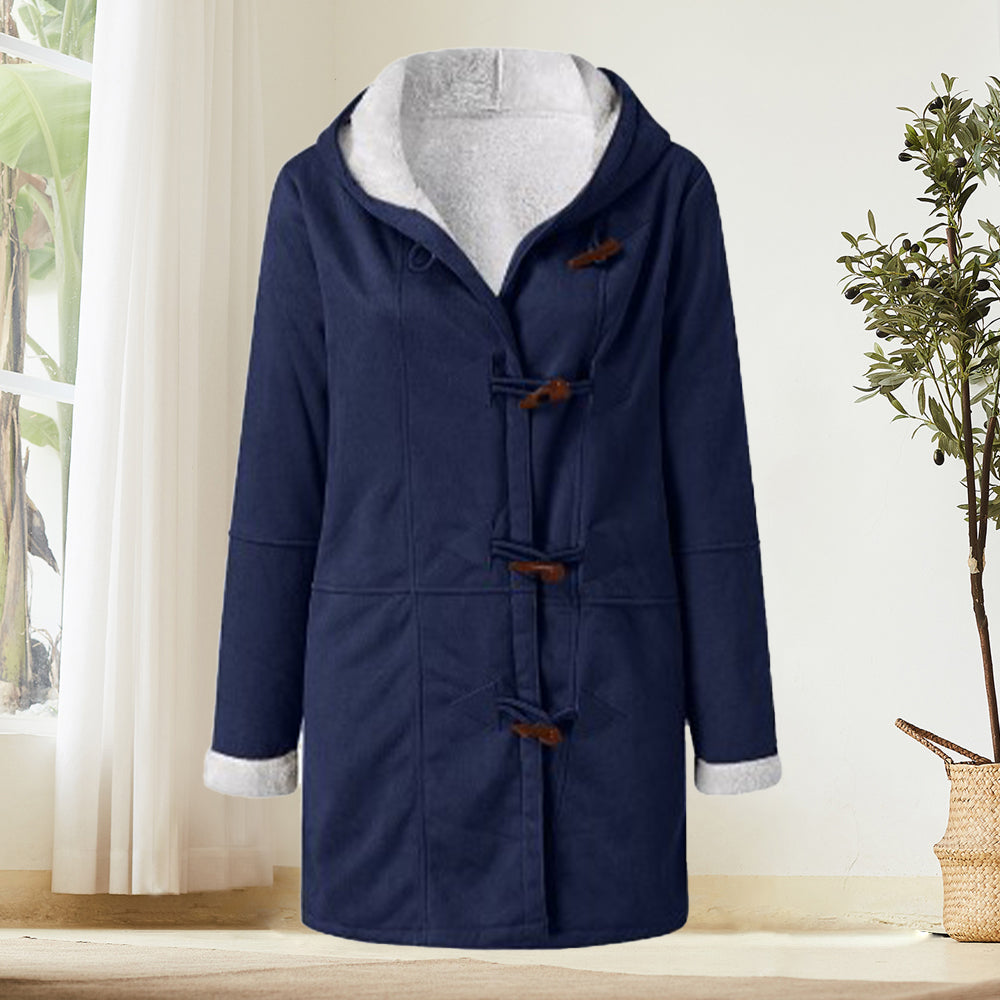 Beliebte Langärmelige Hornknopf-Damenjacke Für Herbst und Winter