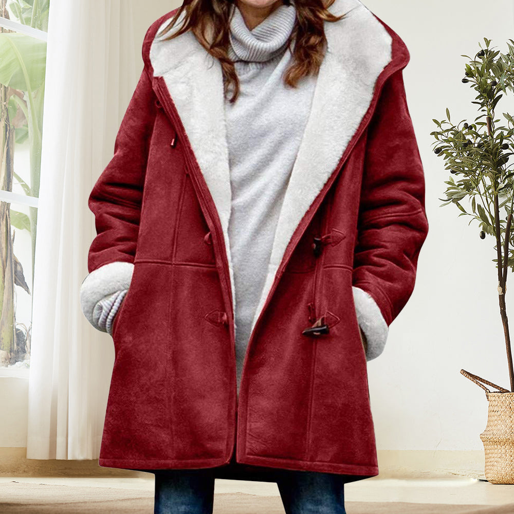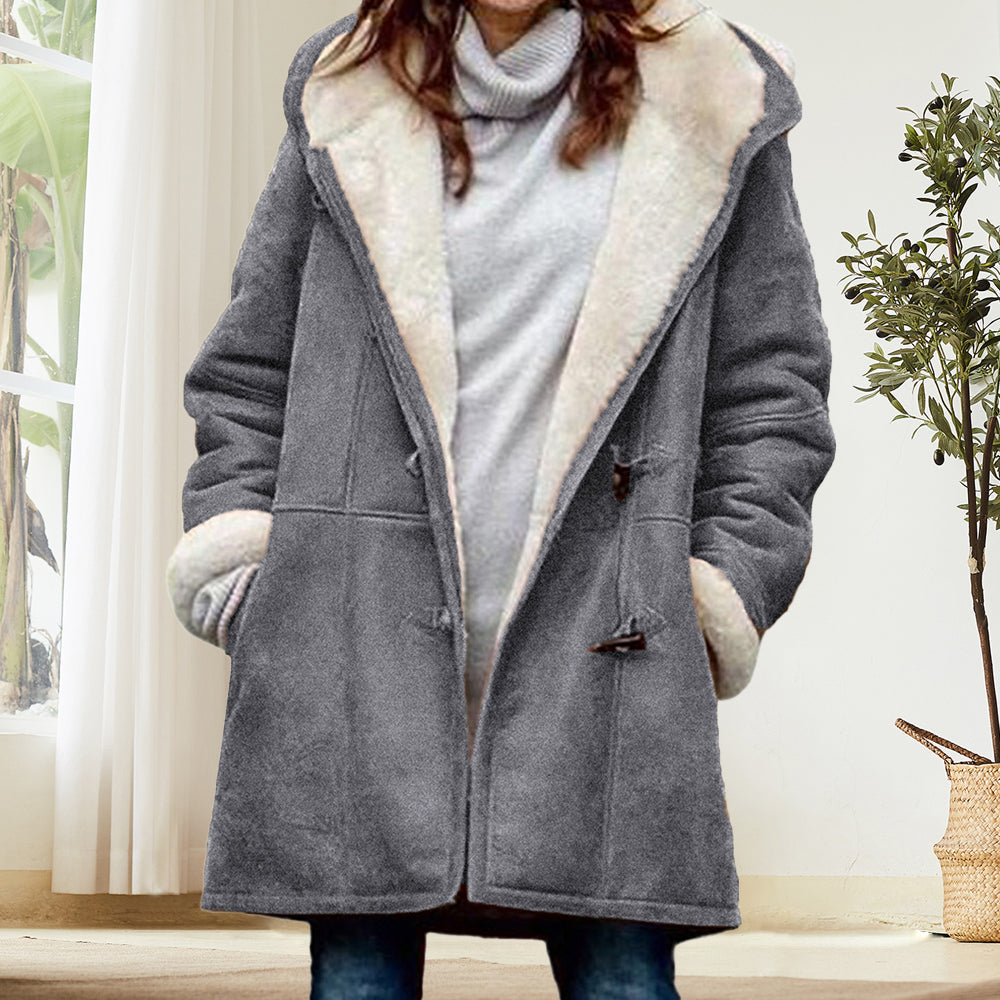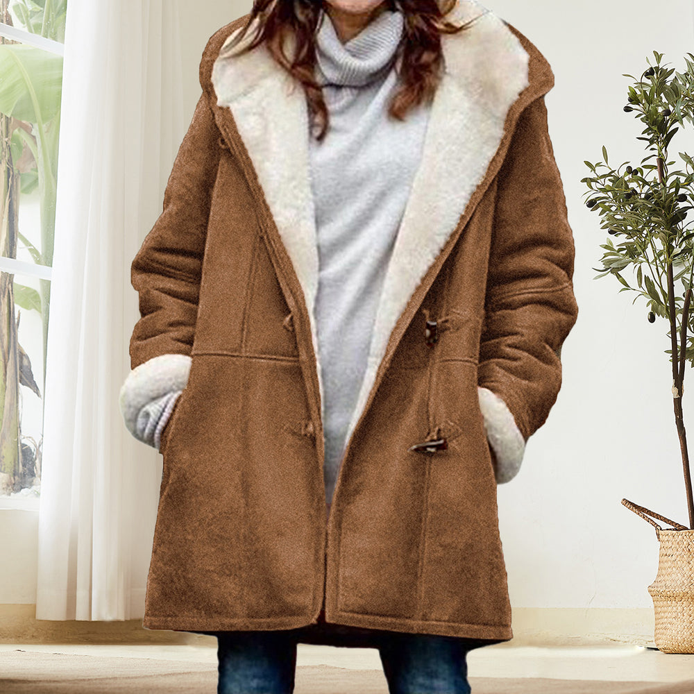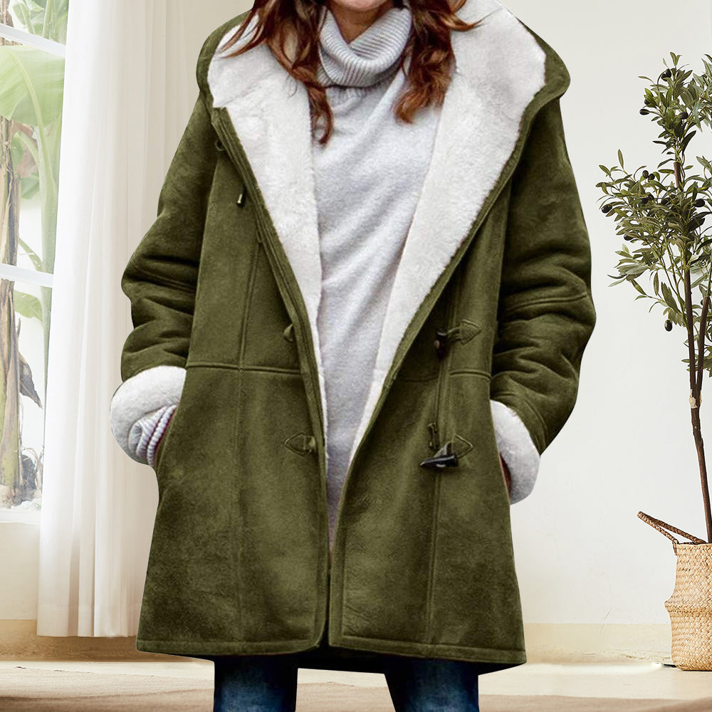 Beliebte Langärmelige Hornknopf-Damenjacke Für Herbst und Winter