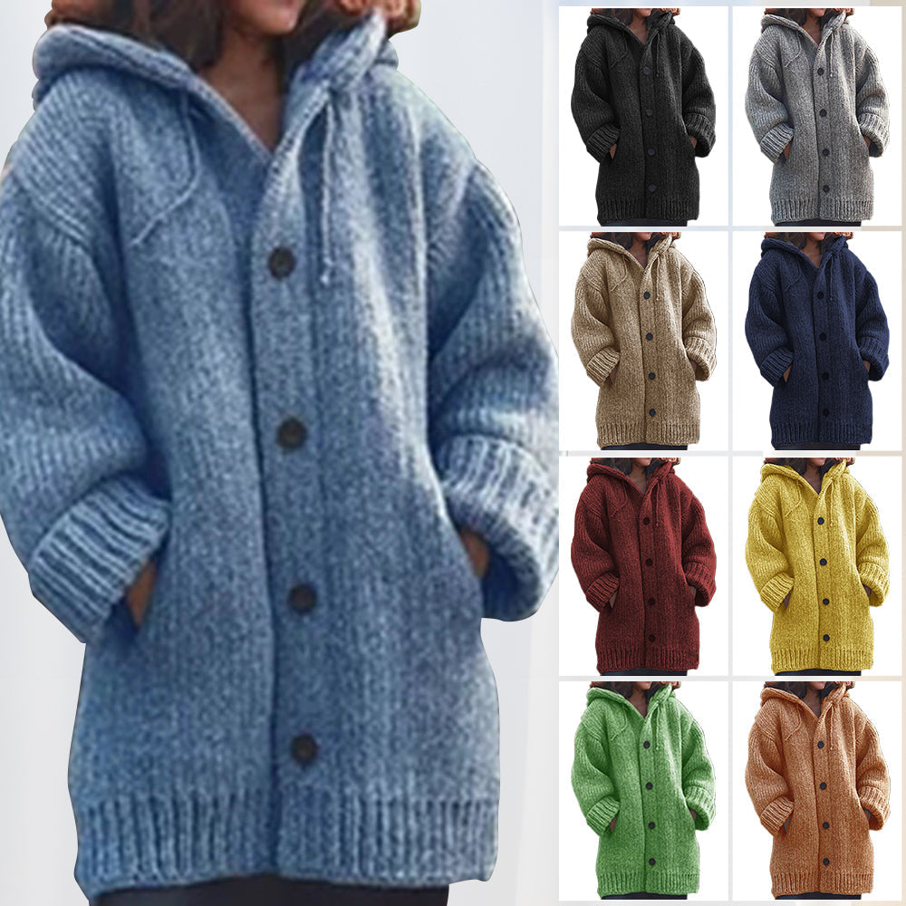 - 1 x Beliebte Mittellange Pullover-Cardigan-Kapuzenjacke Für Damen