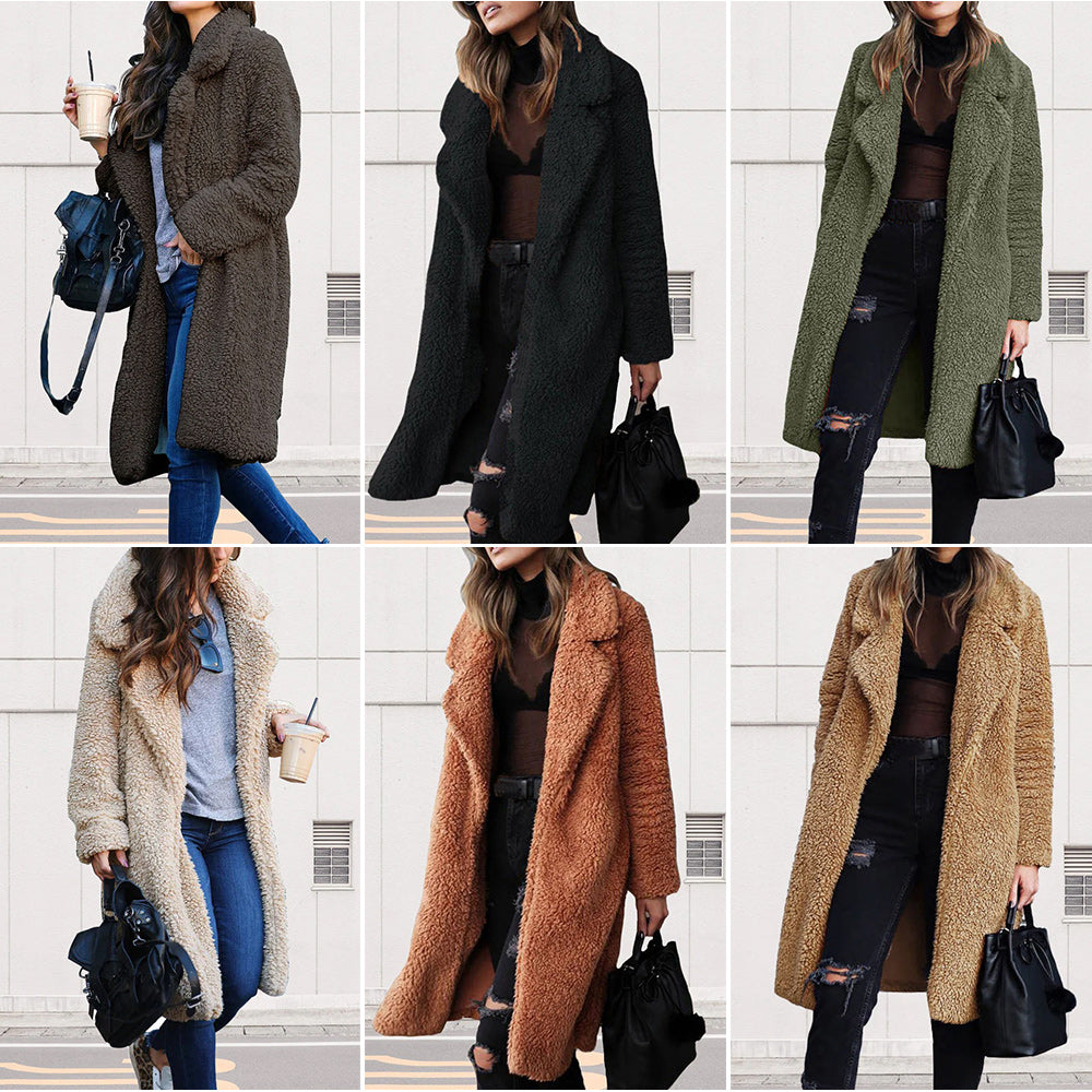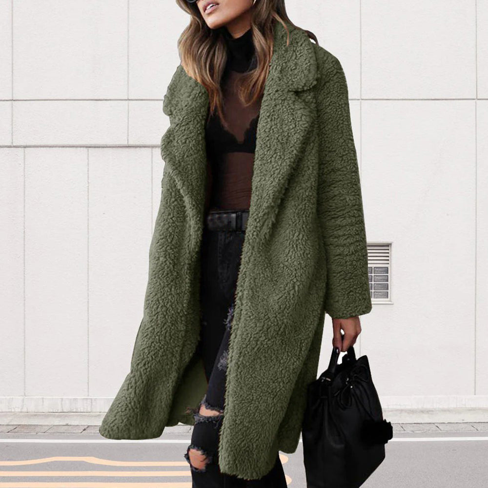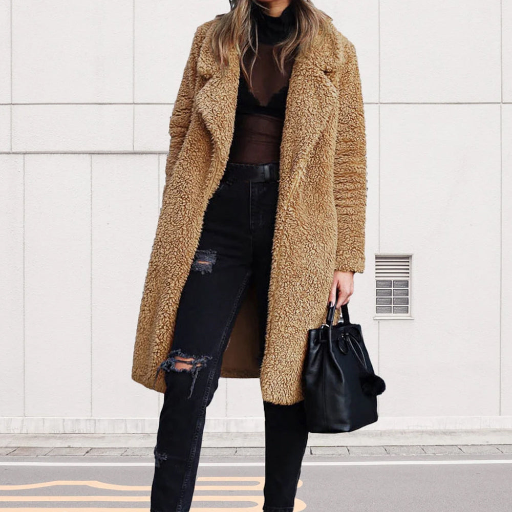 - 1 x Damen-Langarmmantel Aus Doppelseitigem Samt Mit Revers Und Langen ärmeln