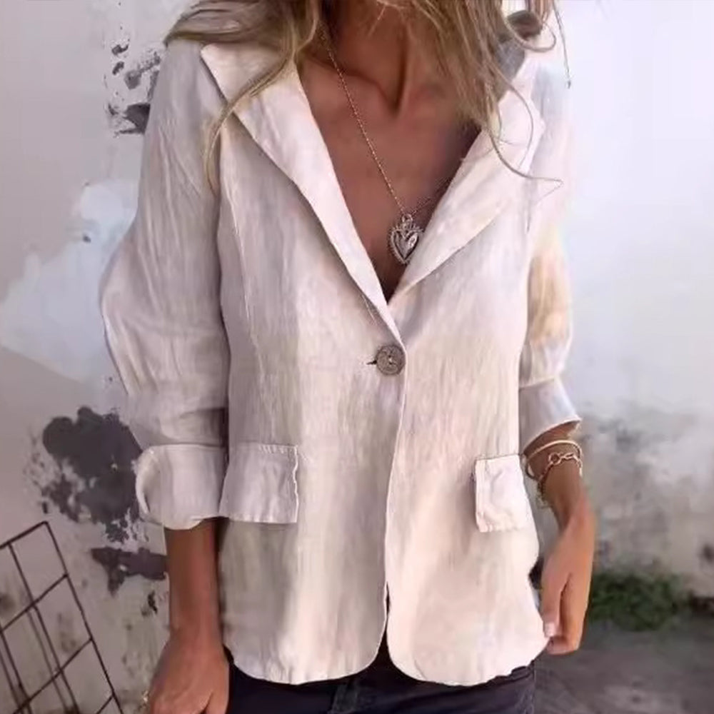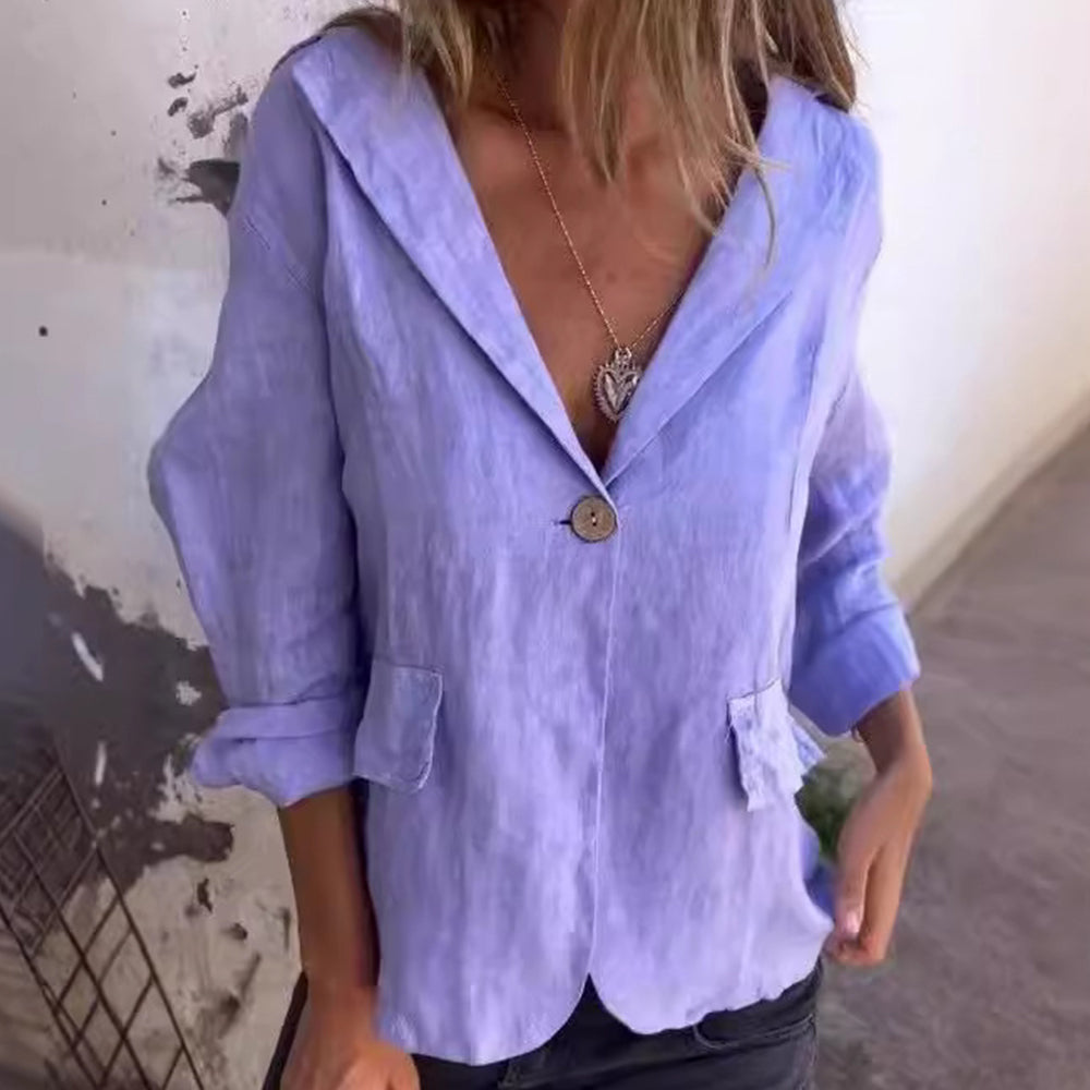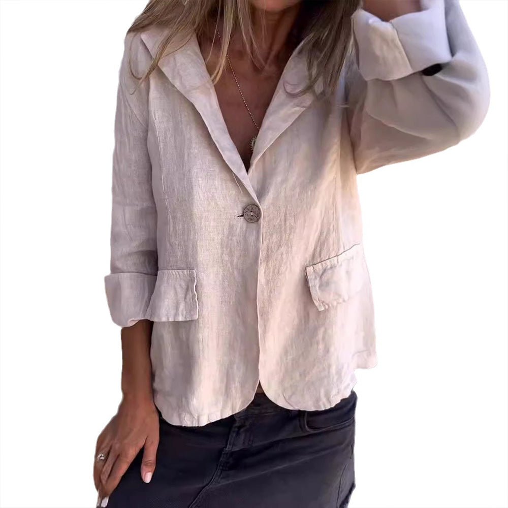 - 1 x Einfarbiger Damenanzug aus Baumwolle und Leinen mit Revers und Knopf