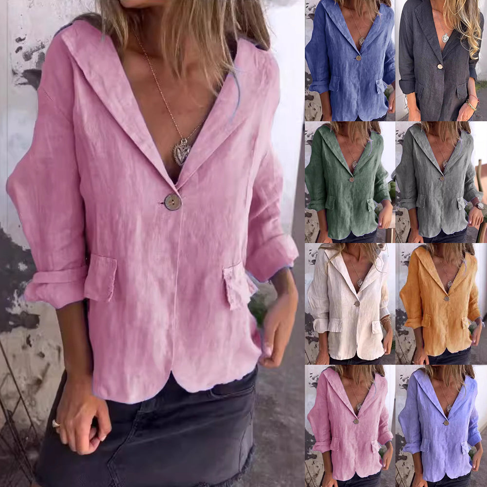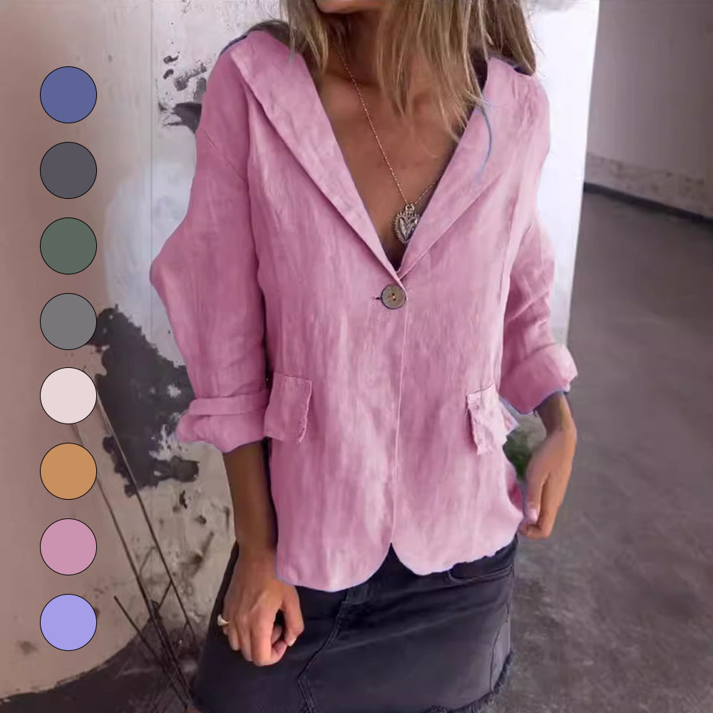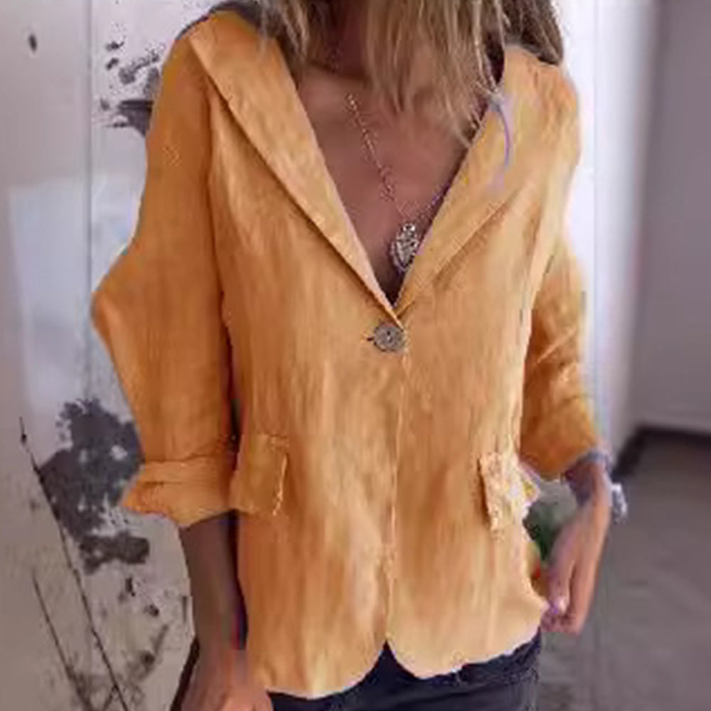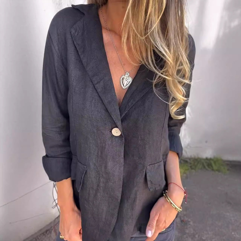 - 1 x Einfarbiger Damenanzug aus Baumwolle und Leinen mit Revers und Knopf
