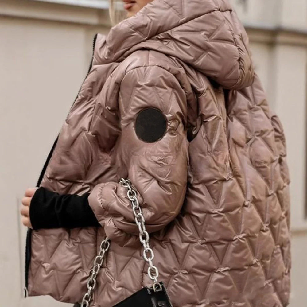 Herbst Und Winter Modische Lose Baumwoll-Damen Jacke Mit Rautenmuster