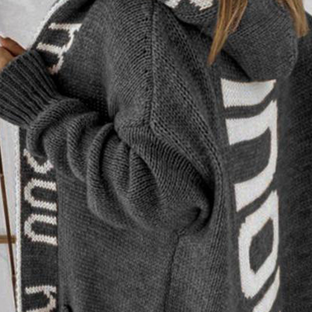 Herbst Und Winter Trendiger Damenpullover Mittellanger, Lockerer, Personalisierter Buchstaben-Kapuzen-Cardigan