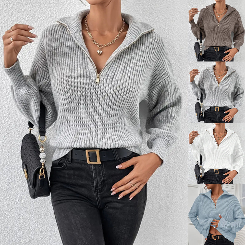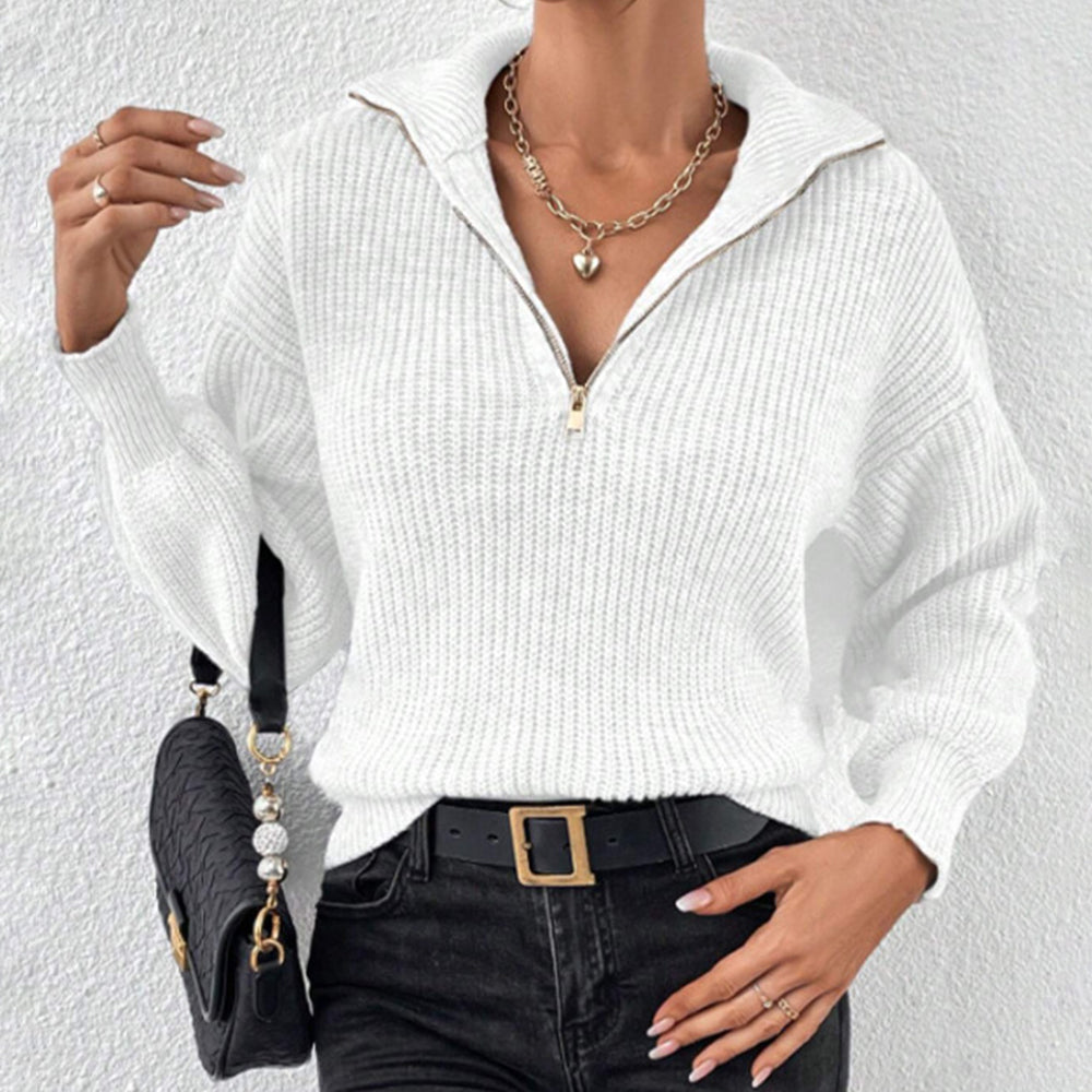 • 1 x Frenchy Langarm-Sweatshirt Mit Halbem Reißverschluss, Quer Schulterabfall Und Kornmuster