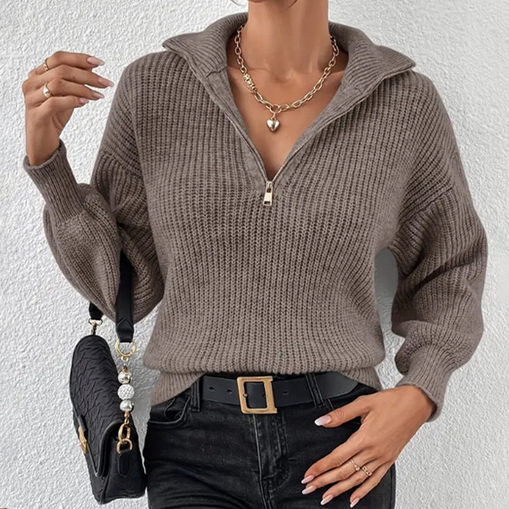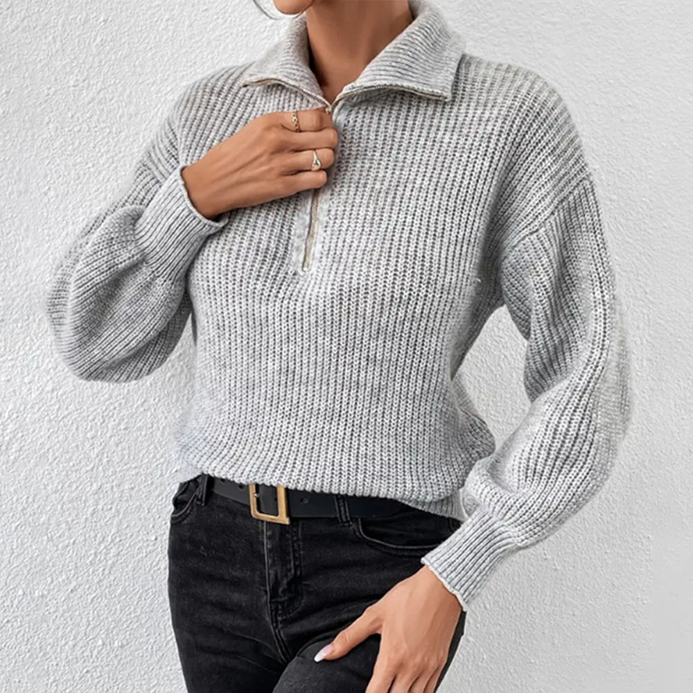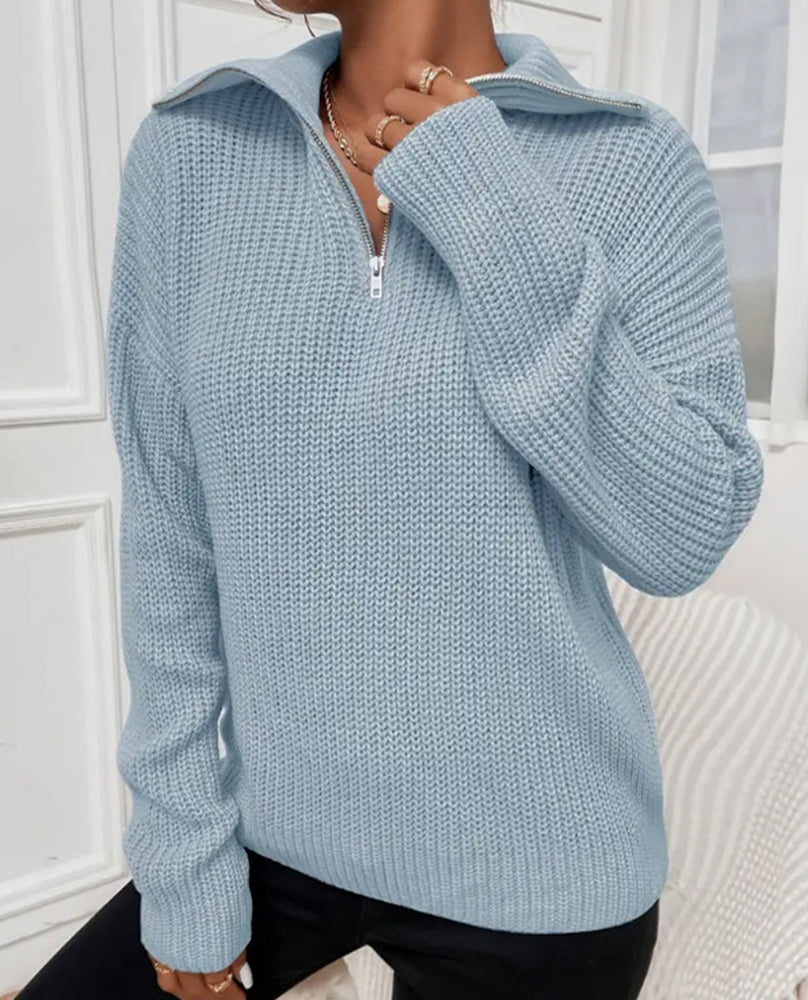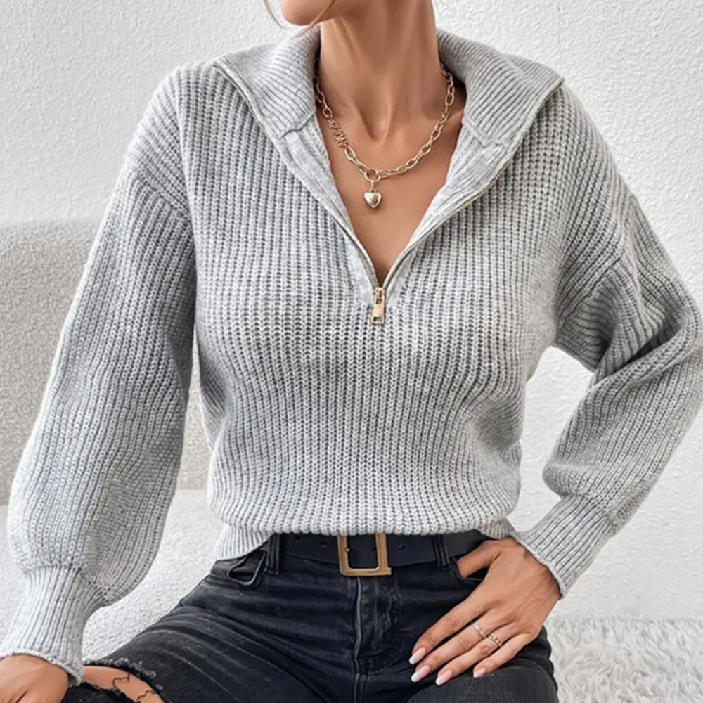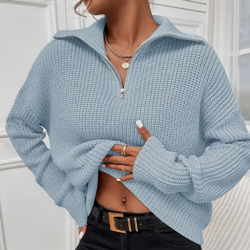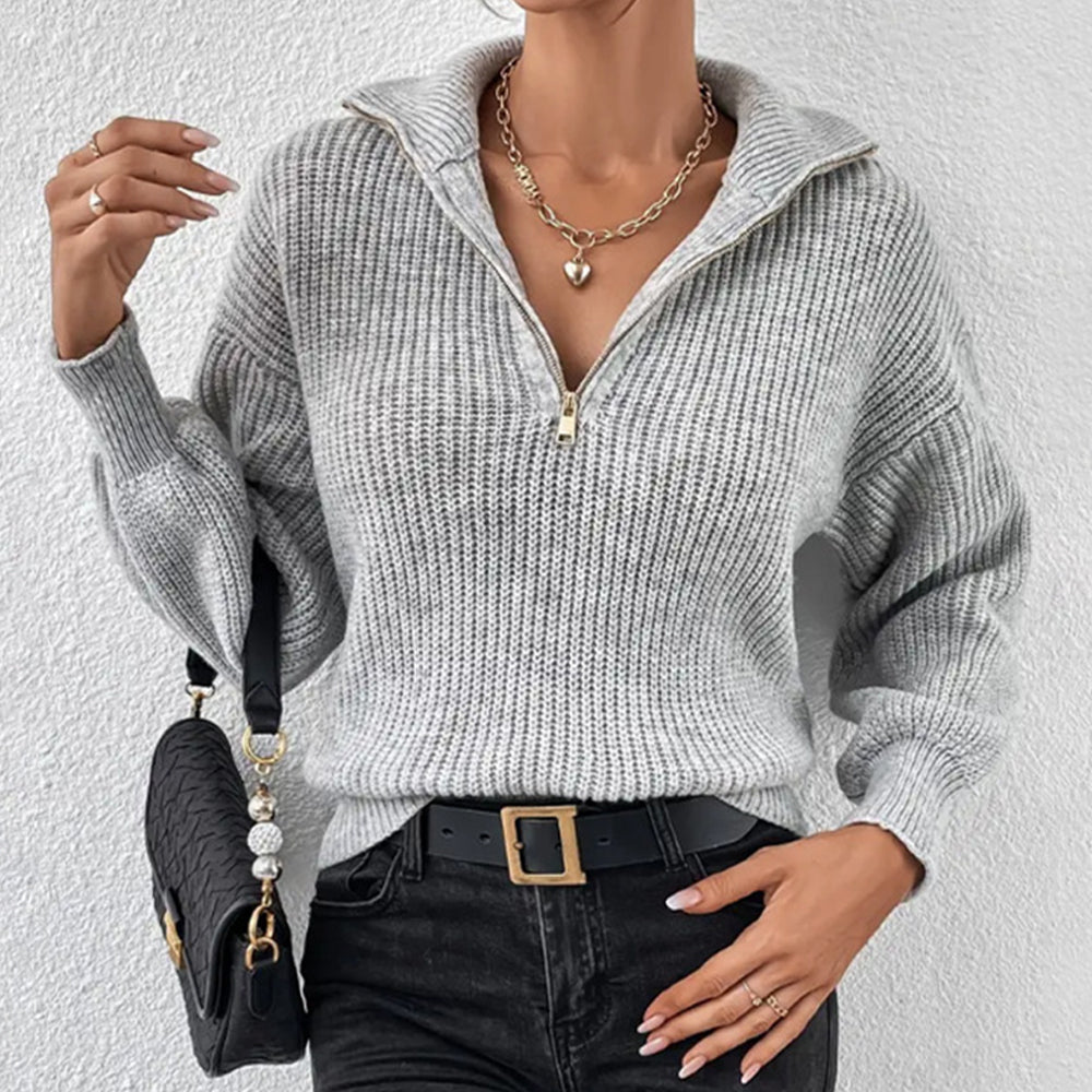 Frenchy Langarm-Sweatshirt Mit Halbem Reißverschluss, Quer Schulterabfall Und Kornmuster