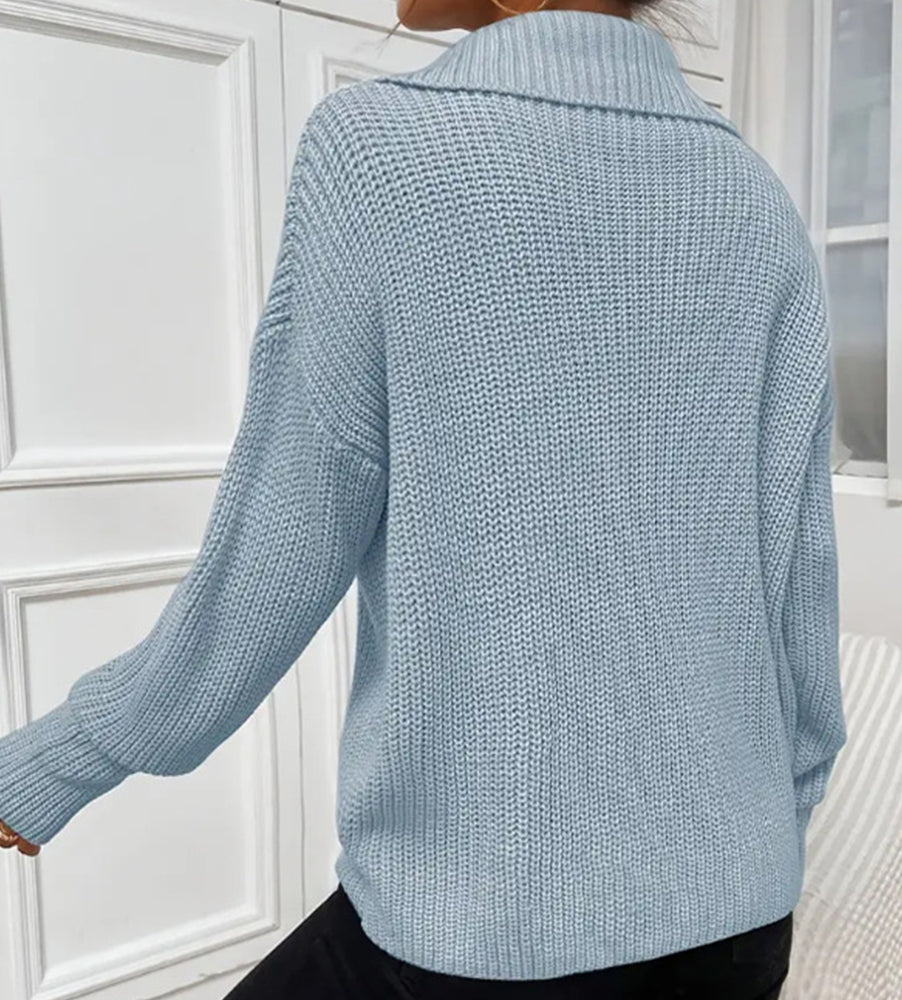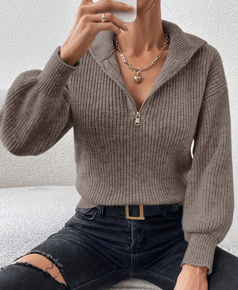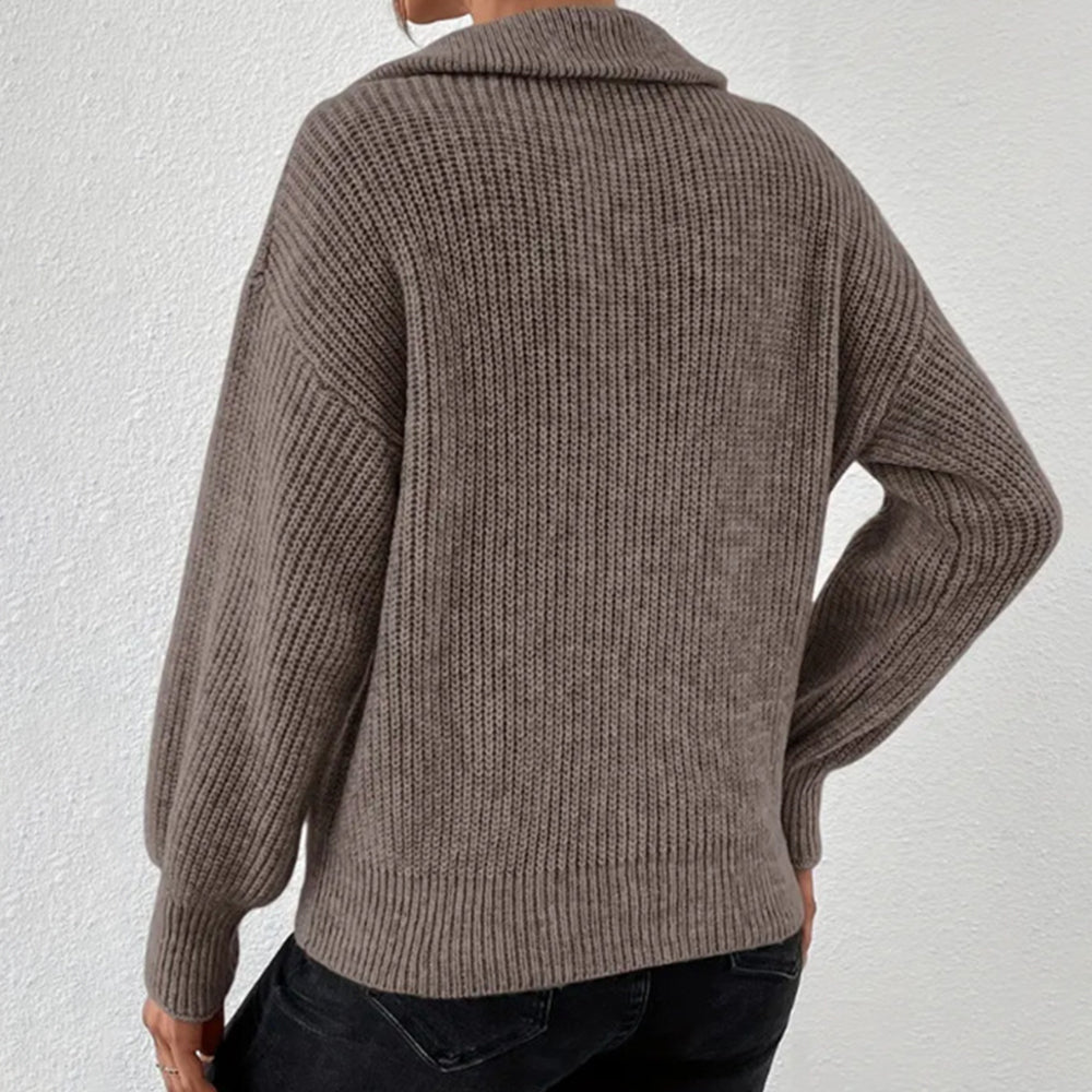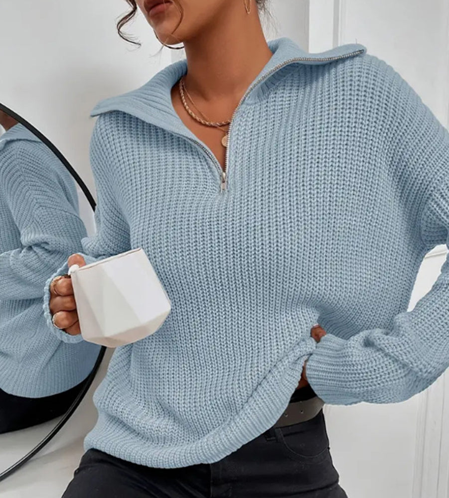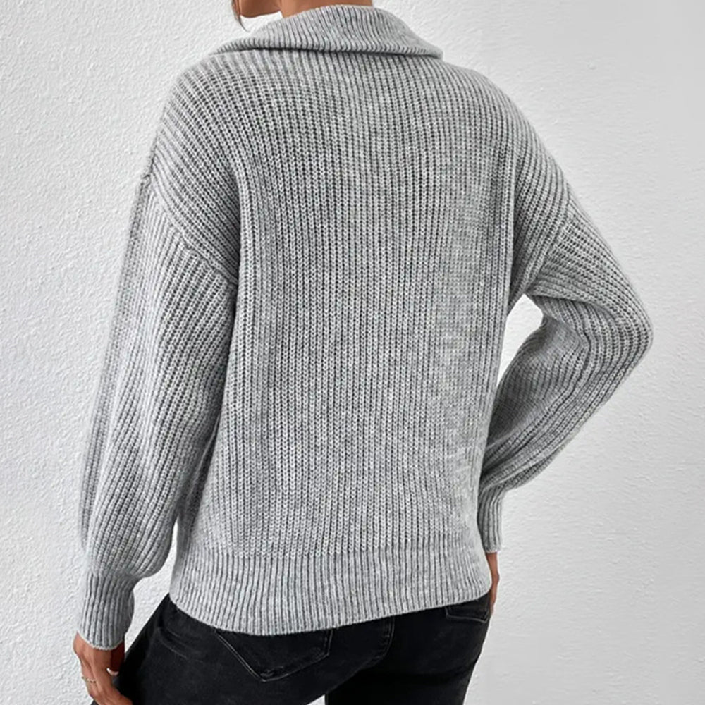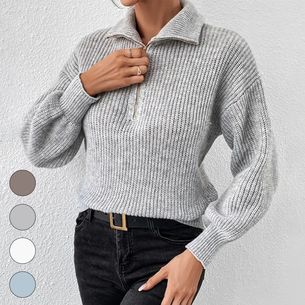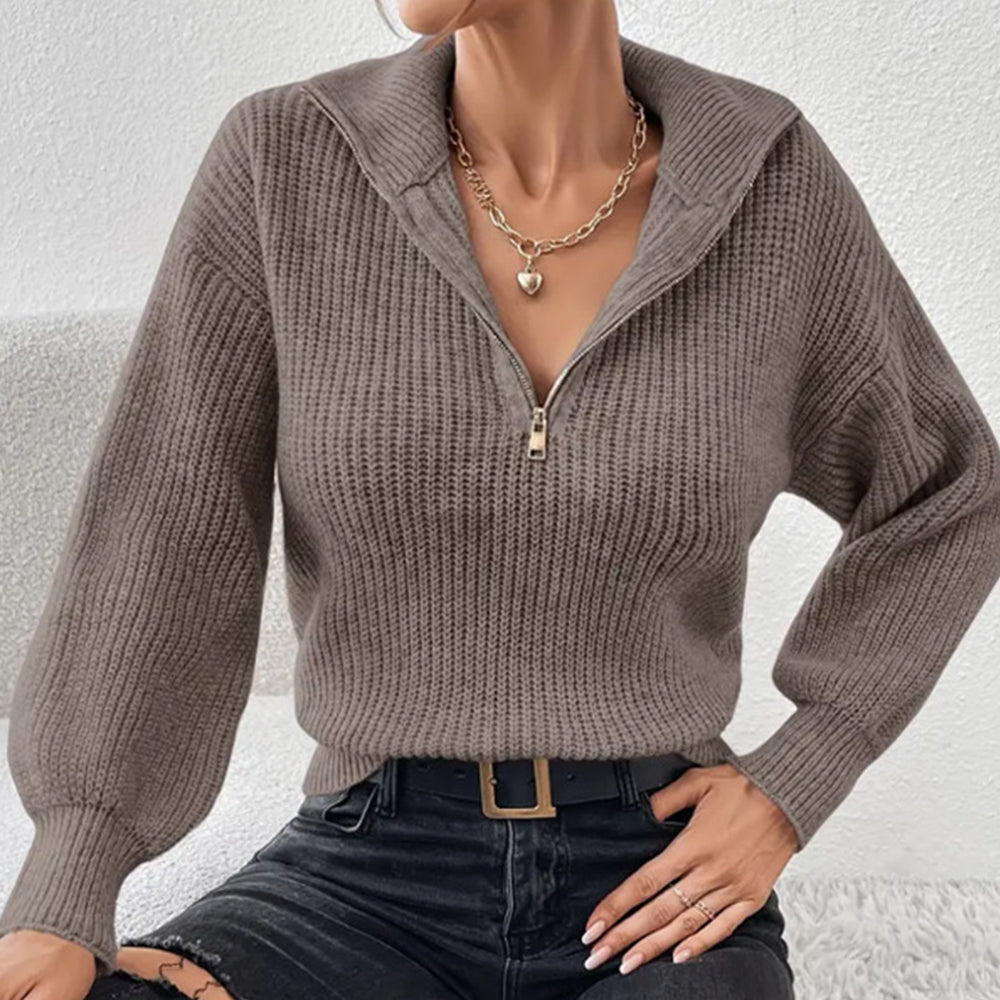 Frenchy Langarm-Sweatshirt Mit Halbem Reißverschluss, Quer Schulterabfall Und Kornmuster