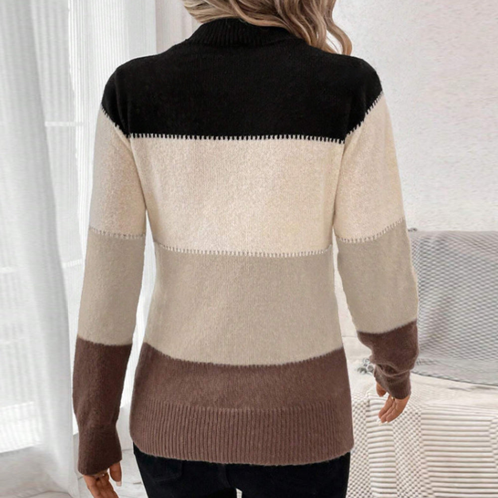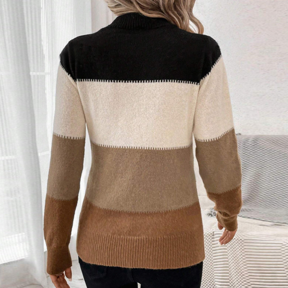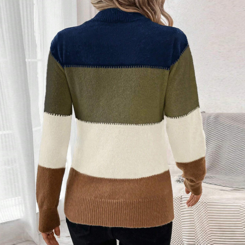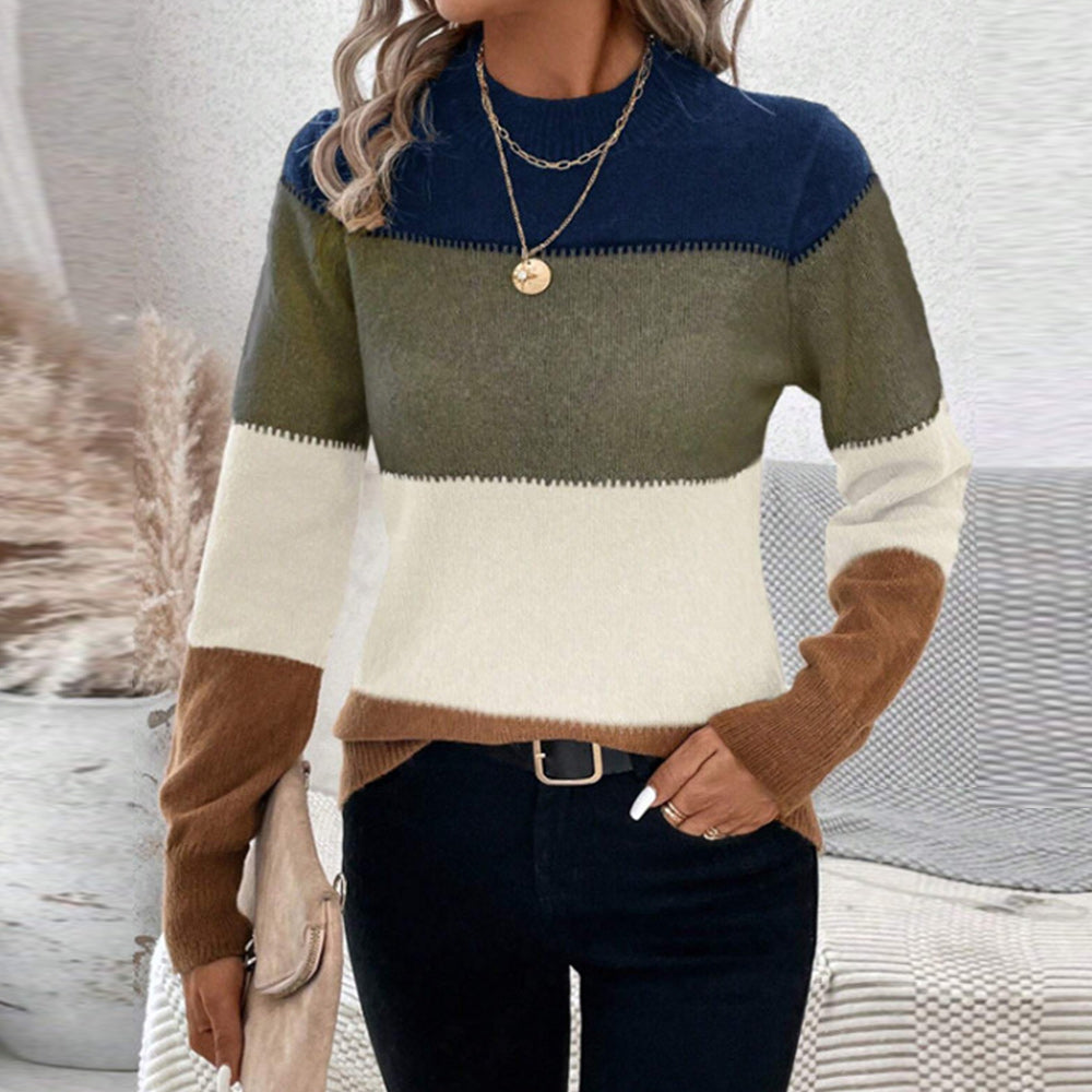 • 1 x Gestreifter, Kontrastierender Rundhalspullover Für Damen Im Herbst Und Winter