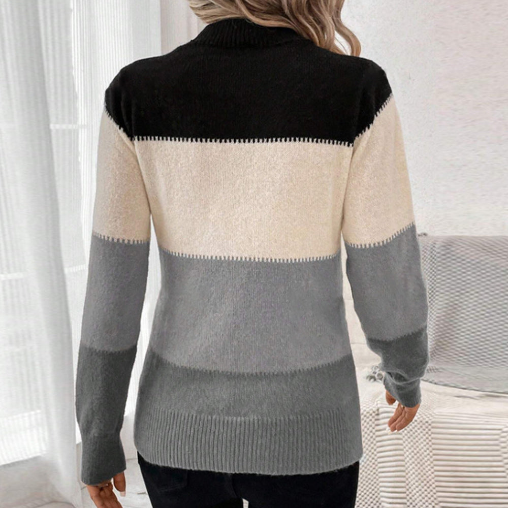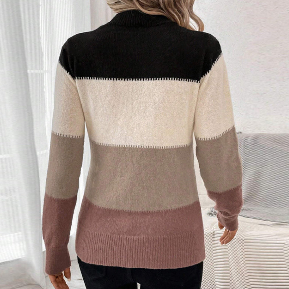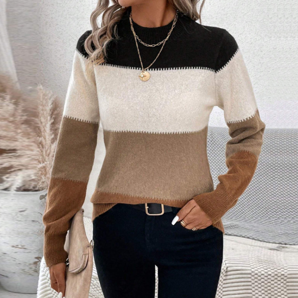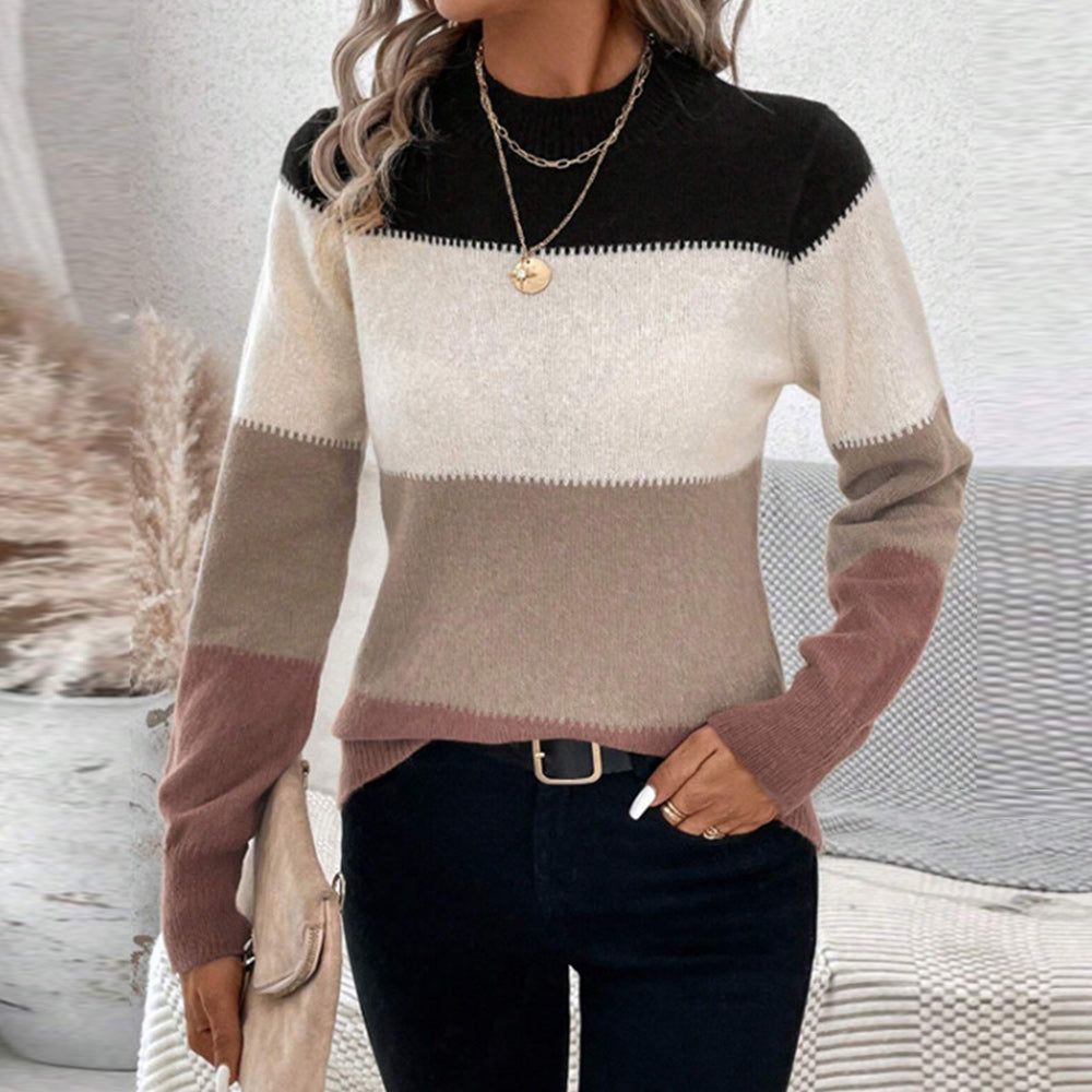 Gestreifter, Kontrastierender Rundhalspullover Für Damen Im Herbst Und Winter