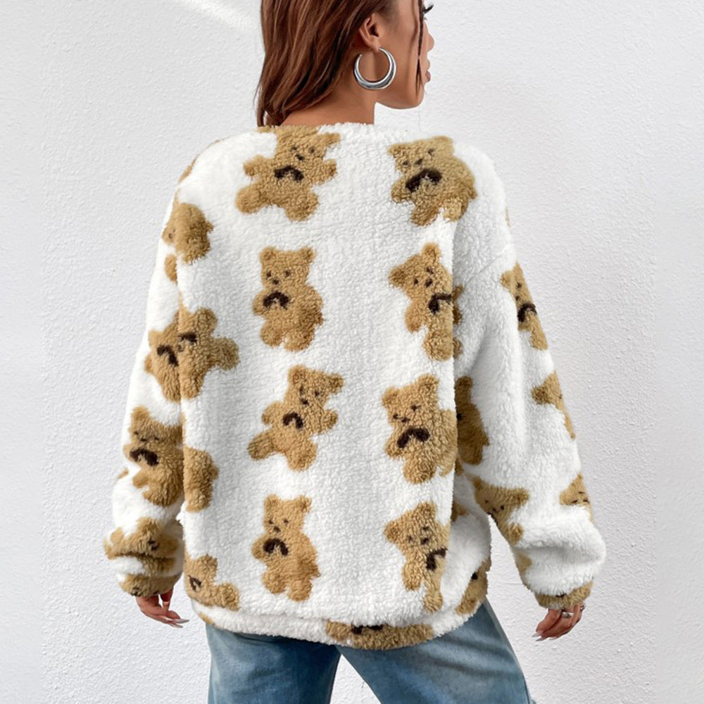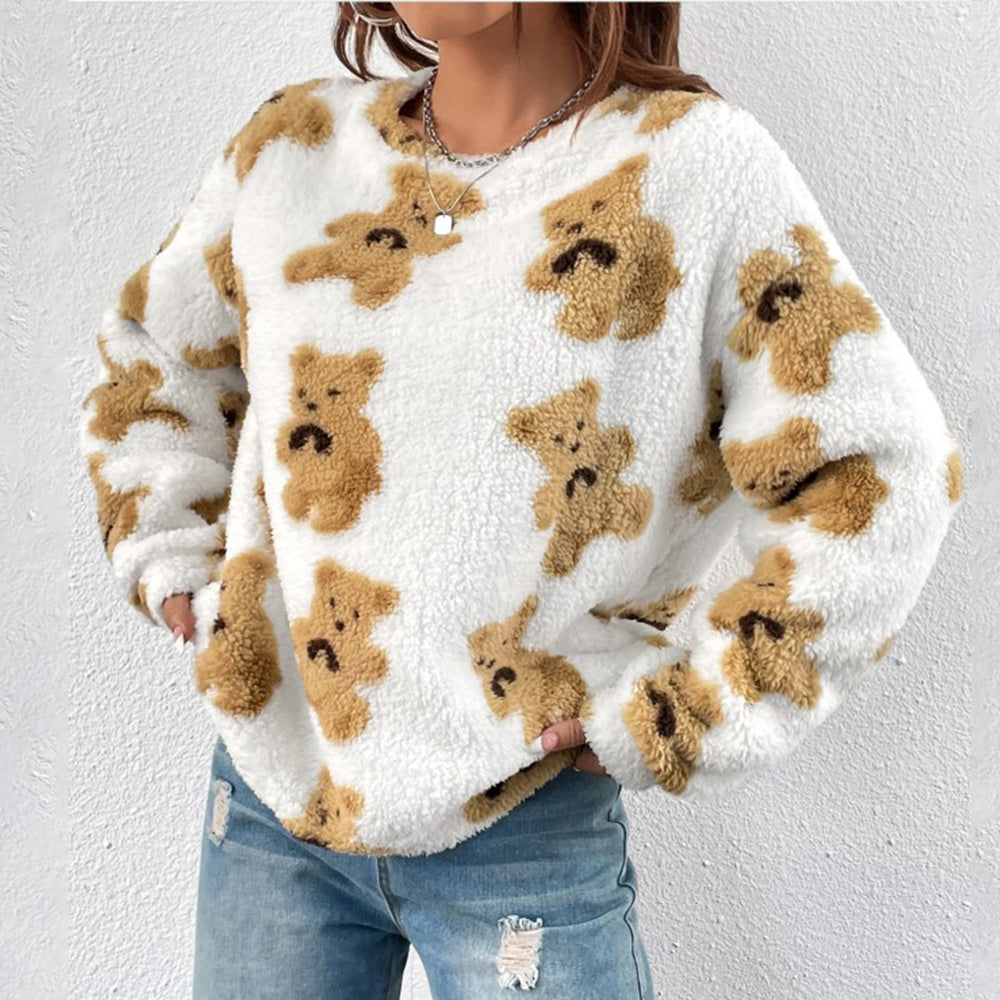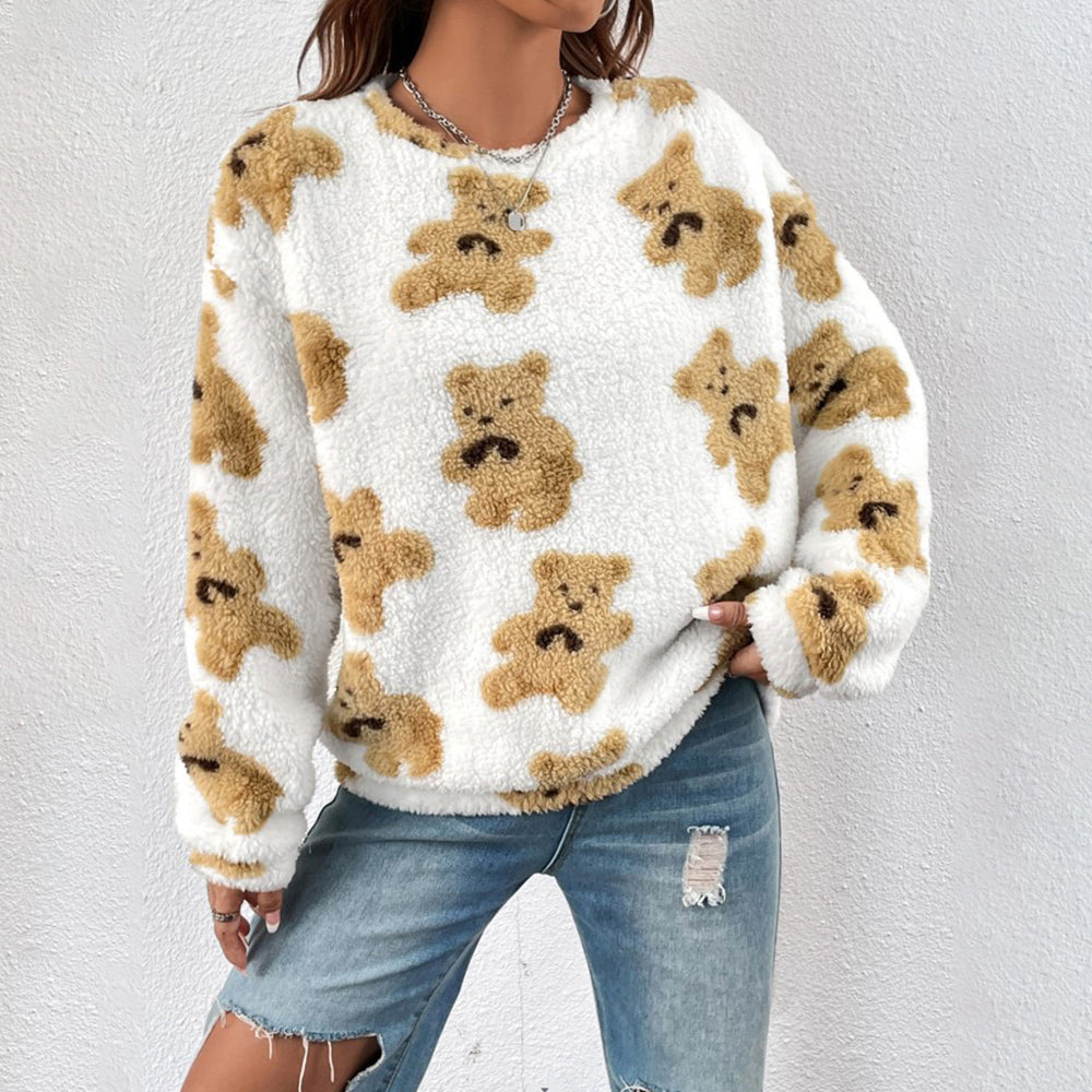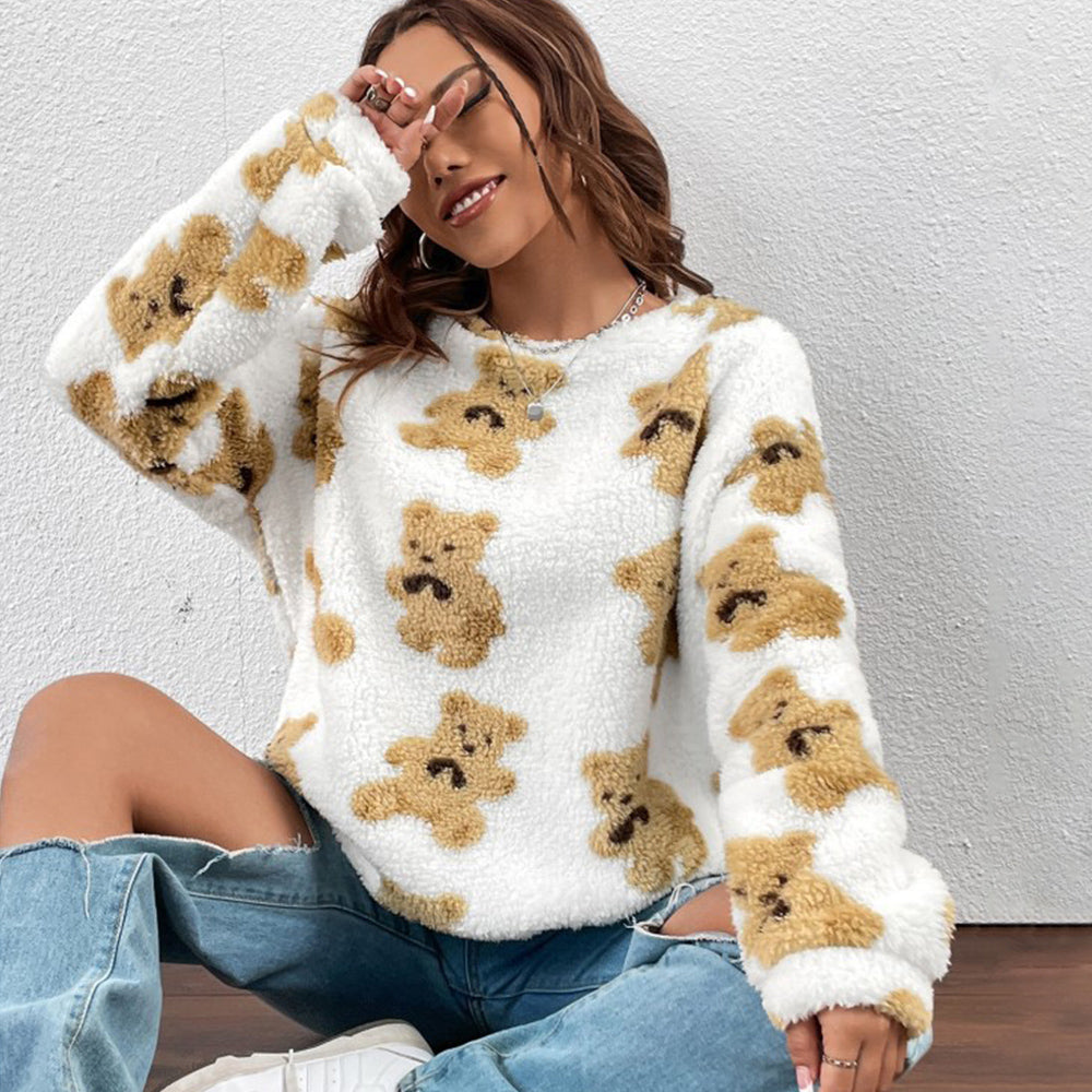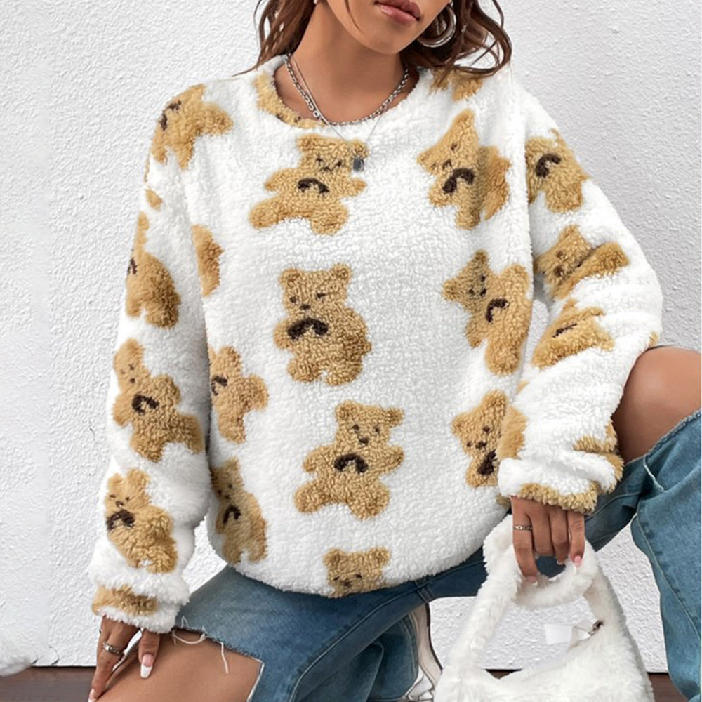 Herbst Und Winter Bärendruck Lockeres Langarm-Top Damen-Sweatshirt