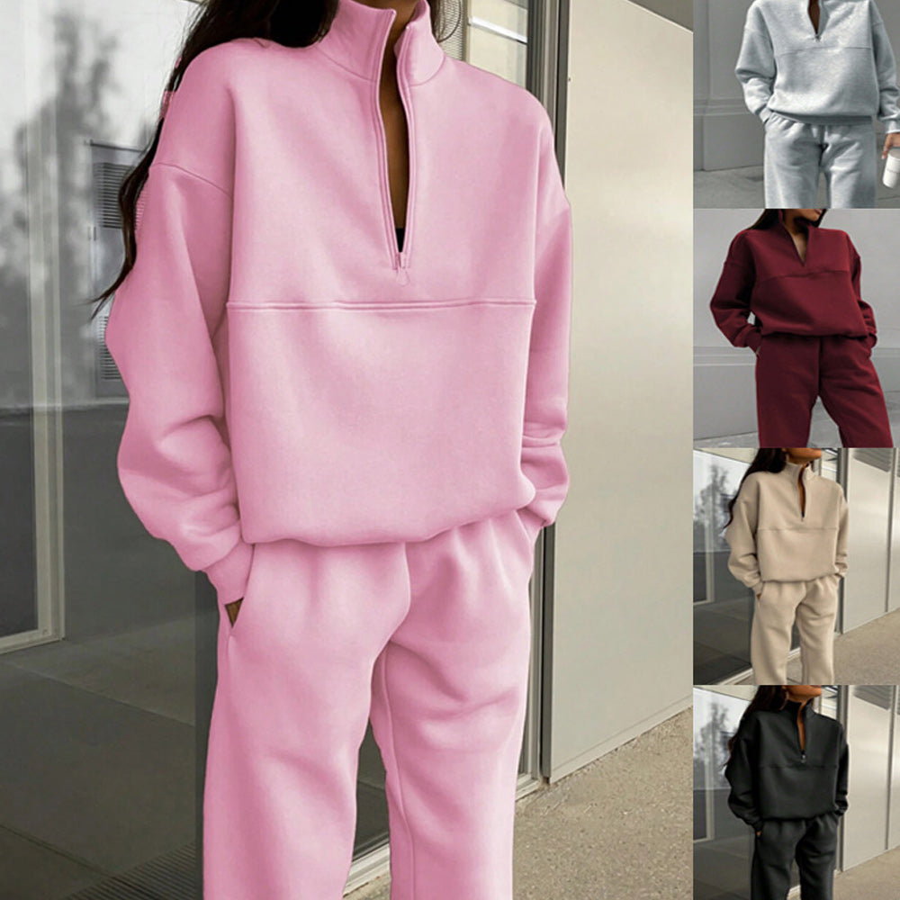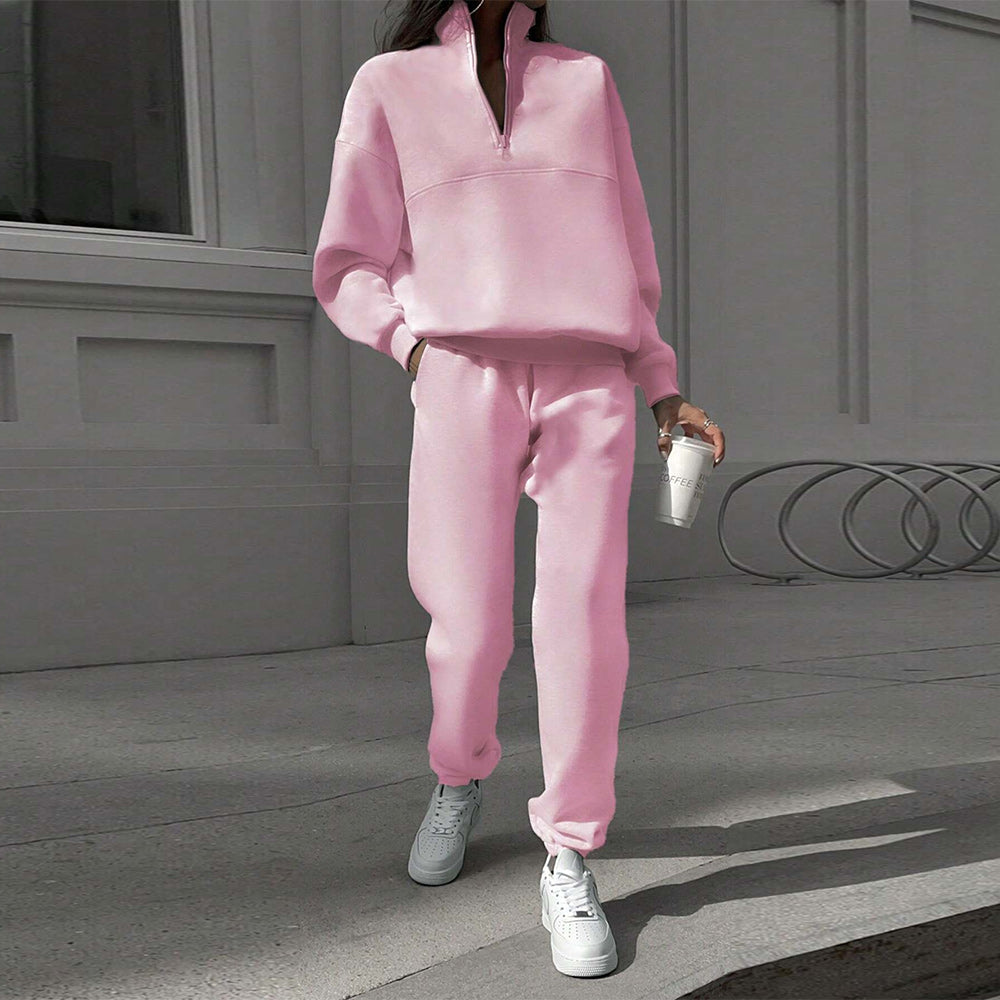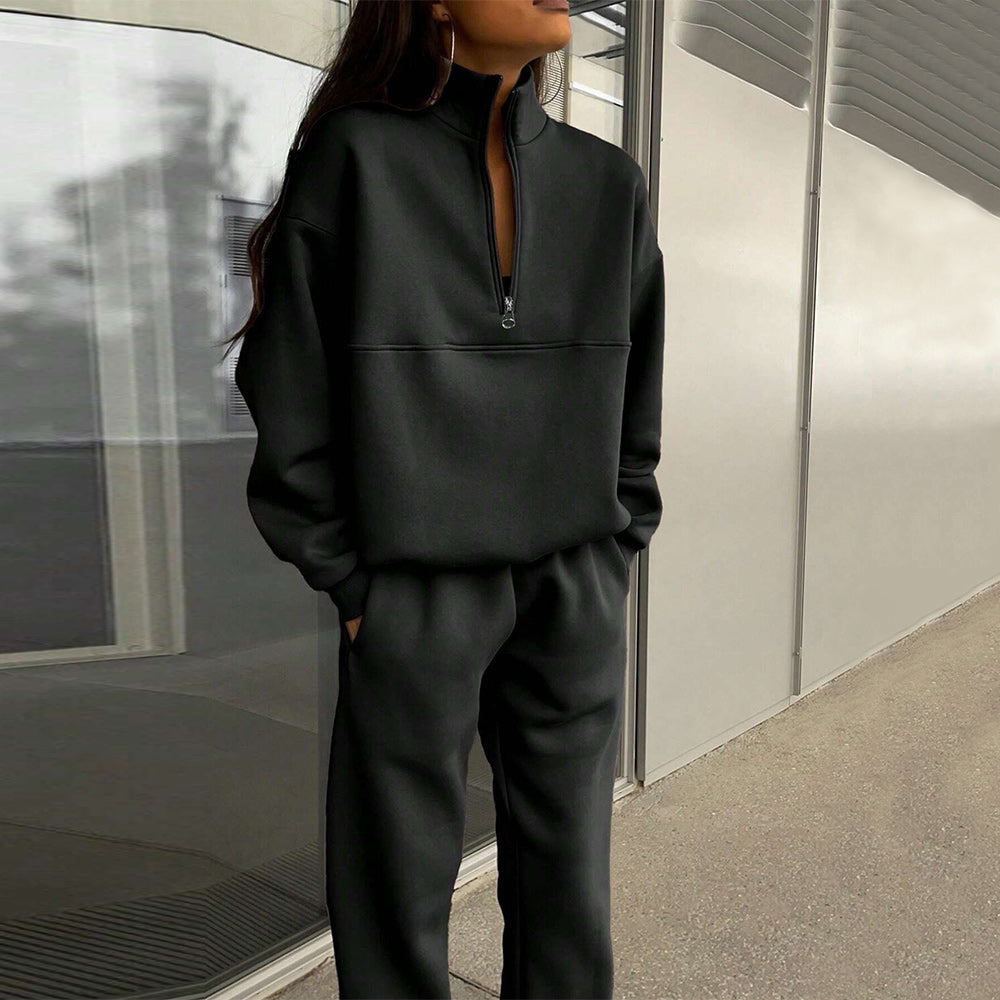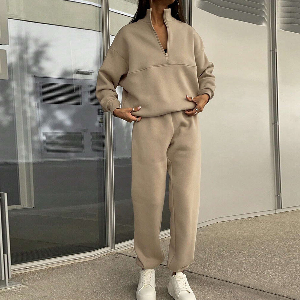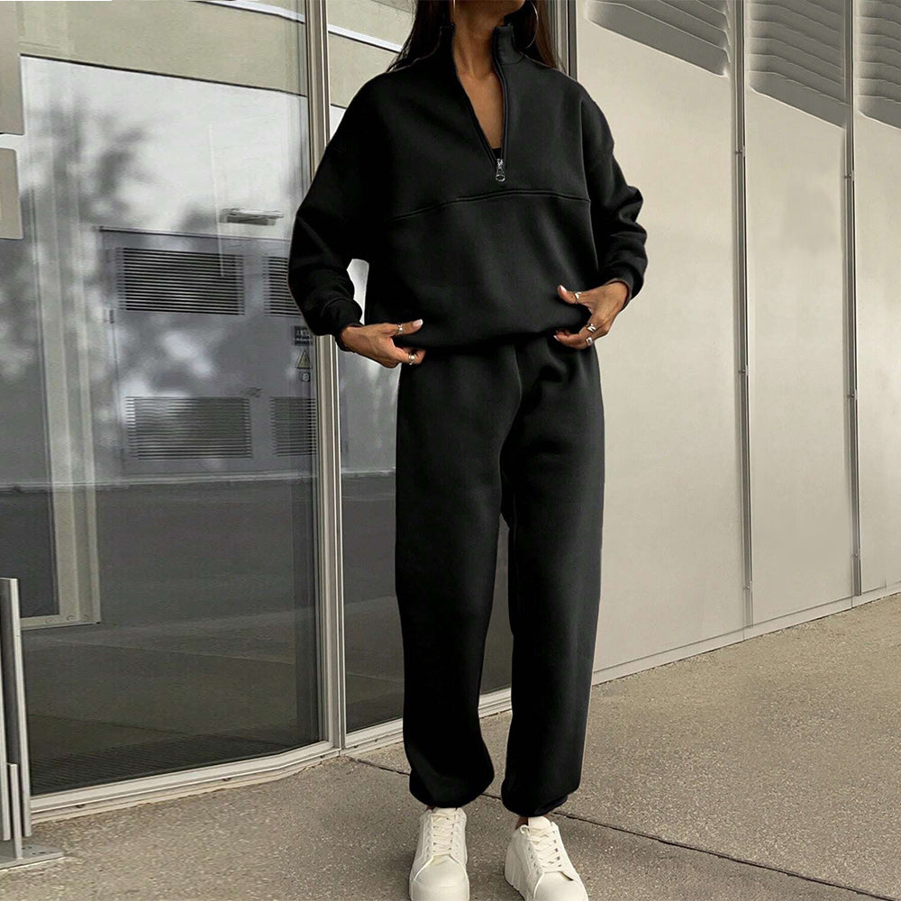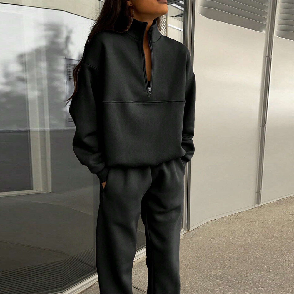 • 1 x Herbst Und Winter Frauen Neue Mode Zipper Revers Einfarbig Casual Zwei-Stück Set
