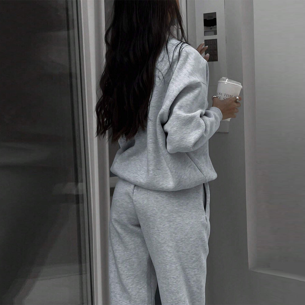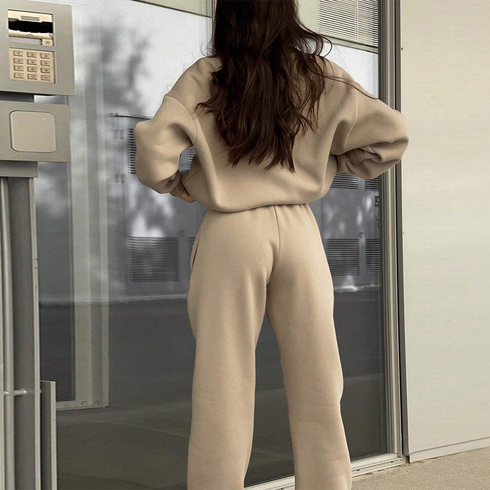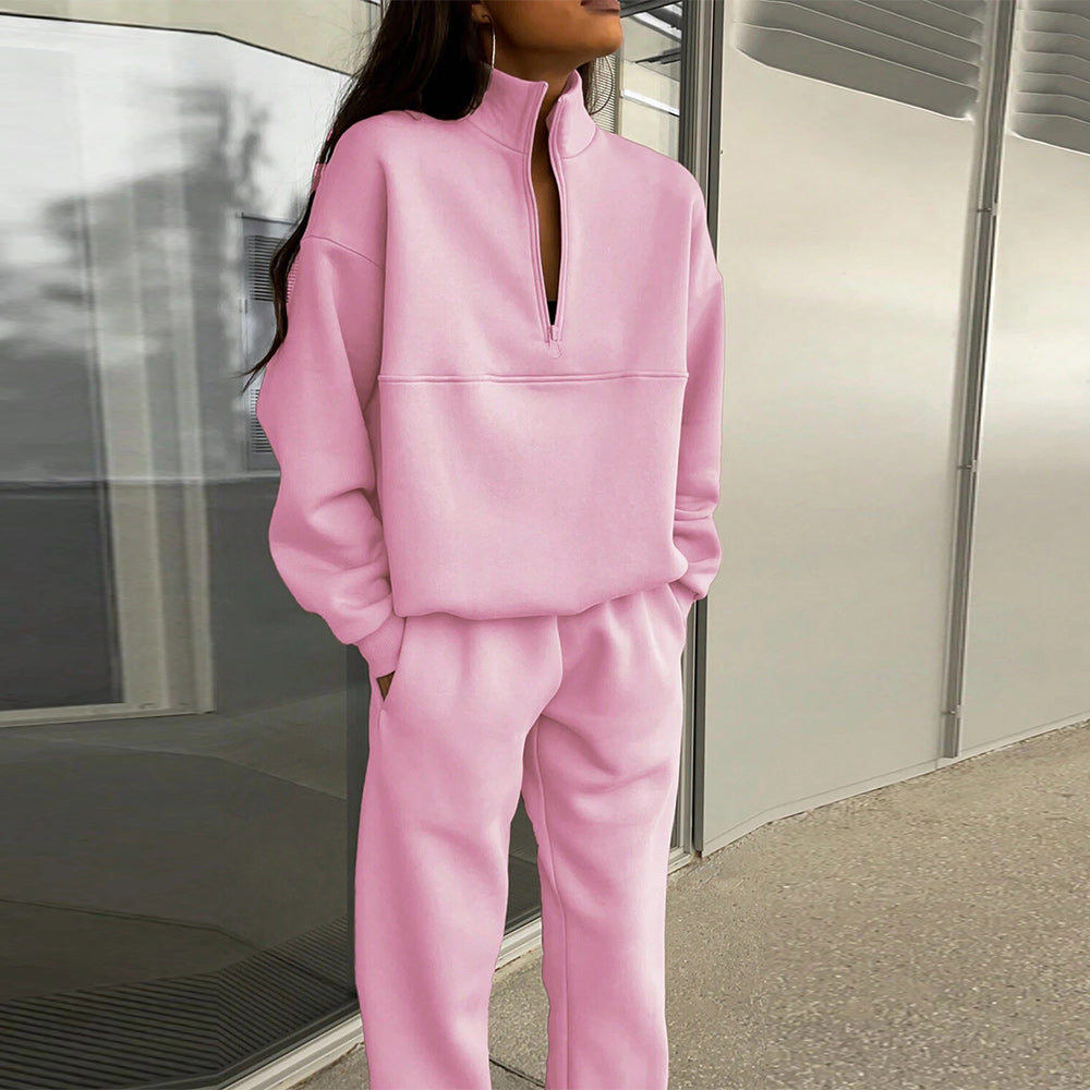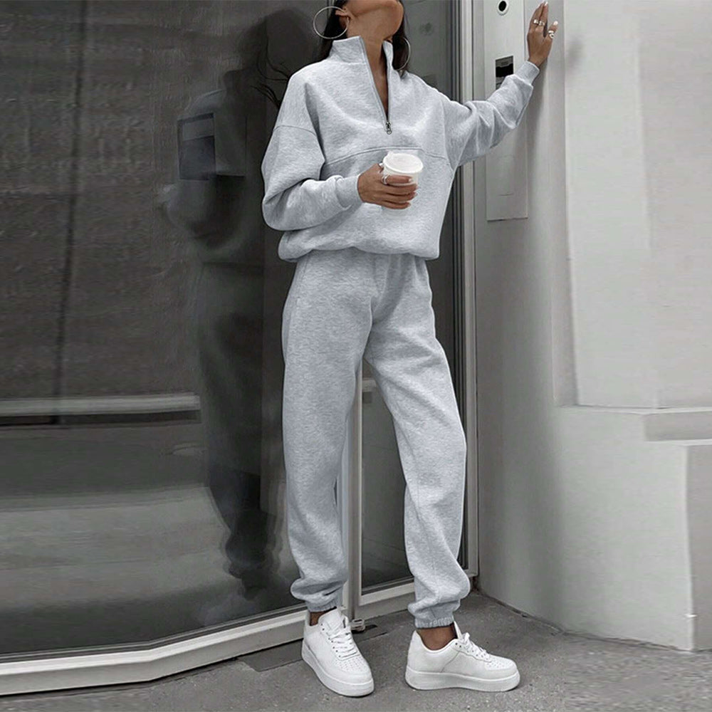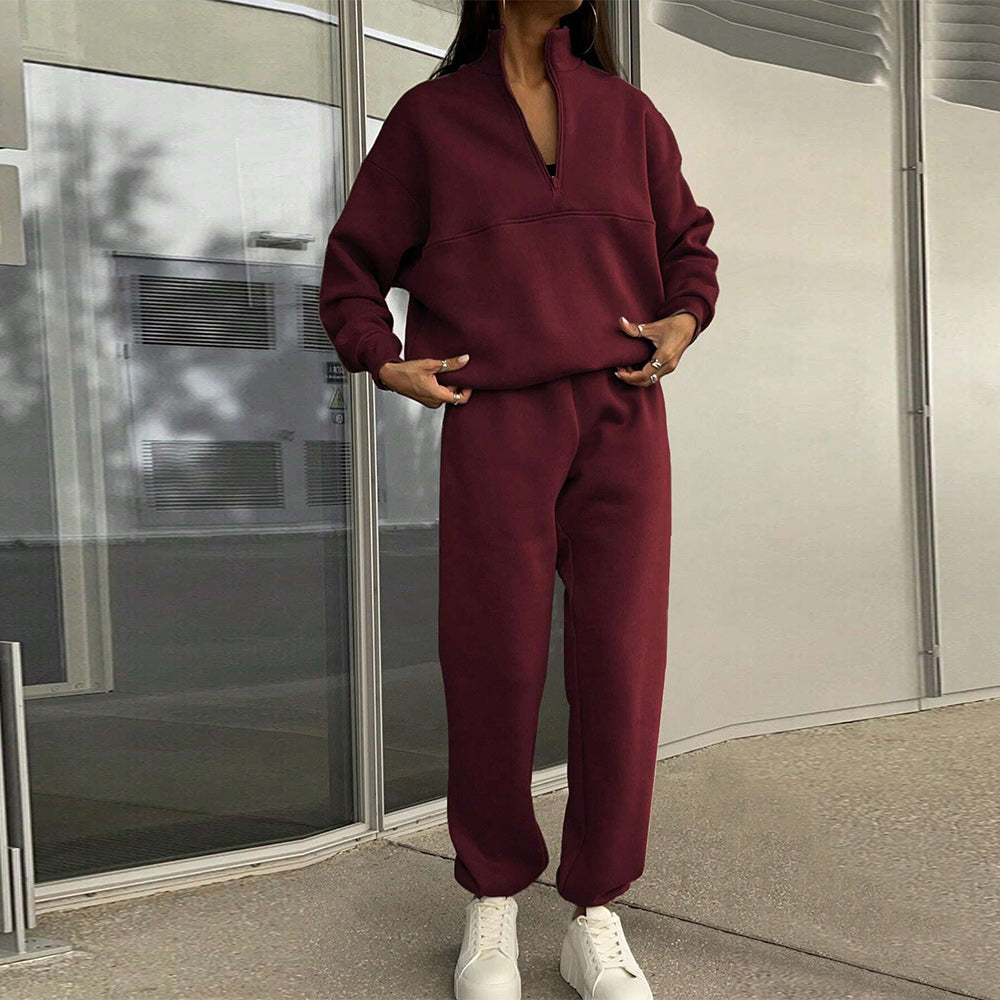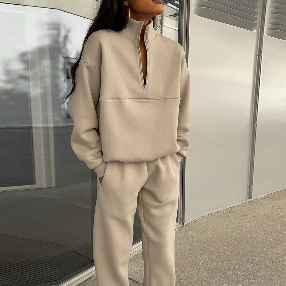 • 1 x Herbst Und Winter Frauen Neue Mode Zipper Revers Einfarbig Casual Zwei-Stück Set