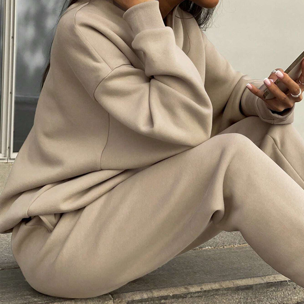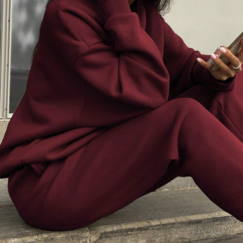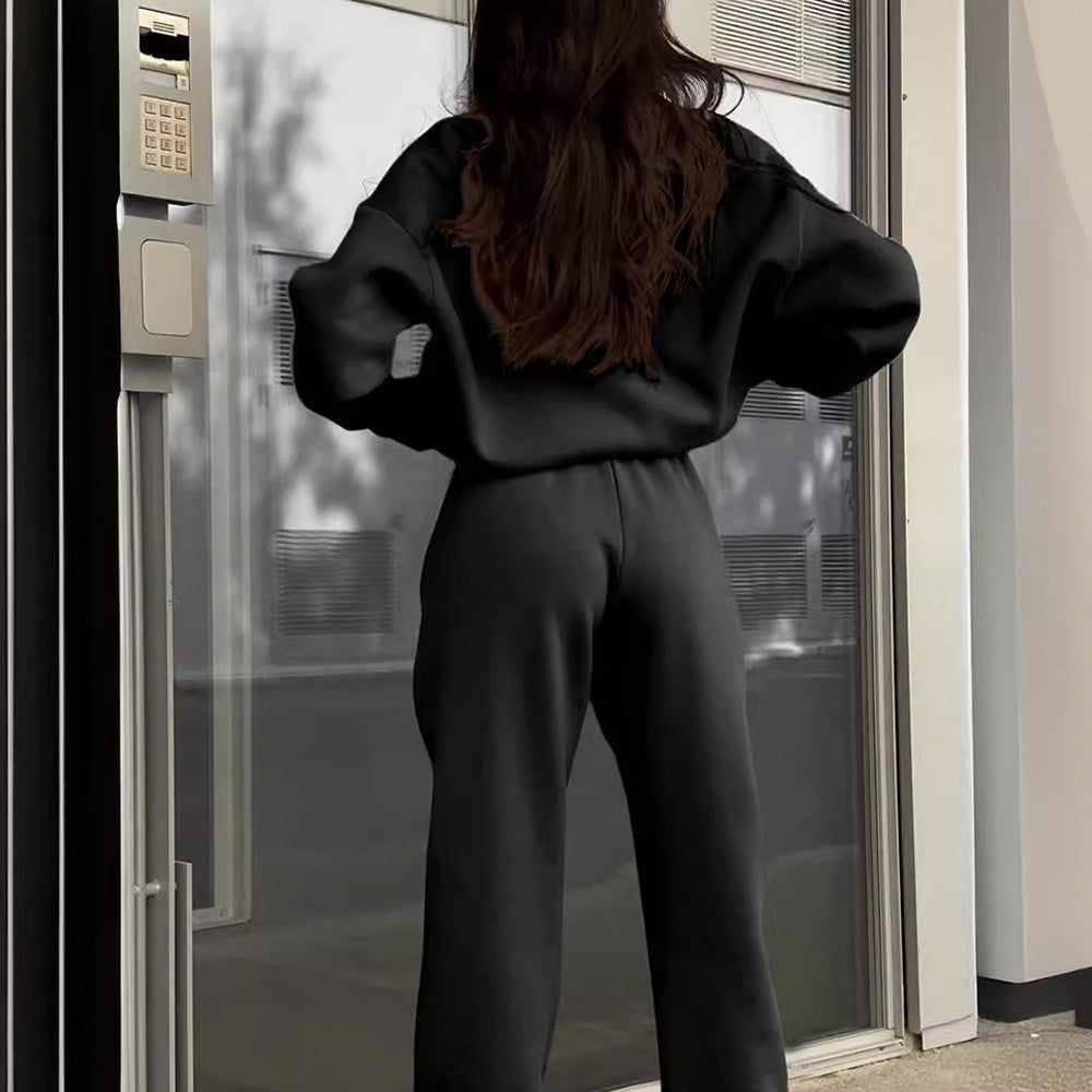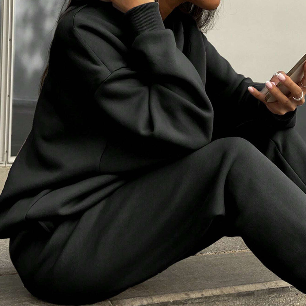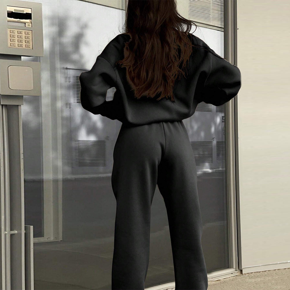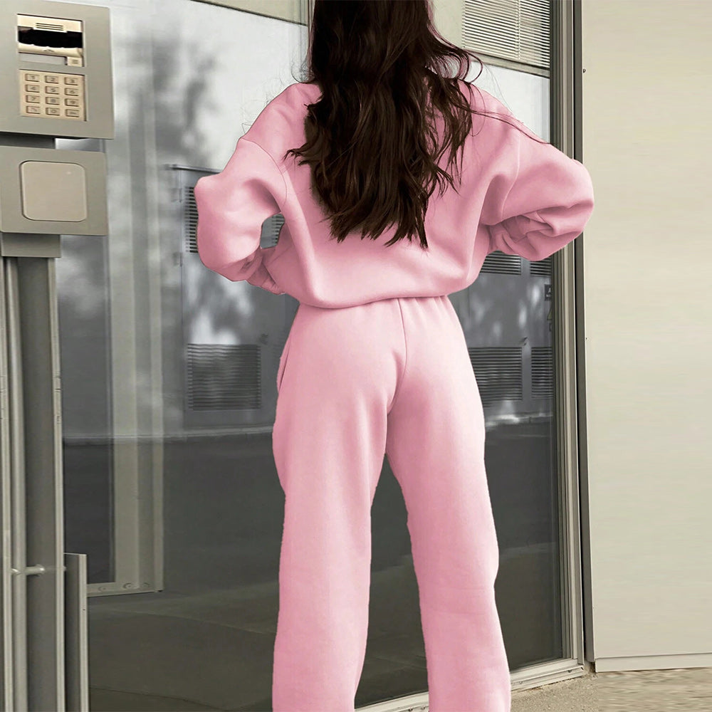• 1 x Herbst Und Winter Frauen Neue Mode Zipper Revers Einfarbig Casual Zwei-Stück Set
