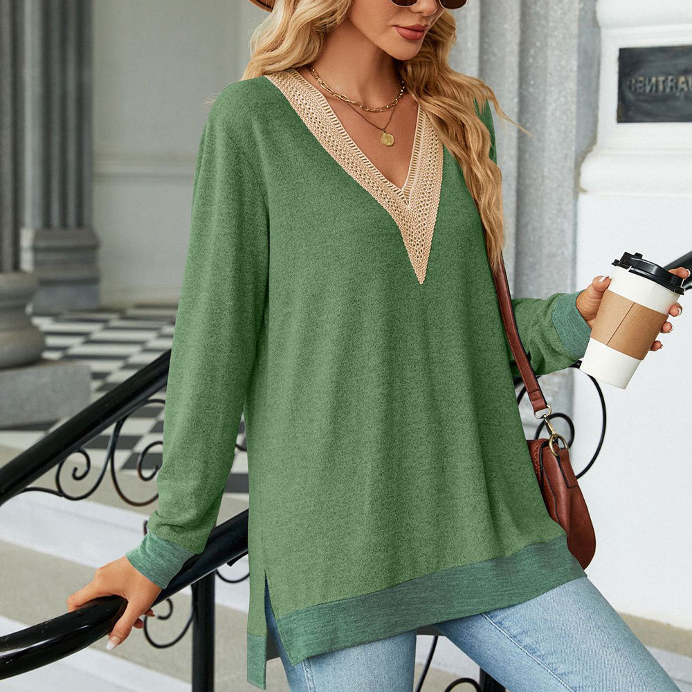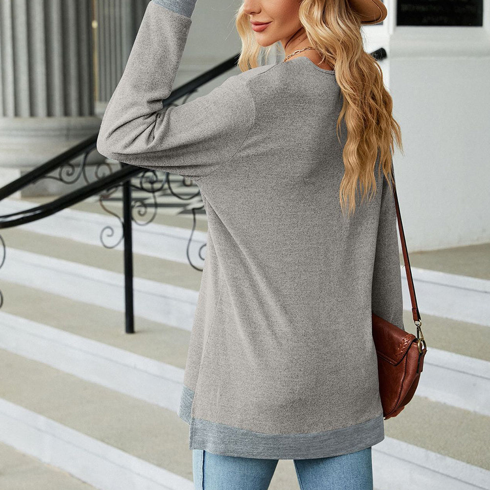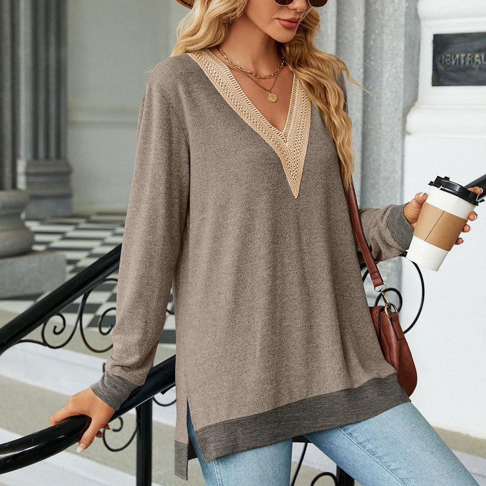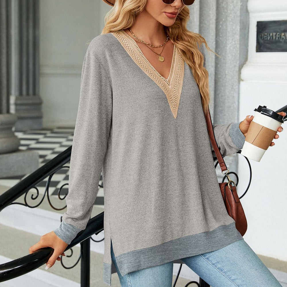 • 1 x Lockeres Langarm-T-Shirt mit V-Ausschnitt und Schlitz für Damen