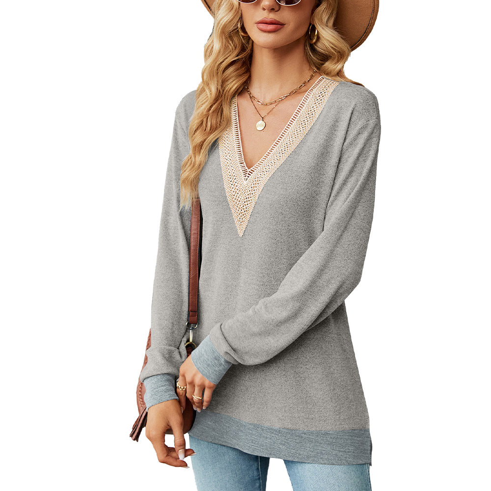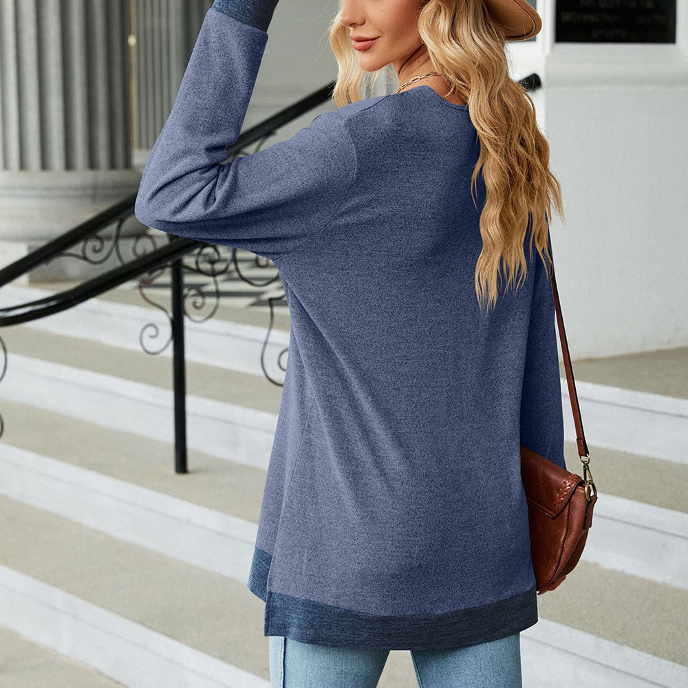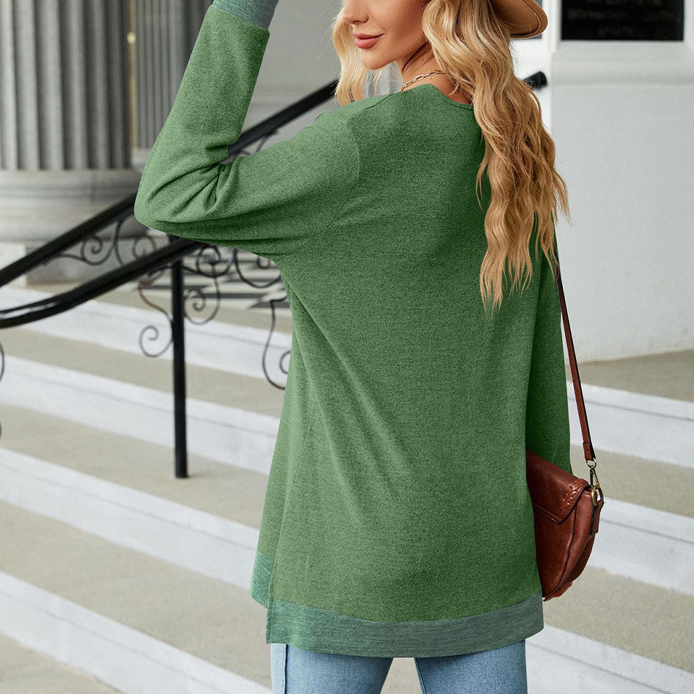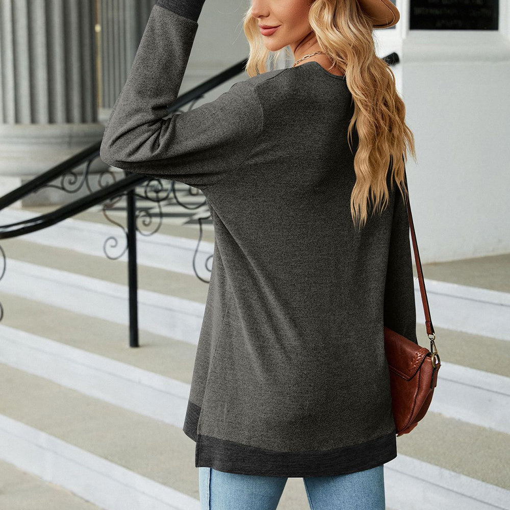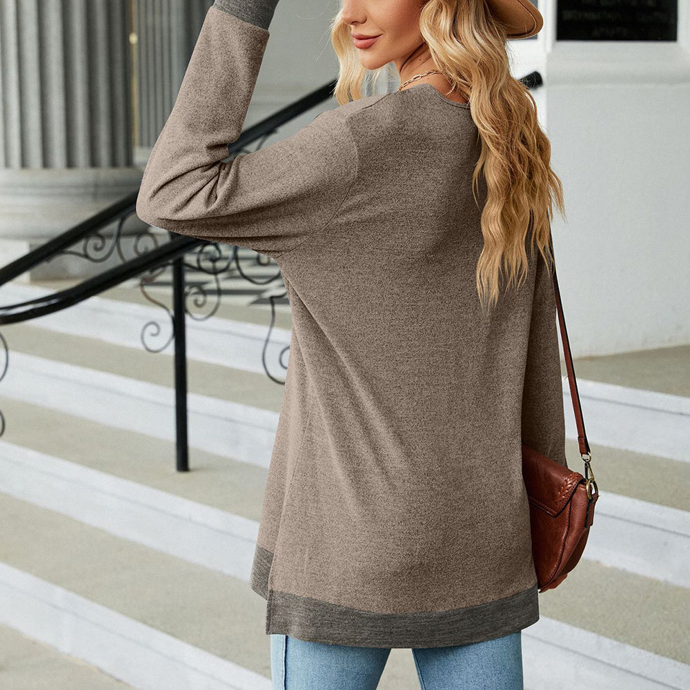 • 1 x Lockeres Langarm-T-Shirt mit V-Ausschnitt und Schlitz für Damen