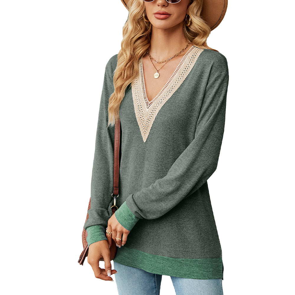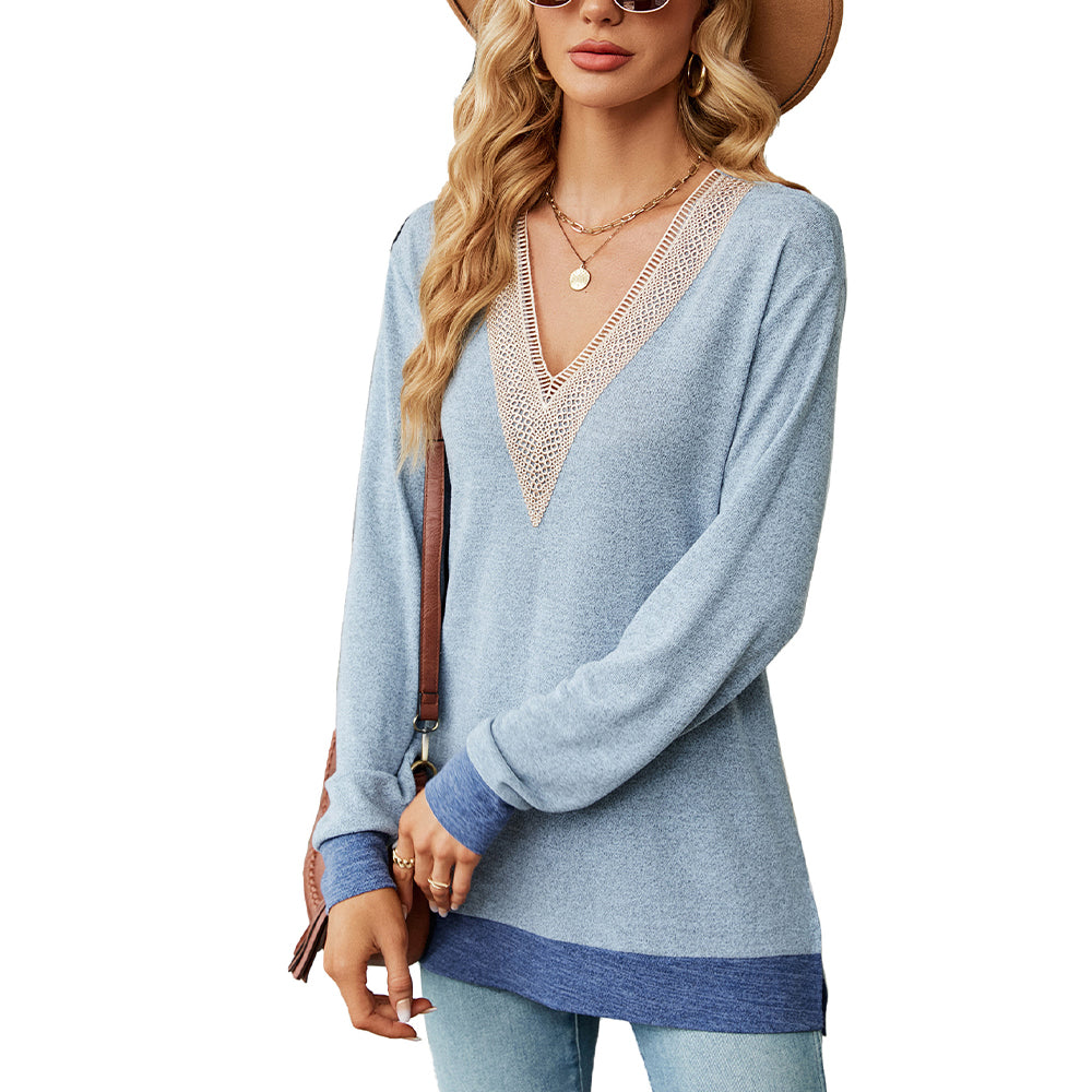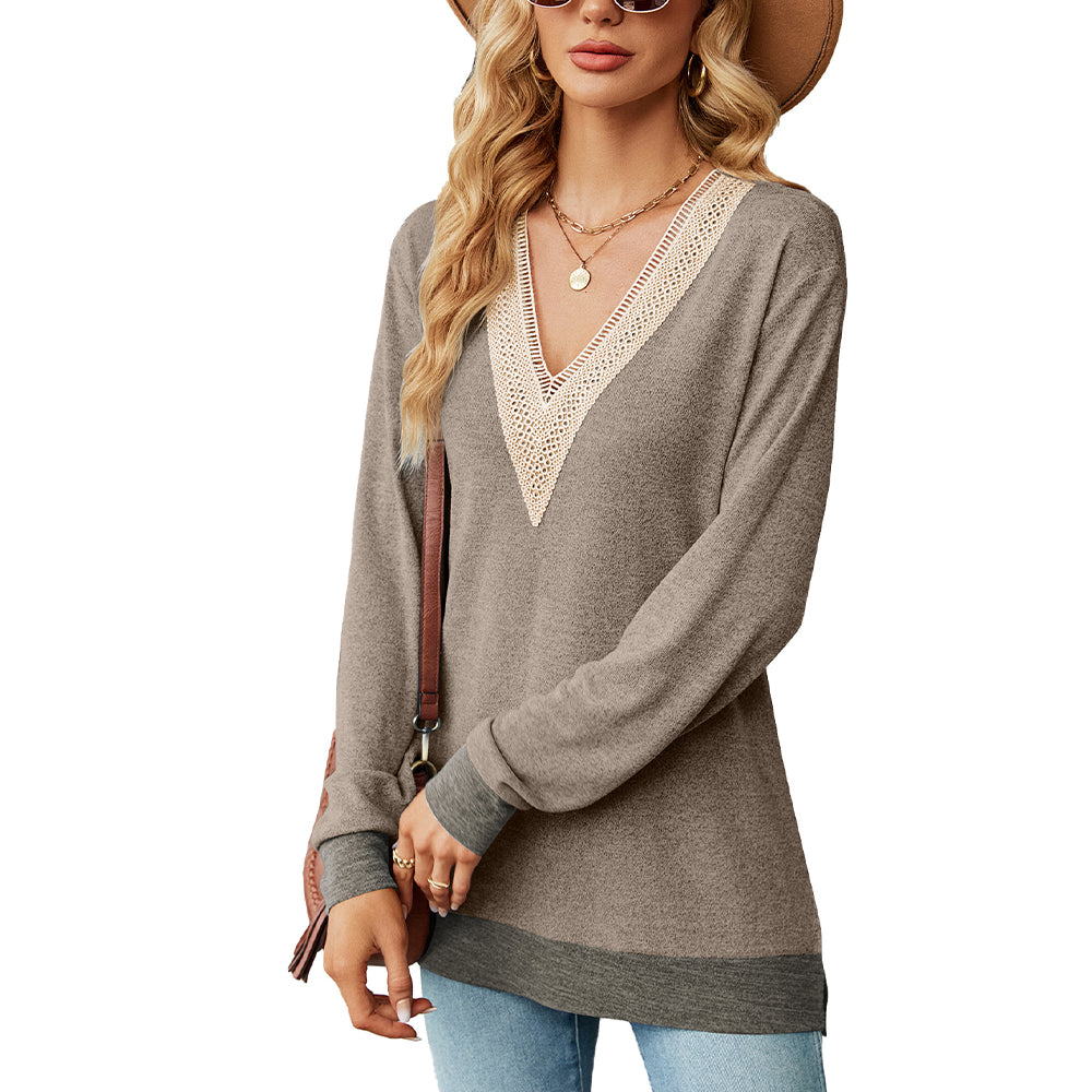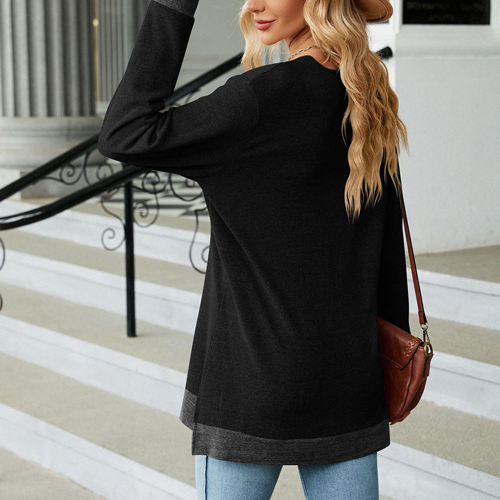 • 1 x Lockeres Langarm-T-Shirt mit V-Ausschnitt und Schlitz für Damen