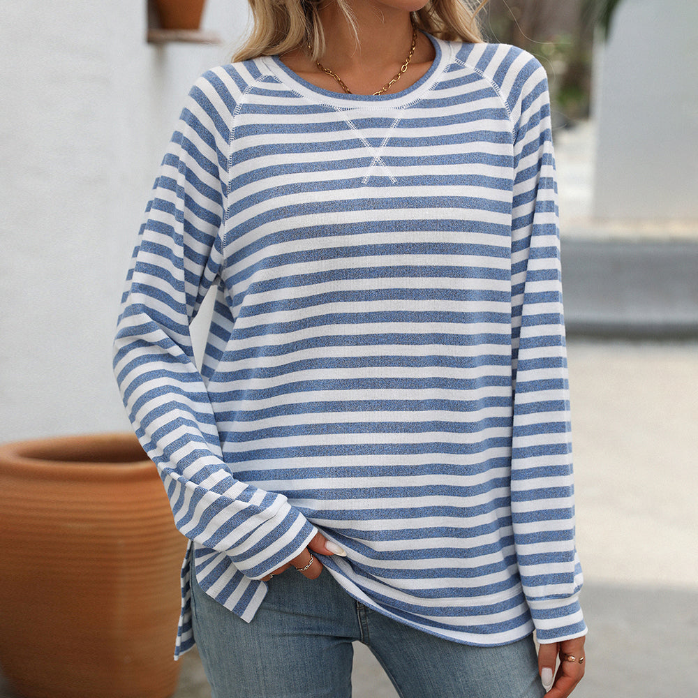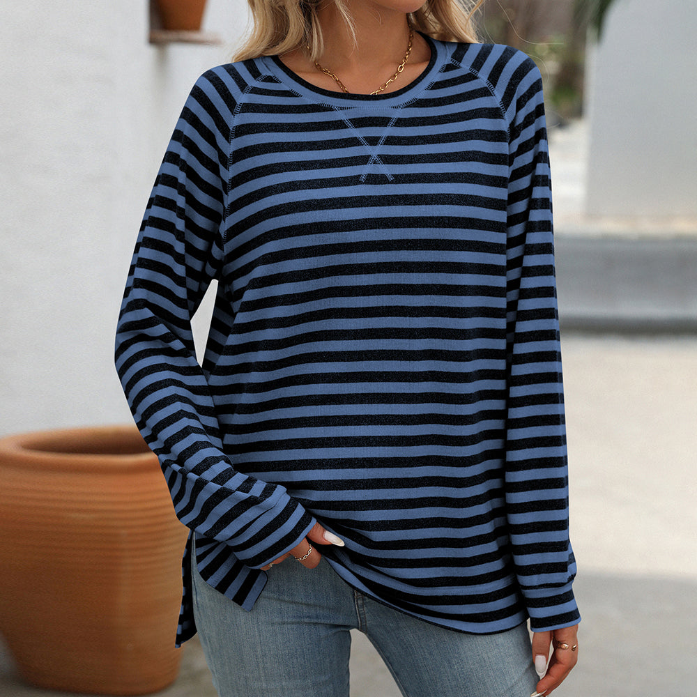 - 1 x Neues Herbst- und Winter-gestreiftes Kontrastfarben-Rundhals-Langarm-Lose-T-Shirt