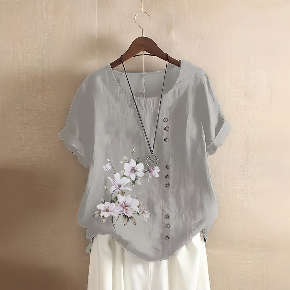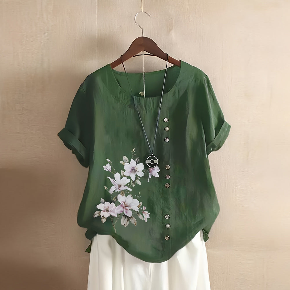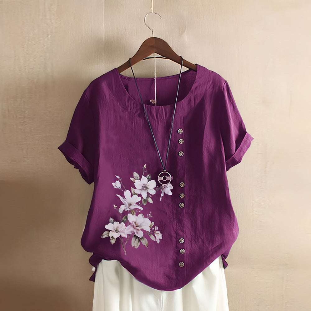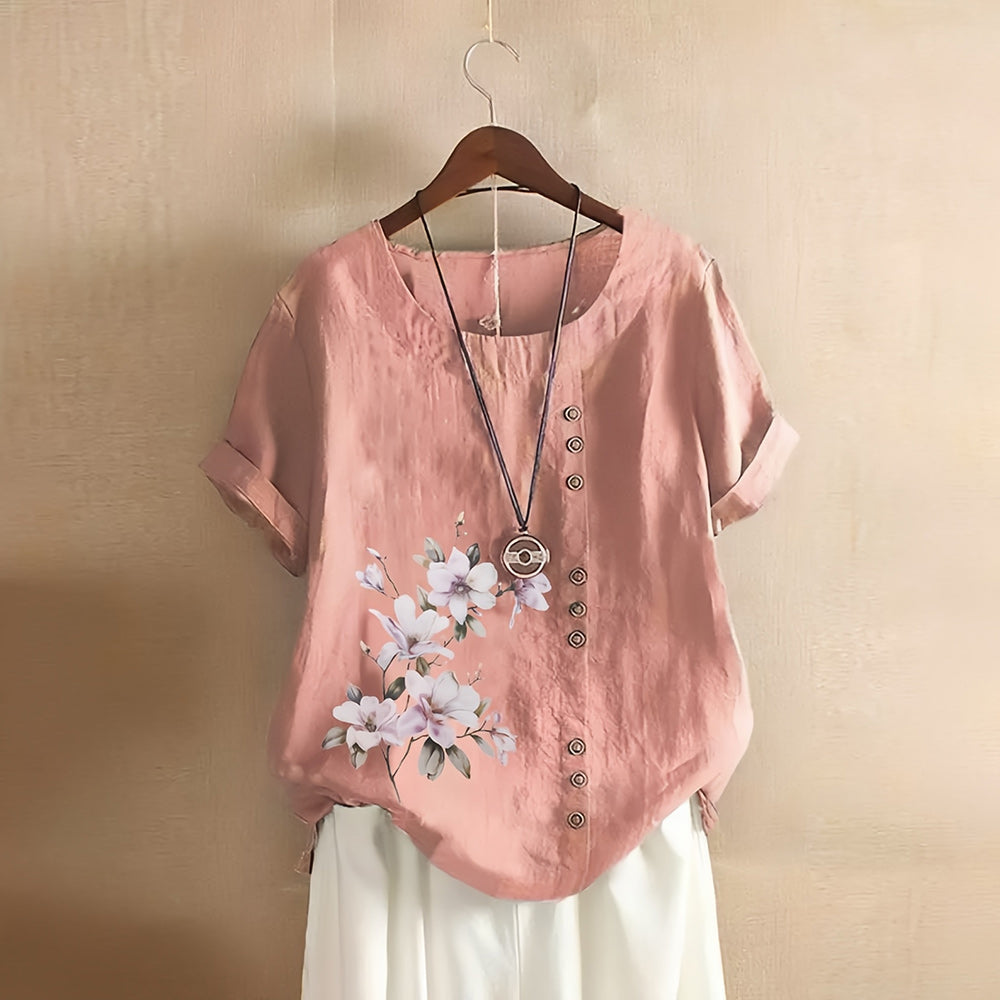 Vintage Damen T-Shirt aus Baumwolle und Leinen mit Blumenmuster