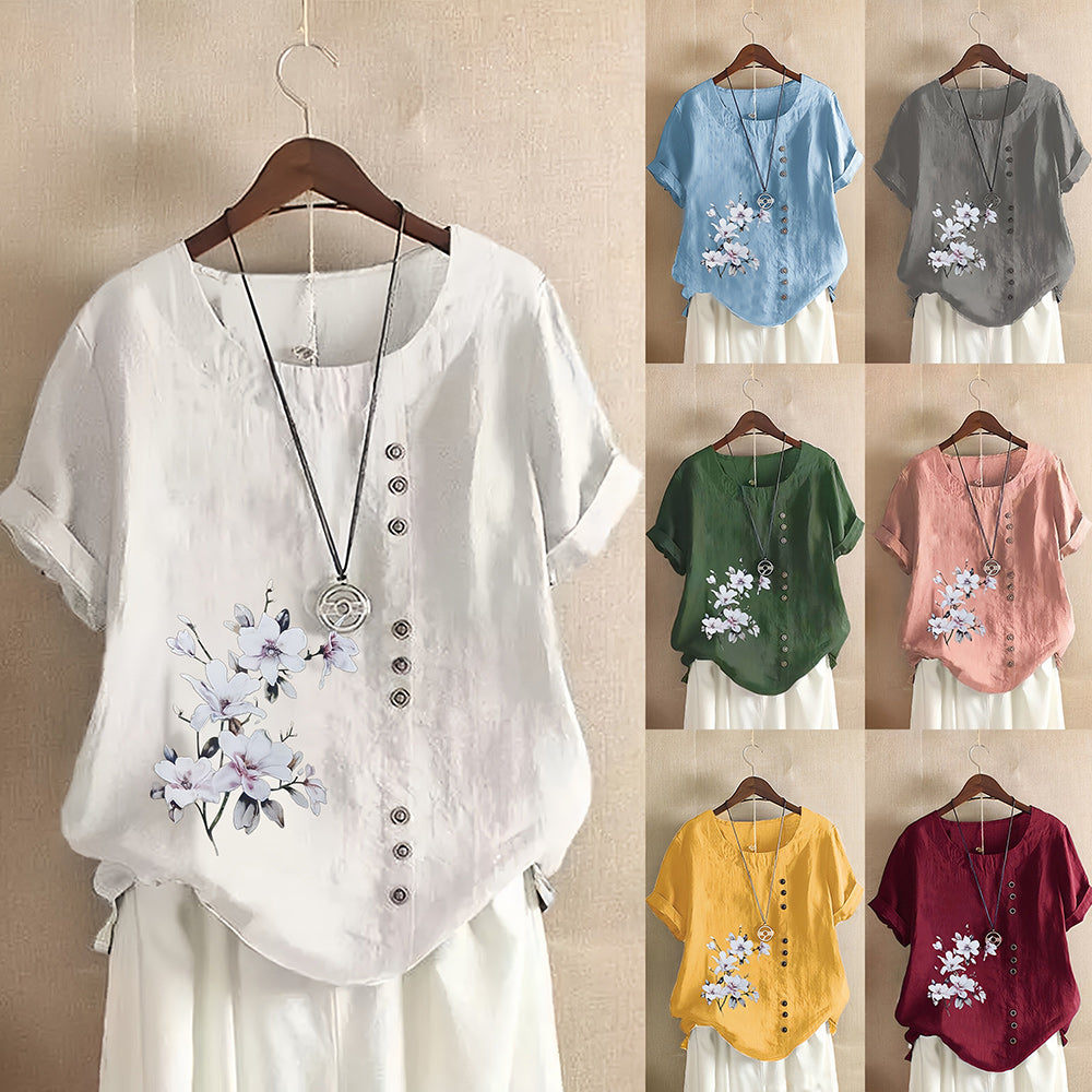 🍂🌼Hochwertiger Stoff: Baumwoll- und Leinenmaterial, weich und hautfreundlich. Dieses T-Shirt ist für die empfindliche Haut von Frauen geeignet und verfügt über eine gute Atmungsaktivität, was es zu einer guten Wahl für Frühlings- und Sommerkleidung macht.
