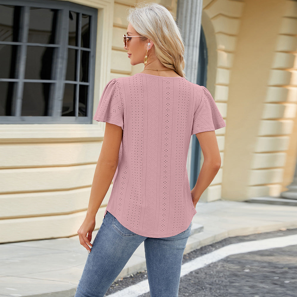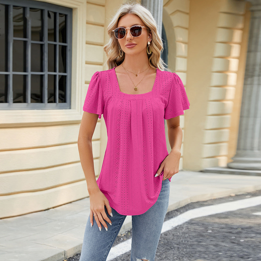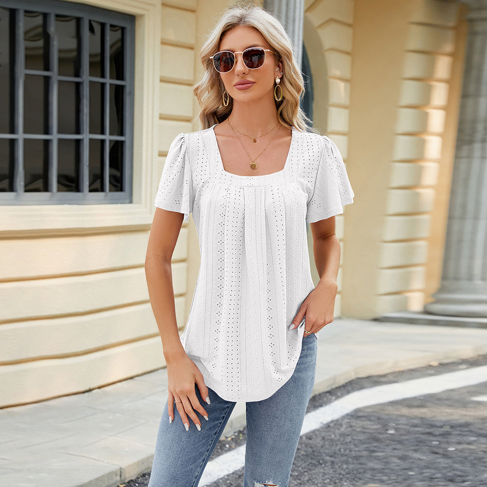 • 1 x Kühles Damen-T-Shirt mit quadratischem Ausschnitt und Rüschenärmeln