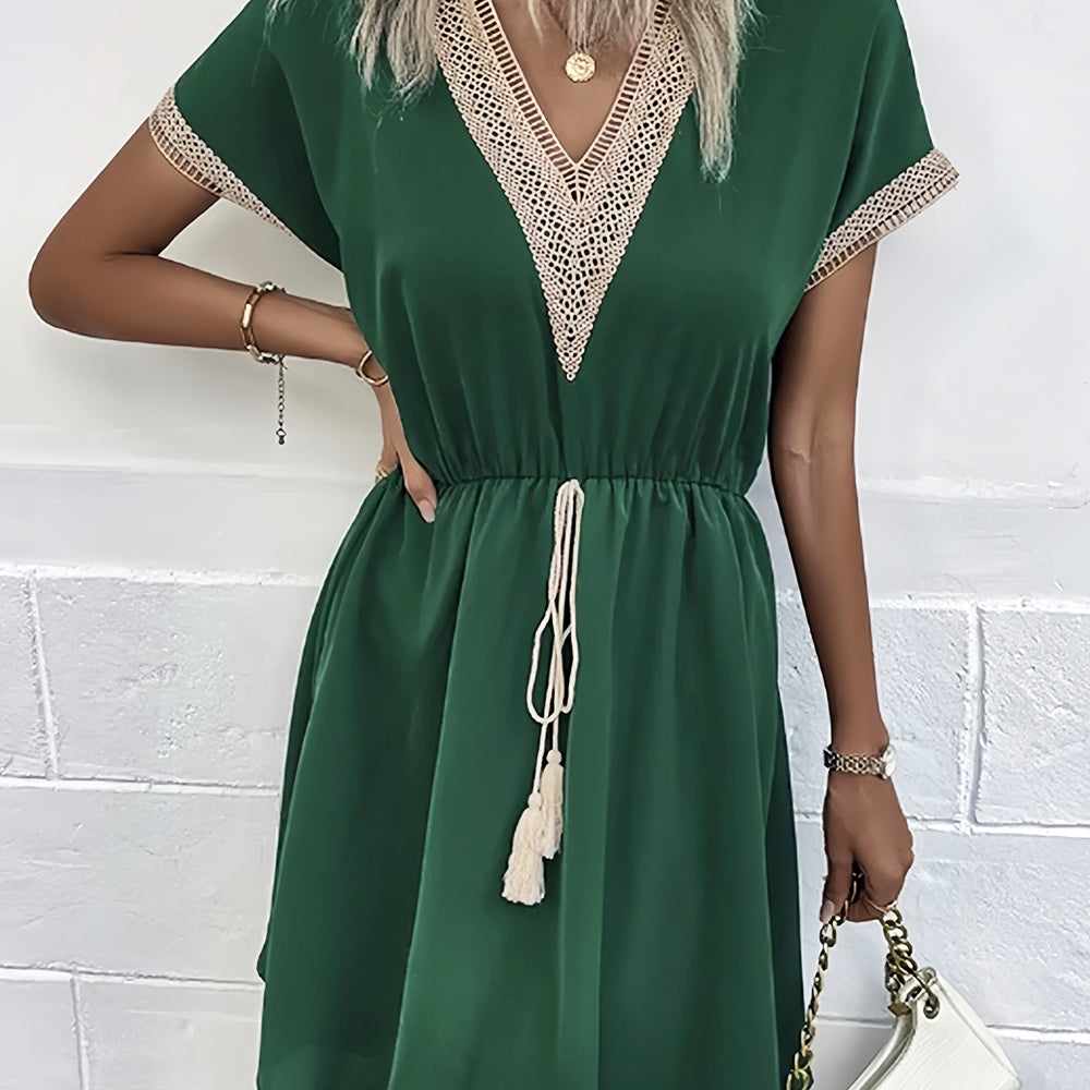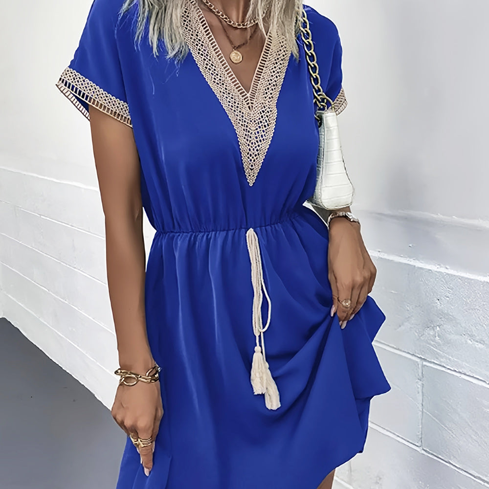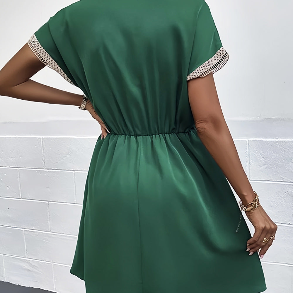 Sommerlich modisches Kurzarmkleid mit V-Ausschnitt und taillierter Passform