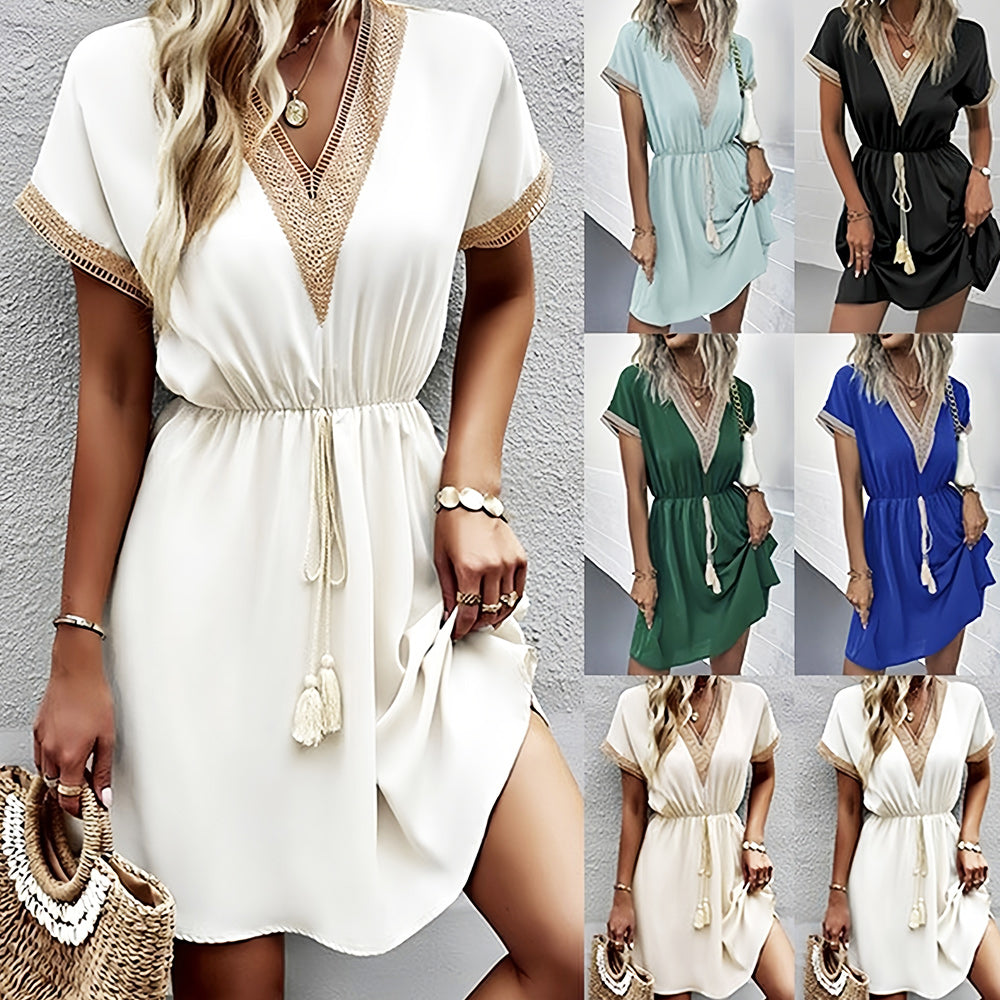 • 1 x Sommerlich modisches Kurzarmkleid mit V-Ausschnitt und taillierter Passform