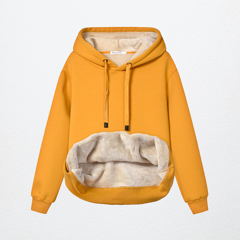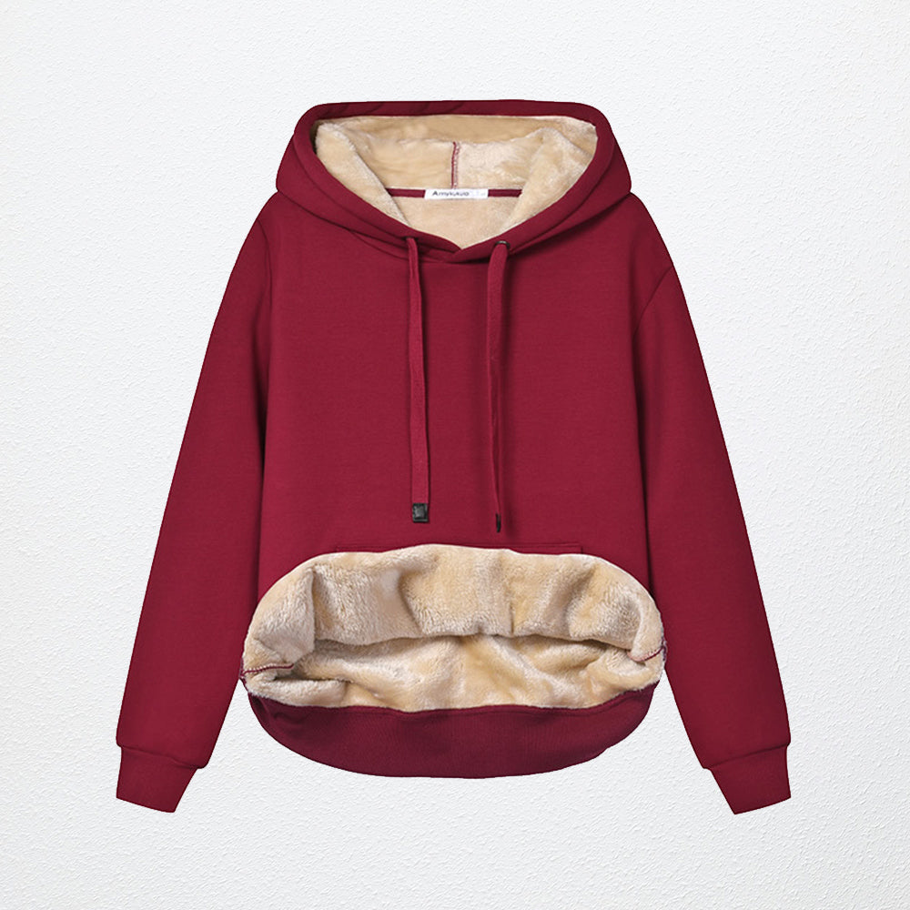 - 1 x Winter-Fleece-Kapuzen-Damen-Sherpa-Pullover, Mittellang, Dick, Für Damen