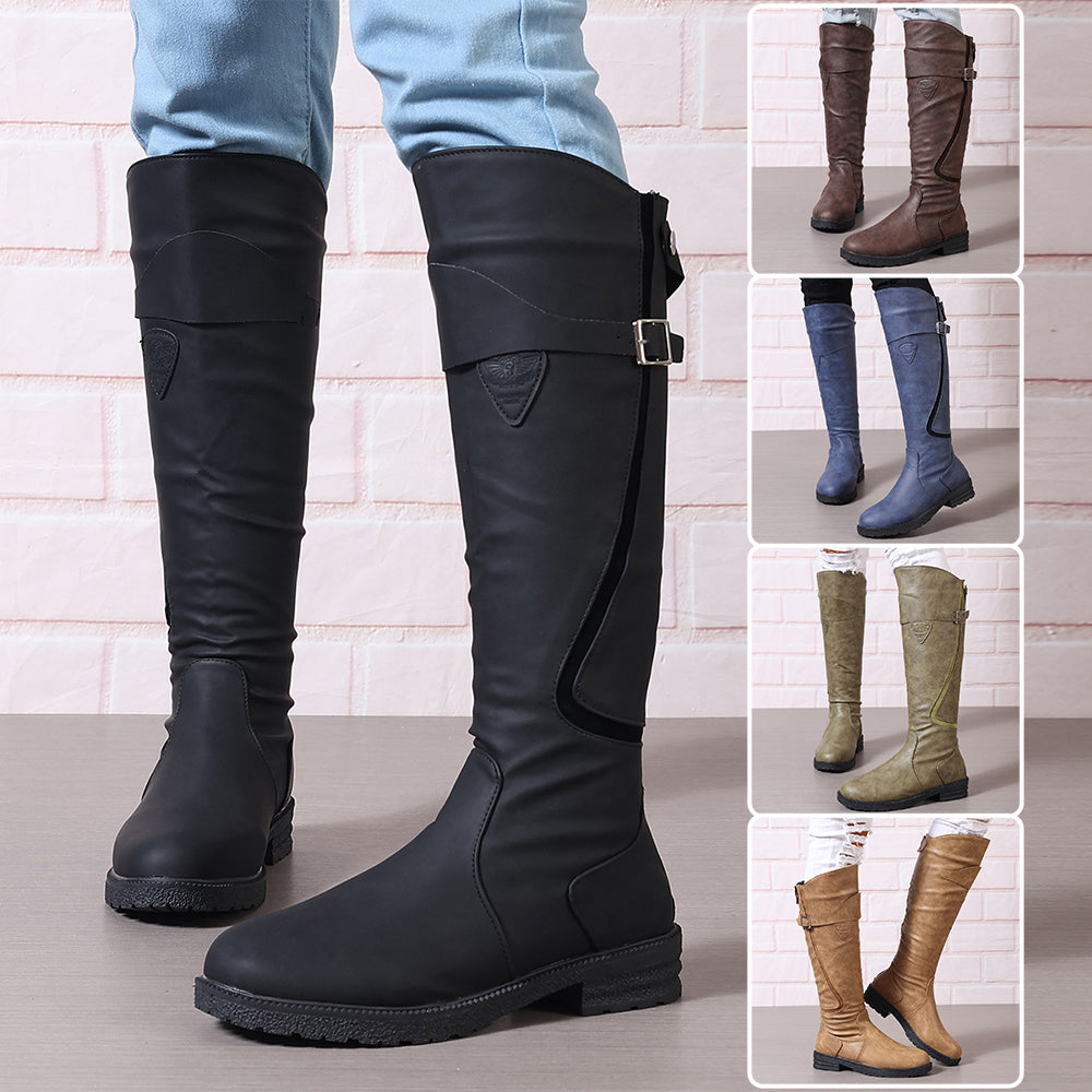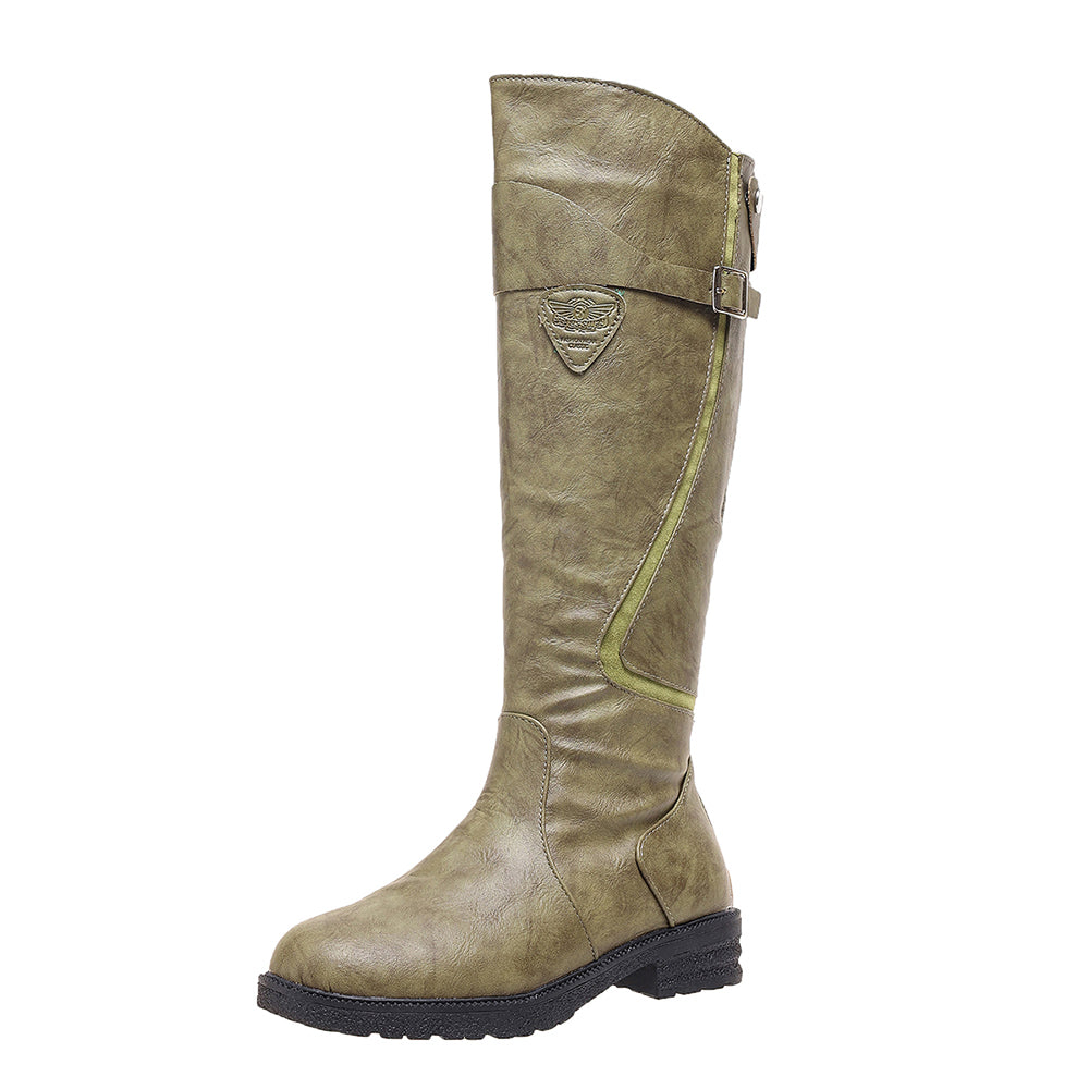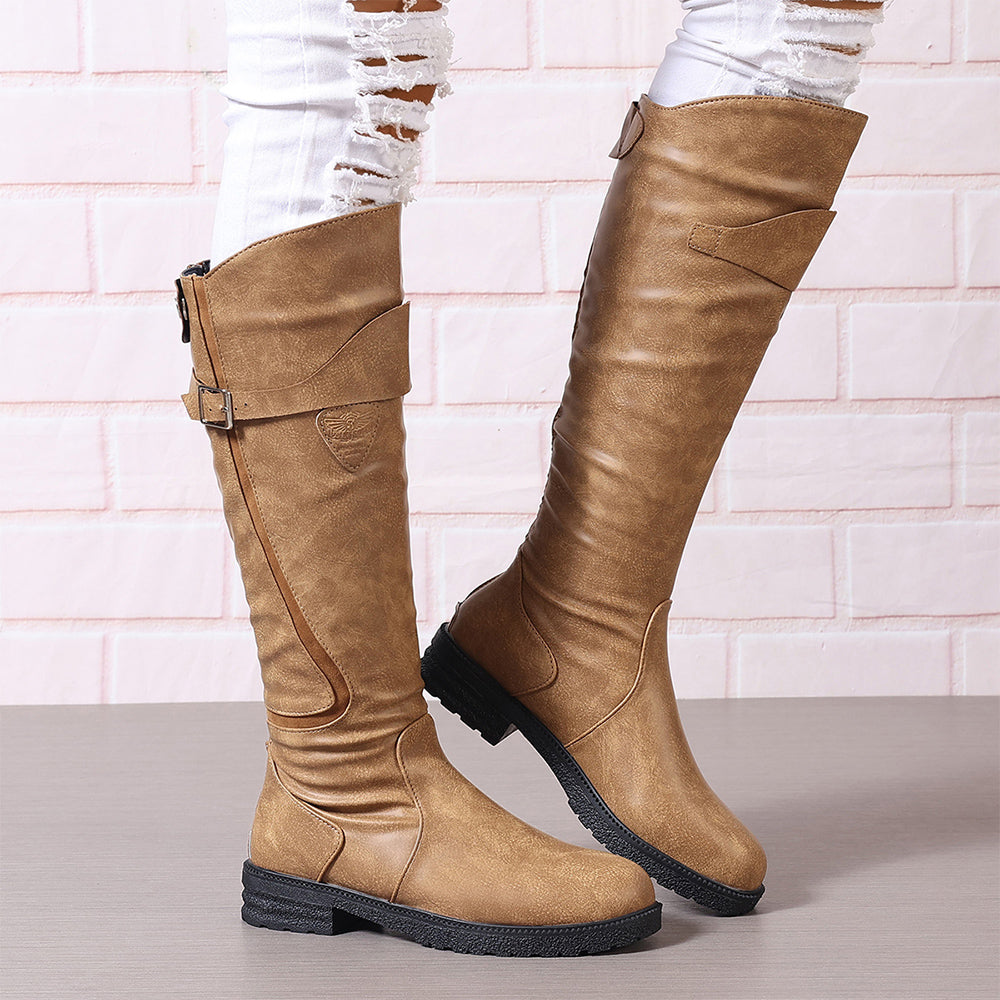 Damen-Lederstiefel Im Neuen Stil Mit Langem Reißverschluss Hinten Und Flachem, Dickem Absatz