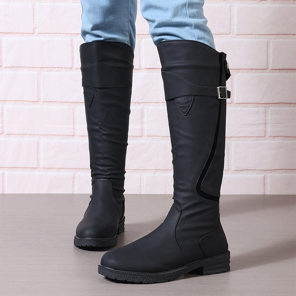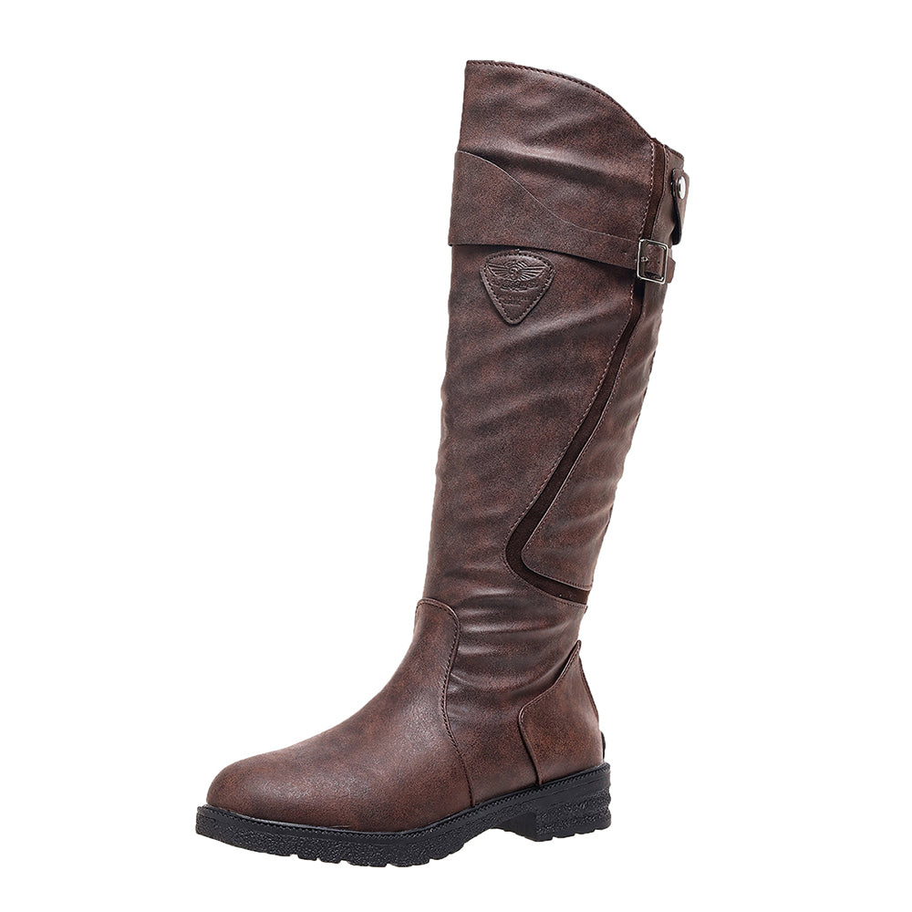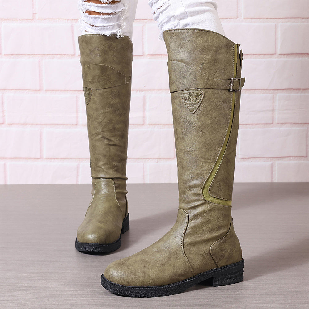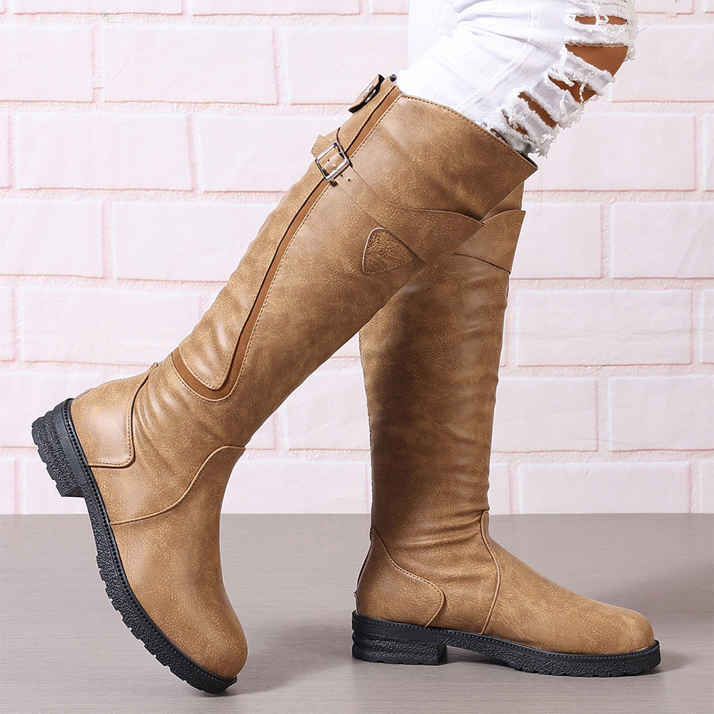 Damen-Lederstiefel Im Neuen Stil Mit Langem Reißverschluss Hinten Und Flachem, Dickem Absatz