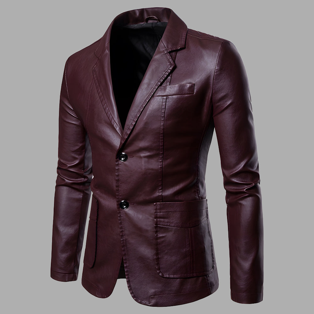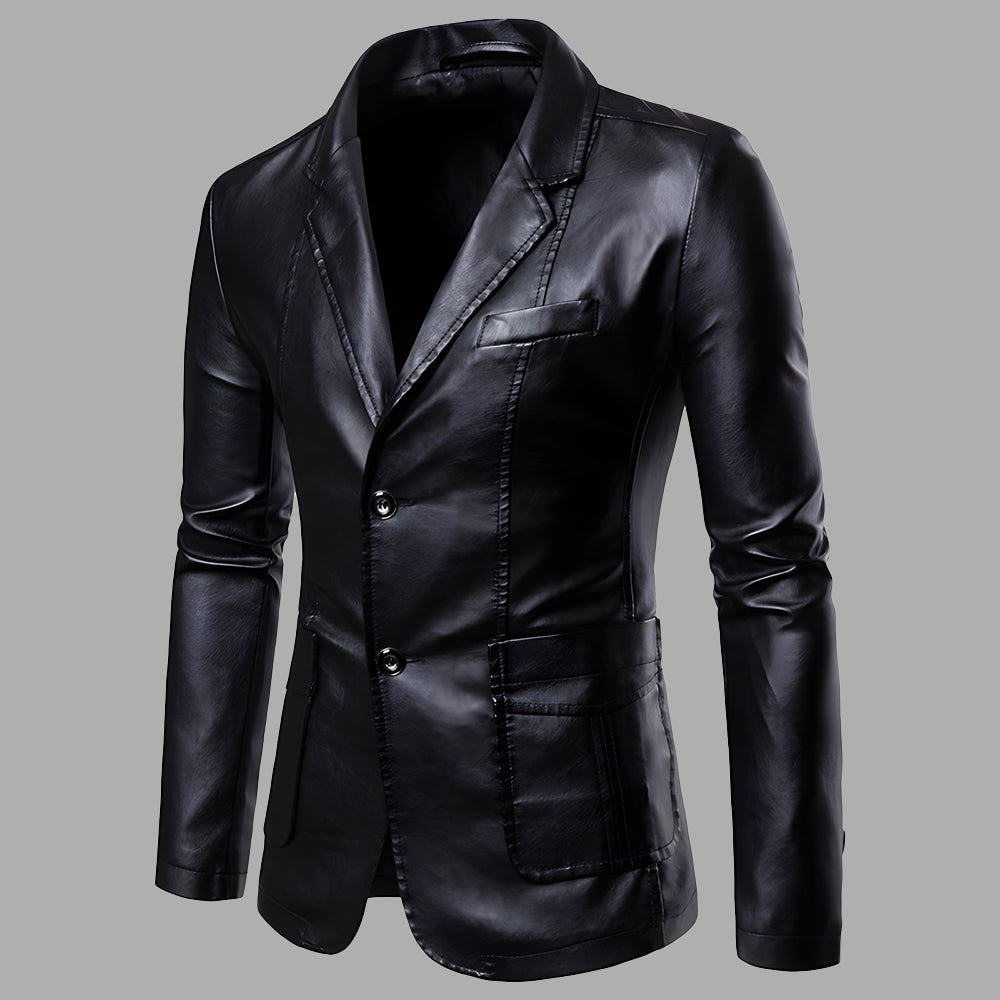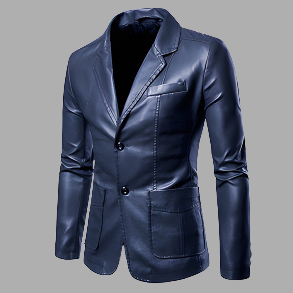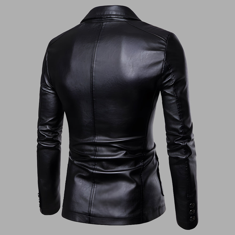• 1 x Vielseitige Anzug-Lederjacke Für Herren Im Herbst Und Winter Mit Schmalem Revers