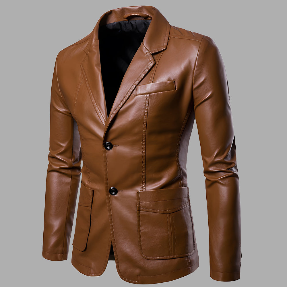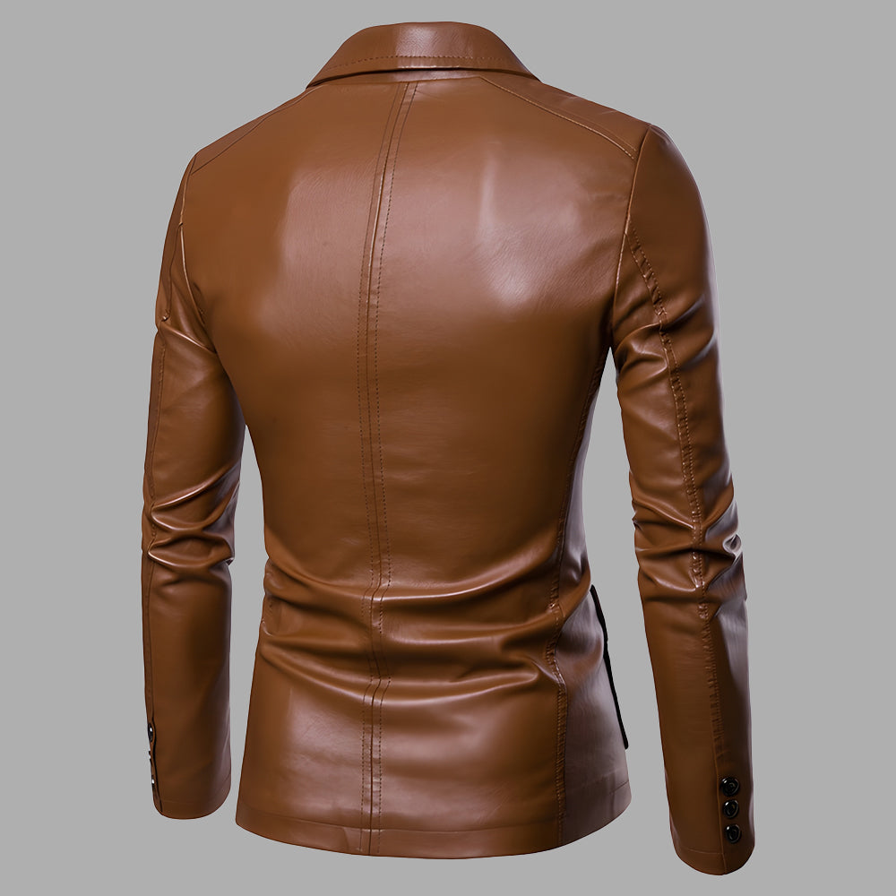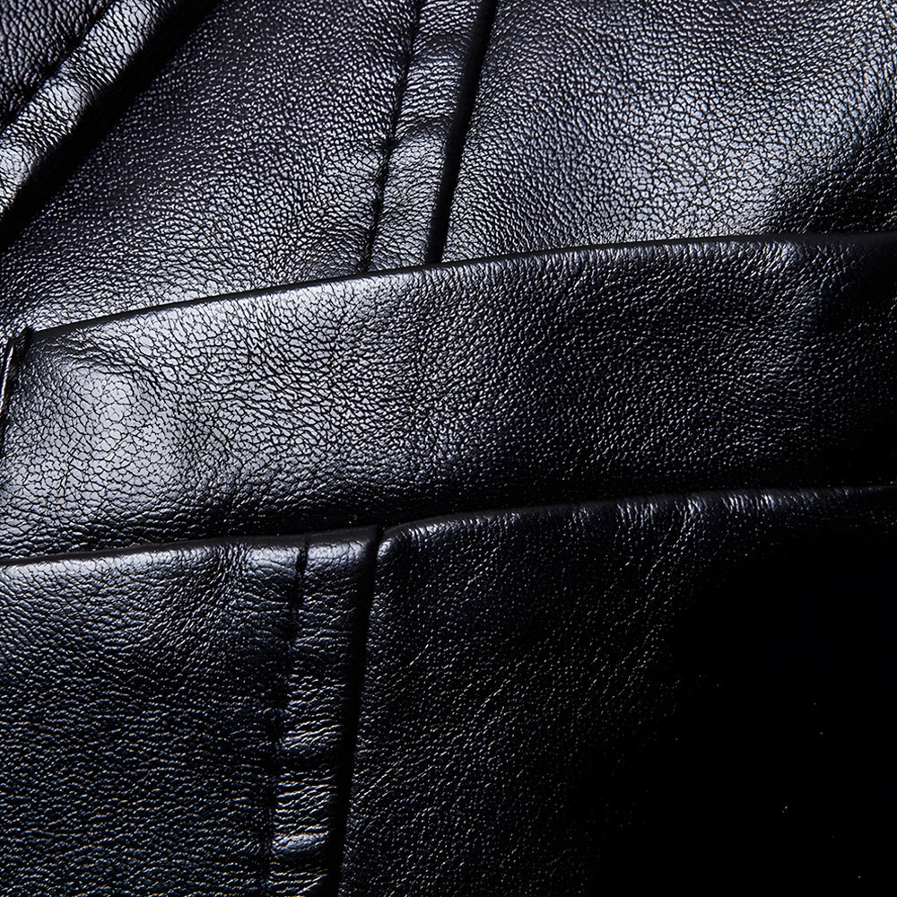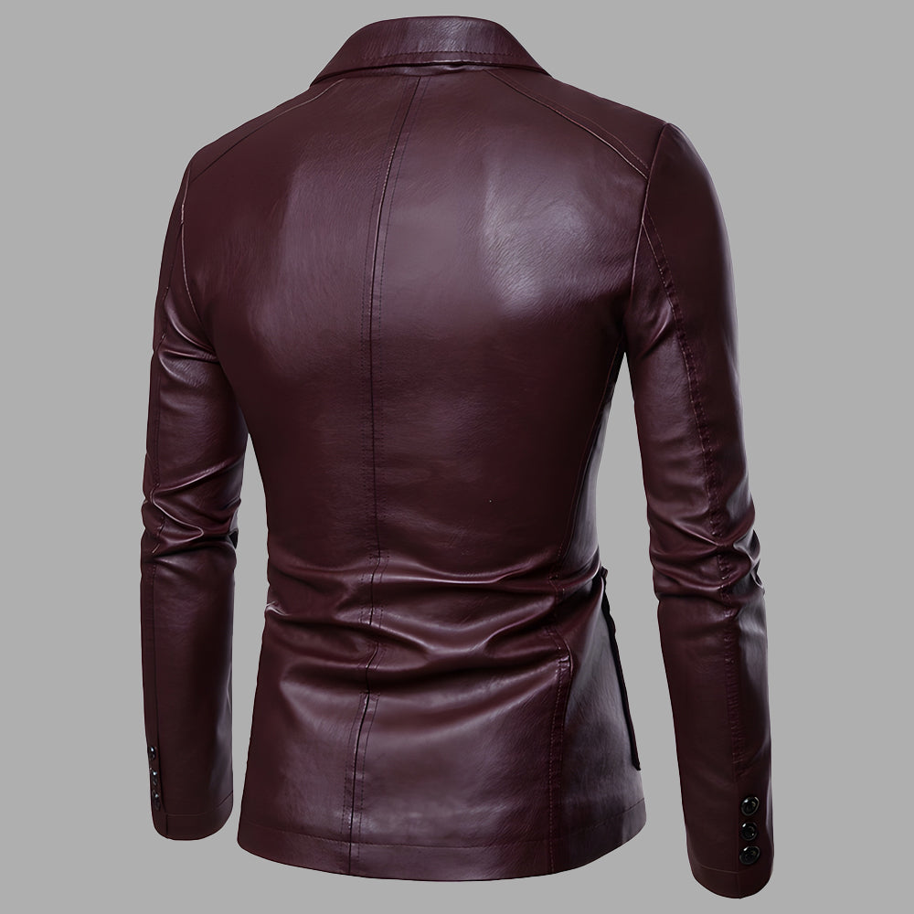 • 1 x Vielseitige Anzug-Lederjacke Für Herren Im Herbst Und Winter Mit Schmalem Revers