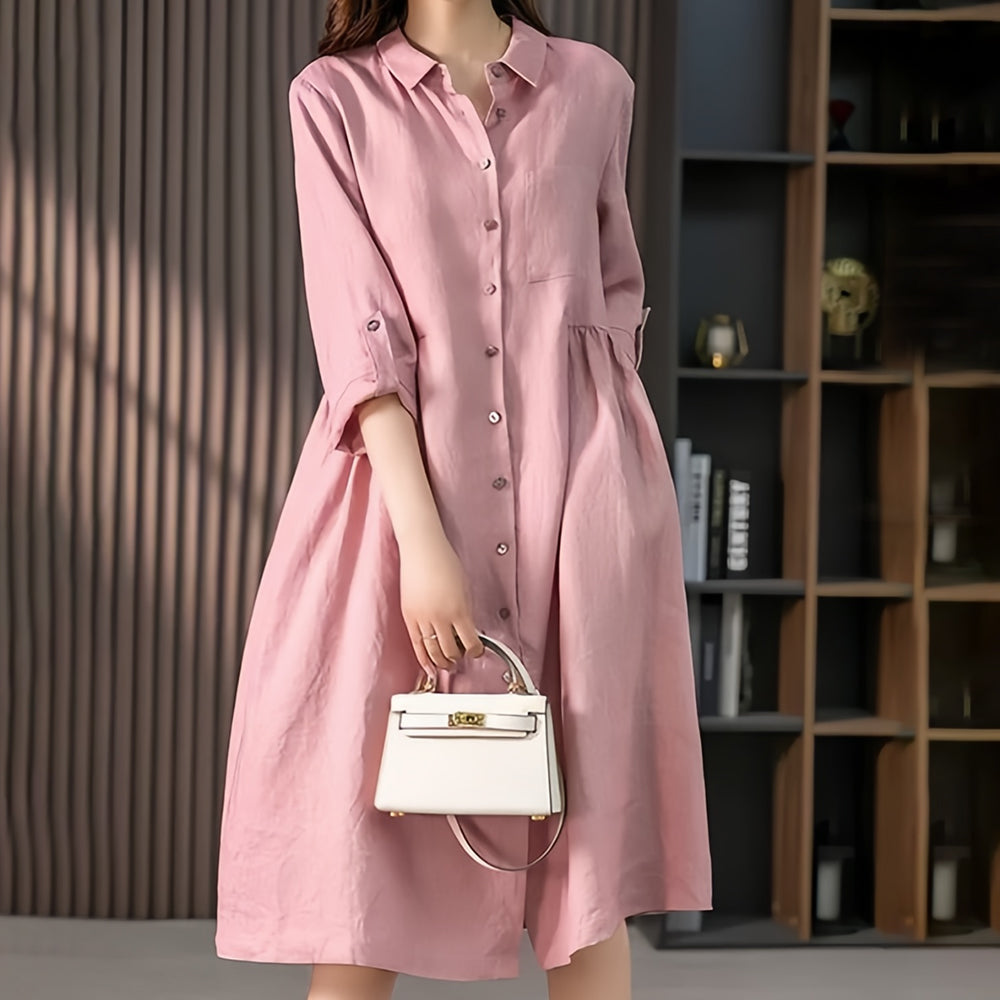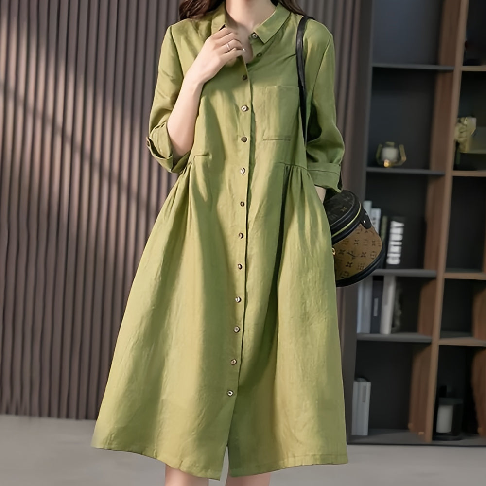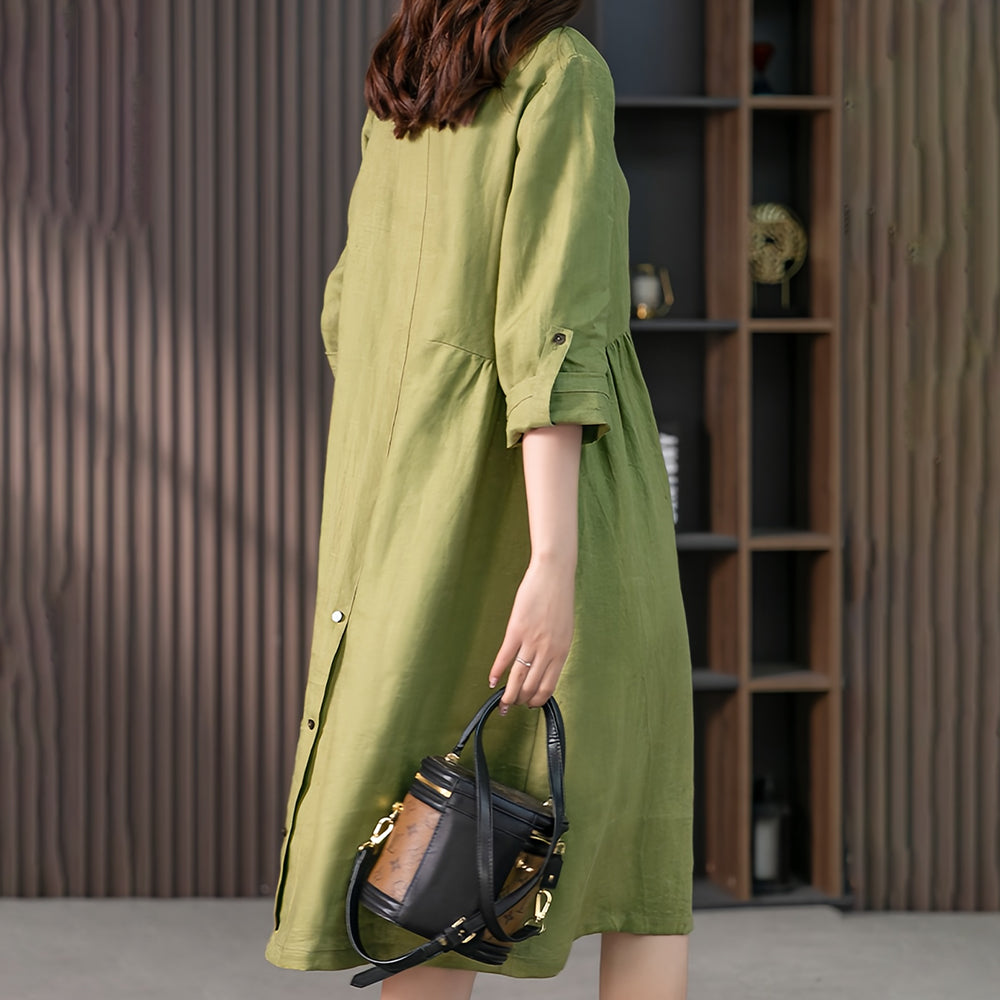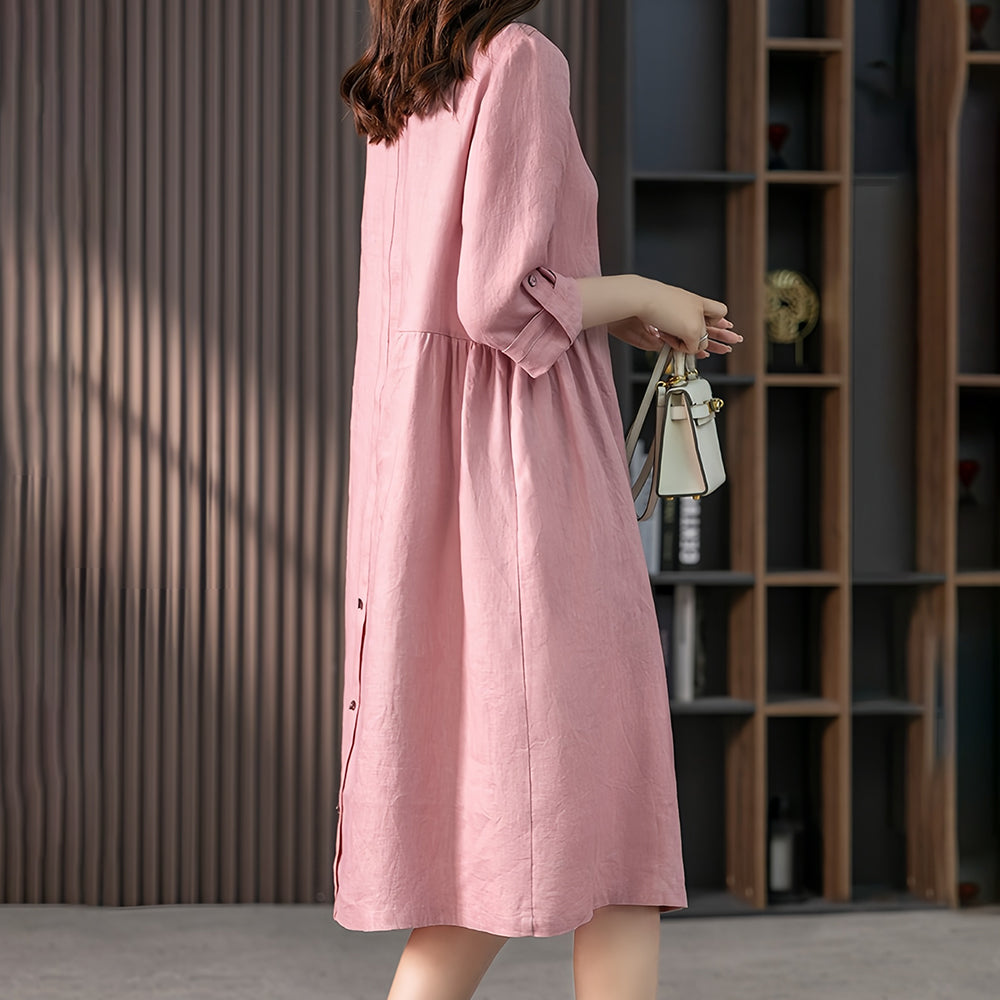 Neues, elegantes, einfarbiges Schlankheitskleid aus Leinen
