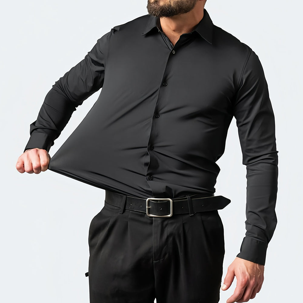 Schönes schwarzes Businesshemd mit vierseitigem Stretch für Herren