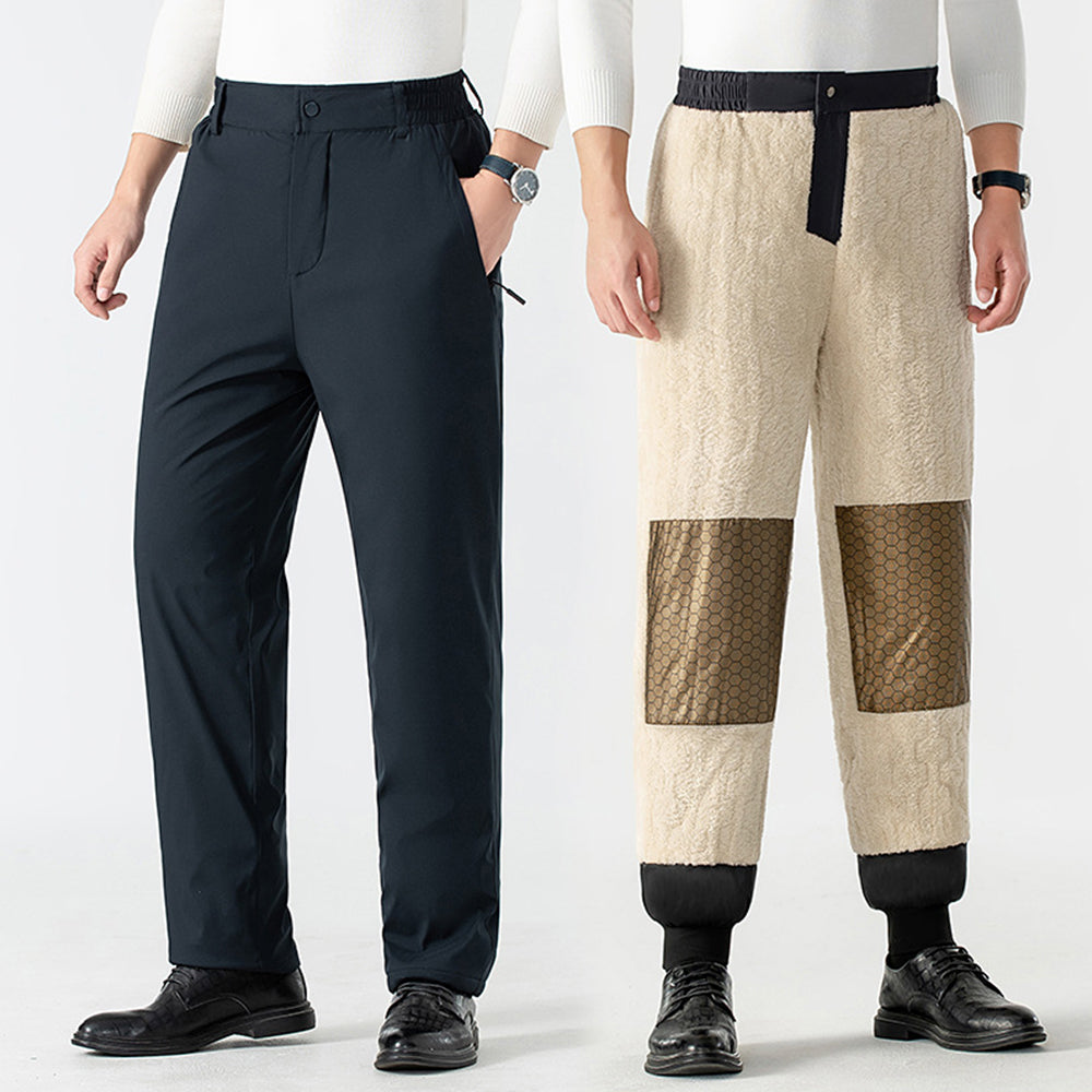 - 1 x Graphen-Knieschützer, Winddichte Sherpa-Herren-Samtverdickung, Lässige, Lockere, Gerade Baumwollhose