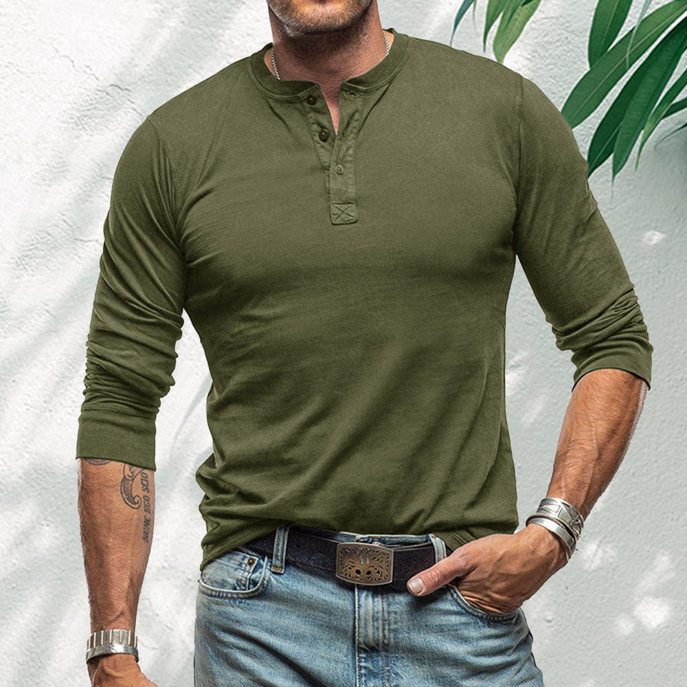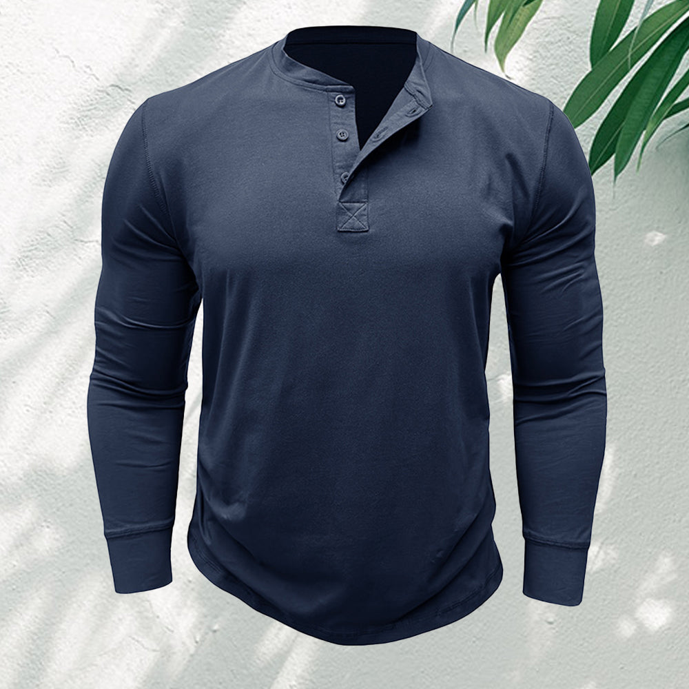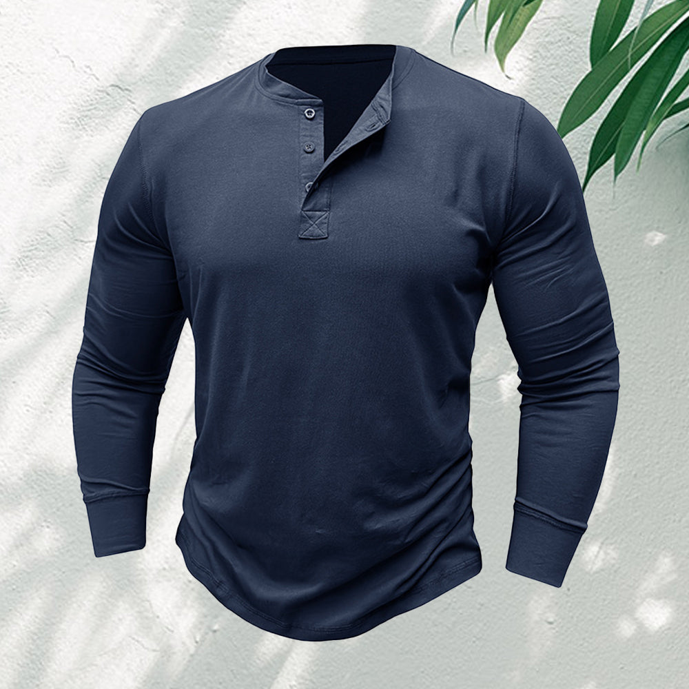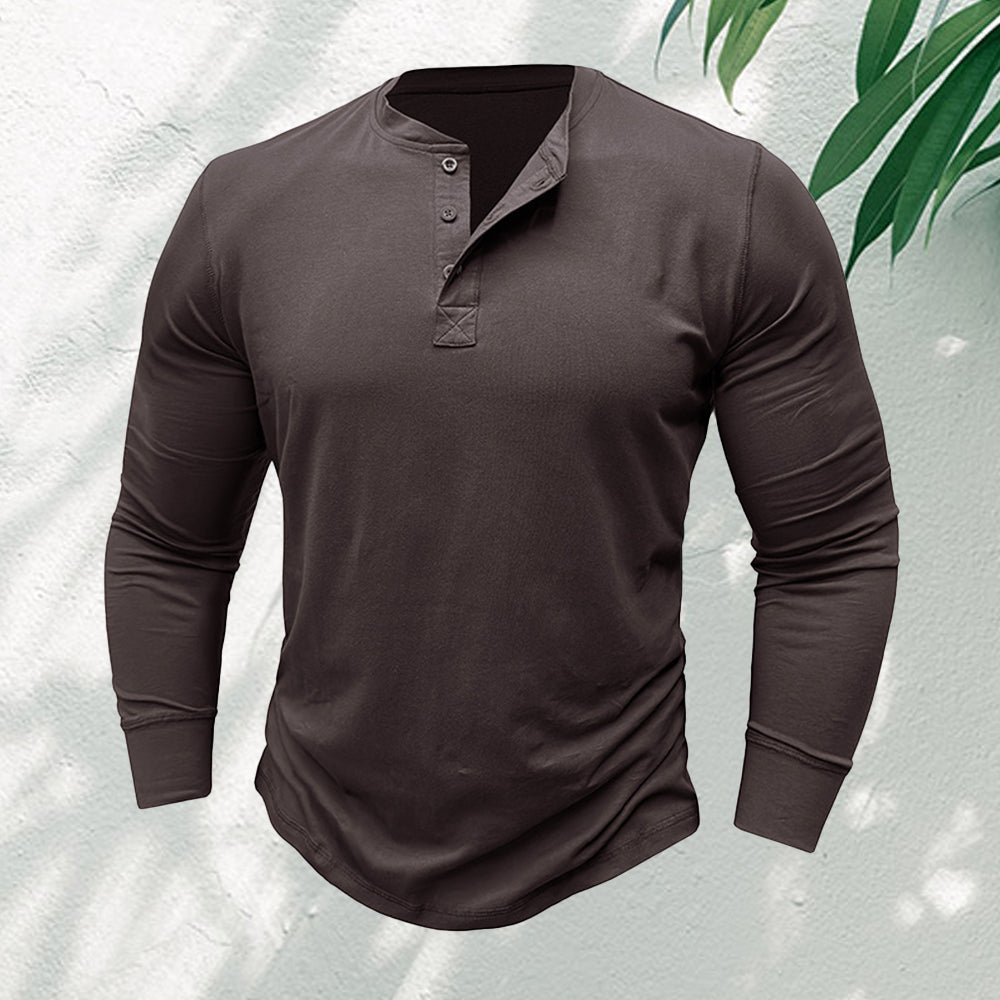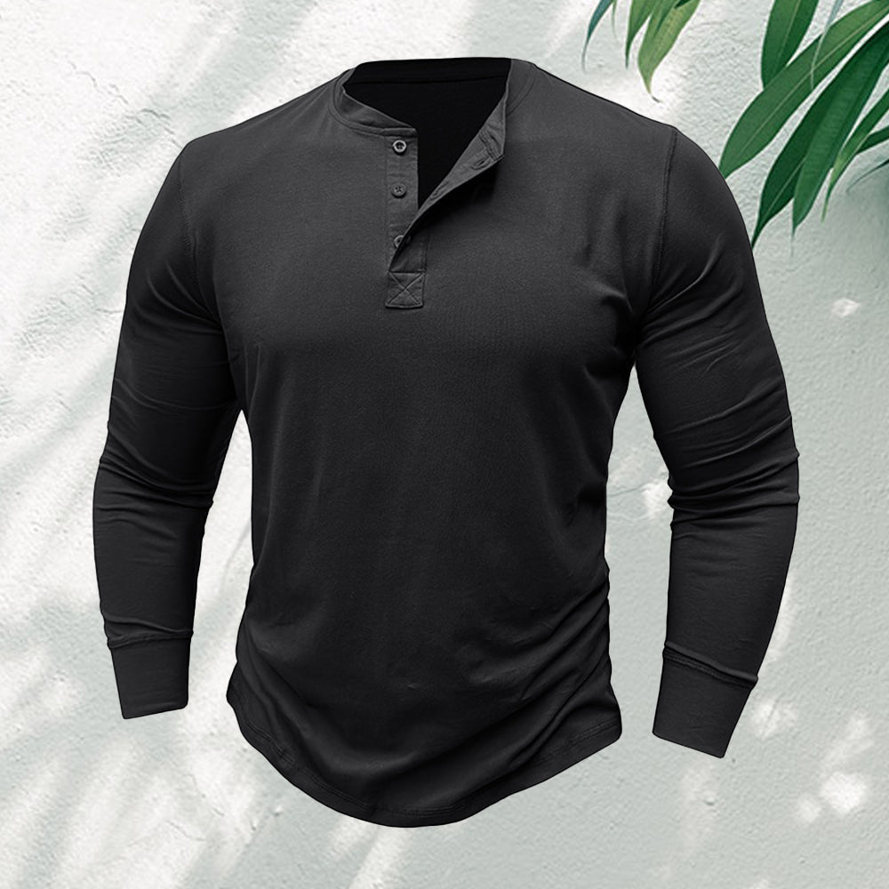 2024 Herbst Und Winter Vielseitiges Einfarbiges Henley-Hemd Für Herren Mit Langen ärmeln