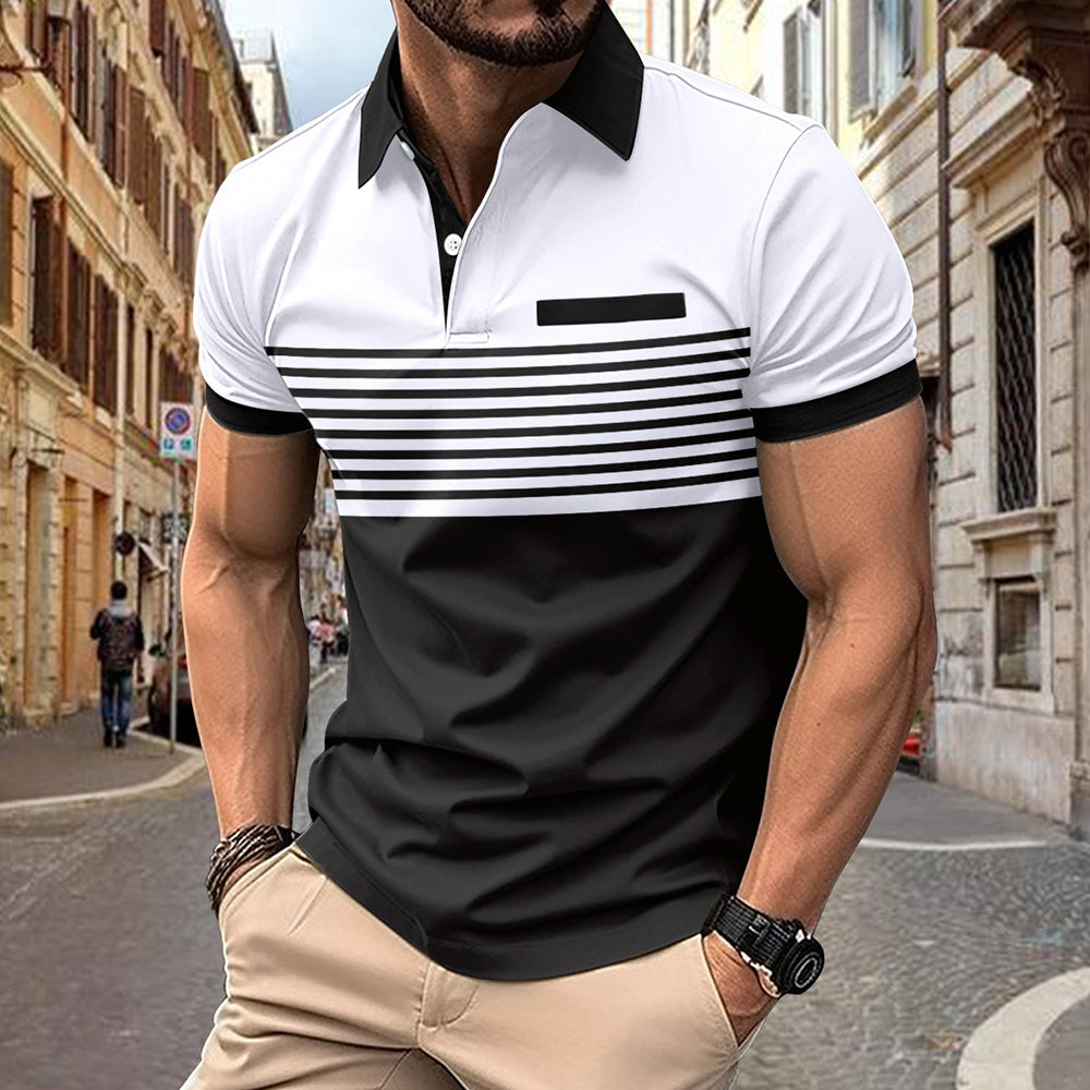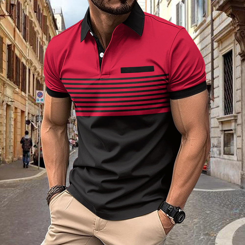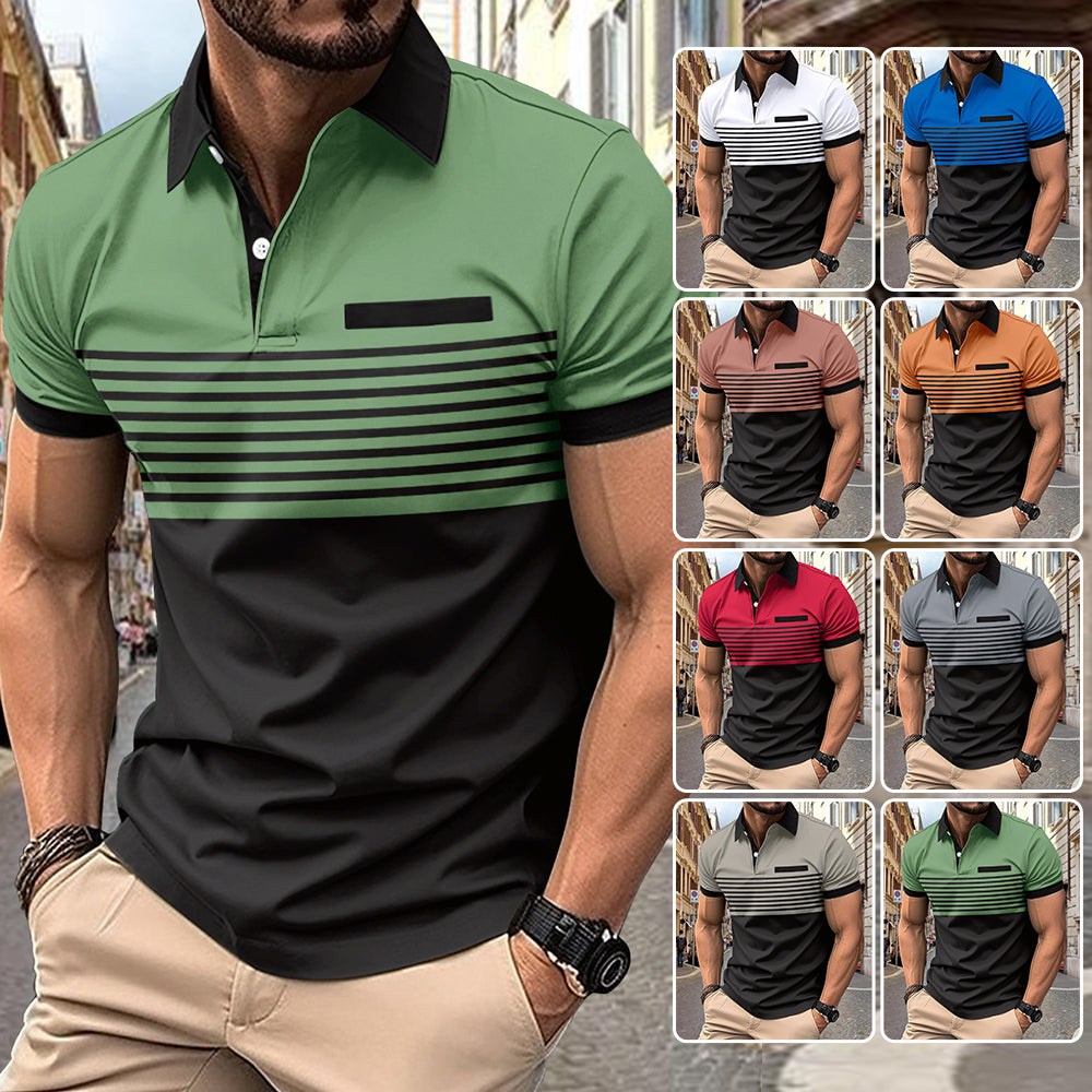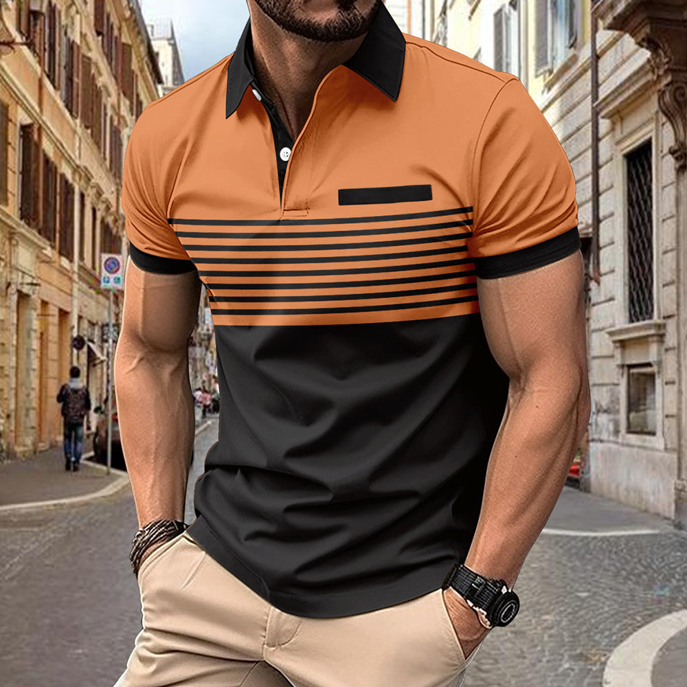 • 1 x Gestreiftes Farbblock-Revers-Poloshirt für Herren