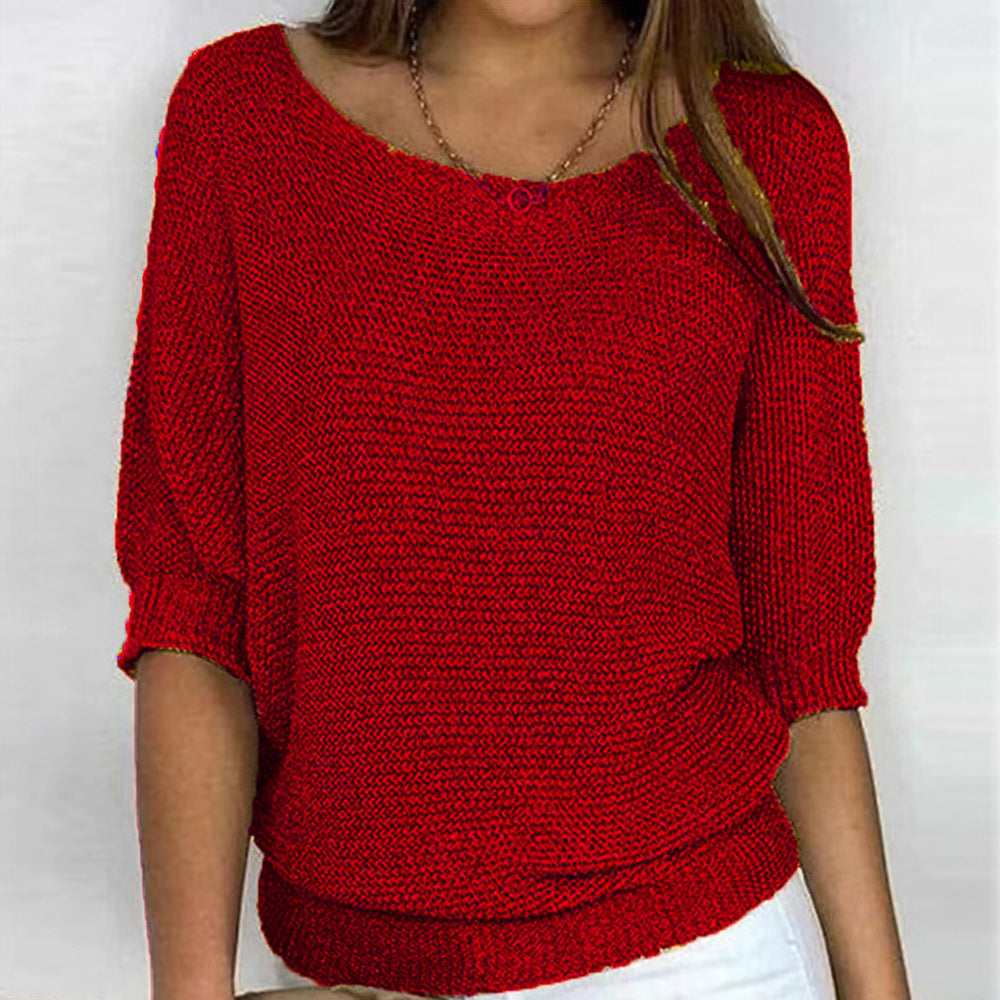 Neuer Einfarbiger Rundhalspullover Mit Dreiviertelärmeln Für Damen