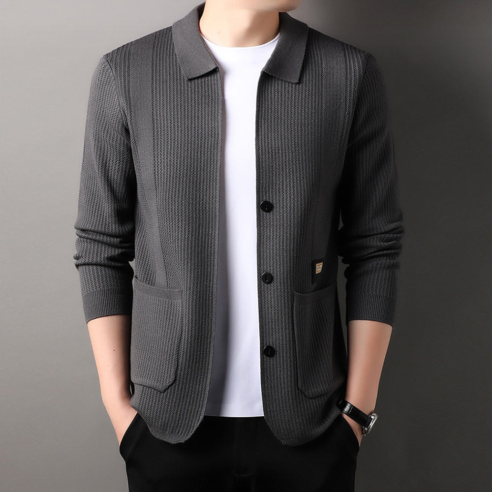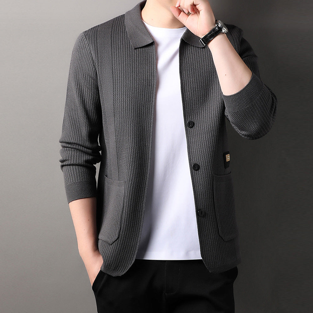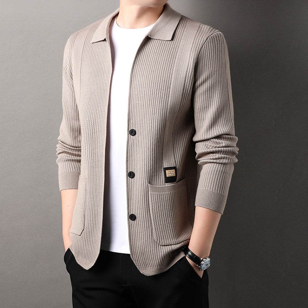 Schlichter Und Vielseitiger Herren-Cardigan Mit Revers Und Langen ärmeln