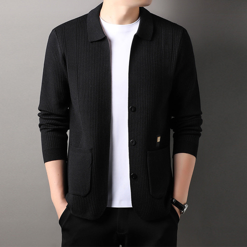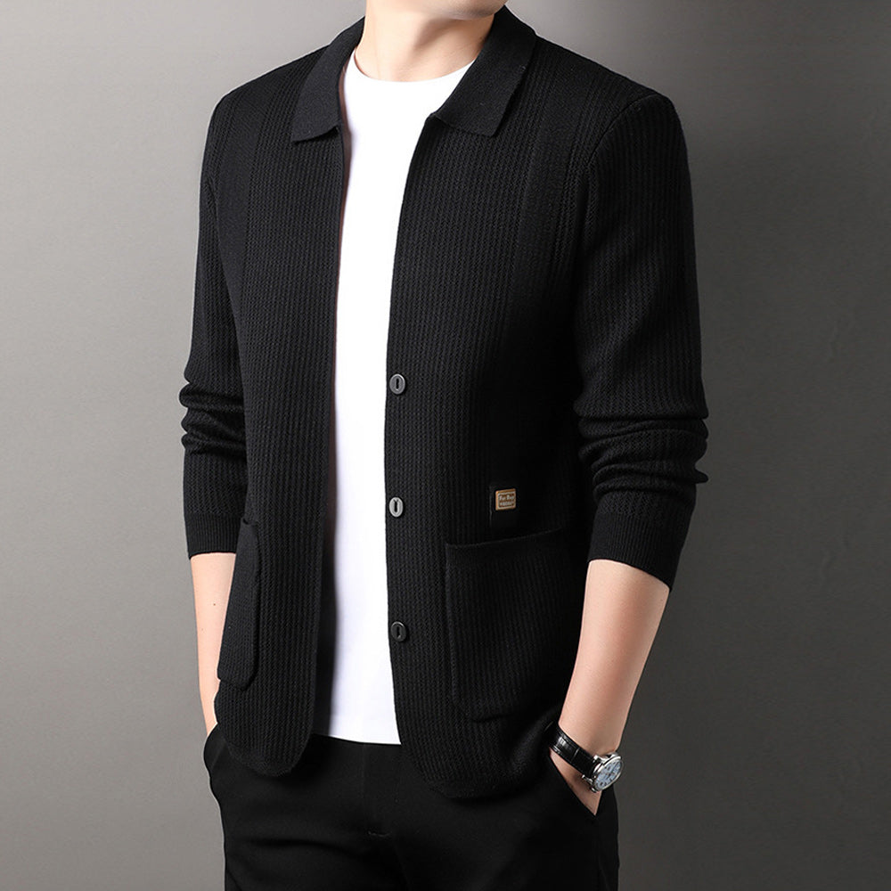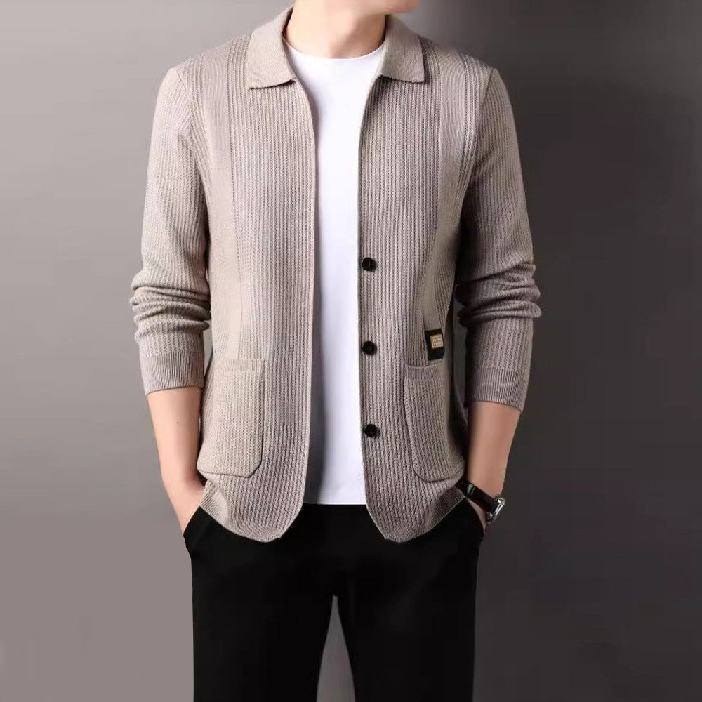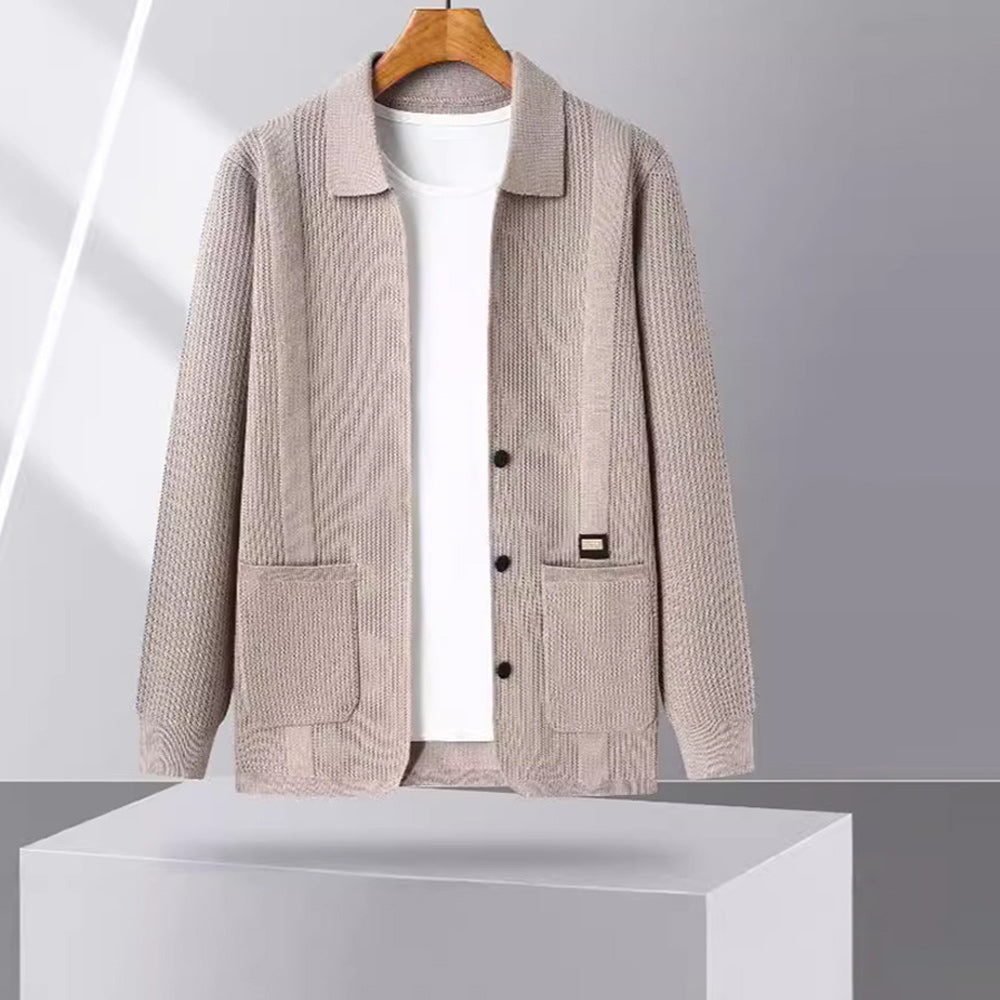 Schlichter Und Vielseitiger Herren-Cardigan Mit Revers Und Langen ärmeln