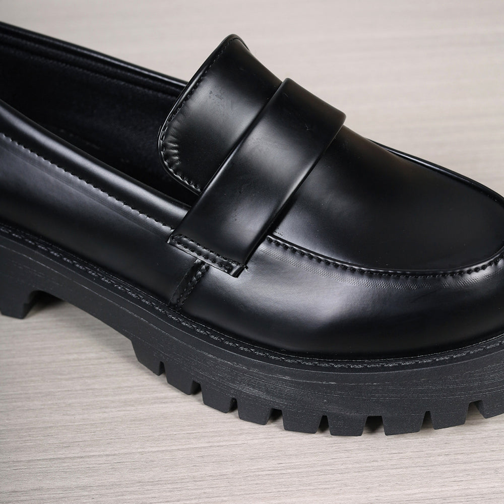 Schwarze Loafer Im Britischen Retro-Stil Mit Dicker Sohle