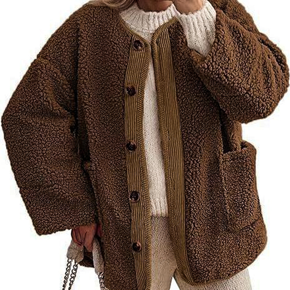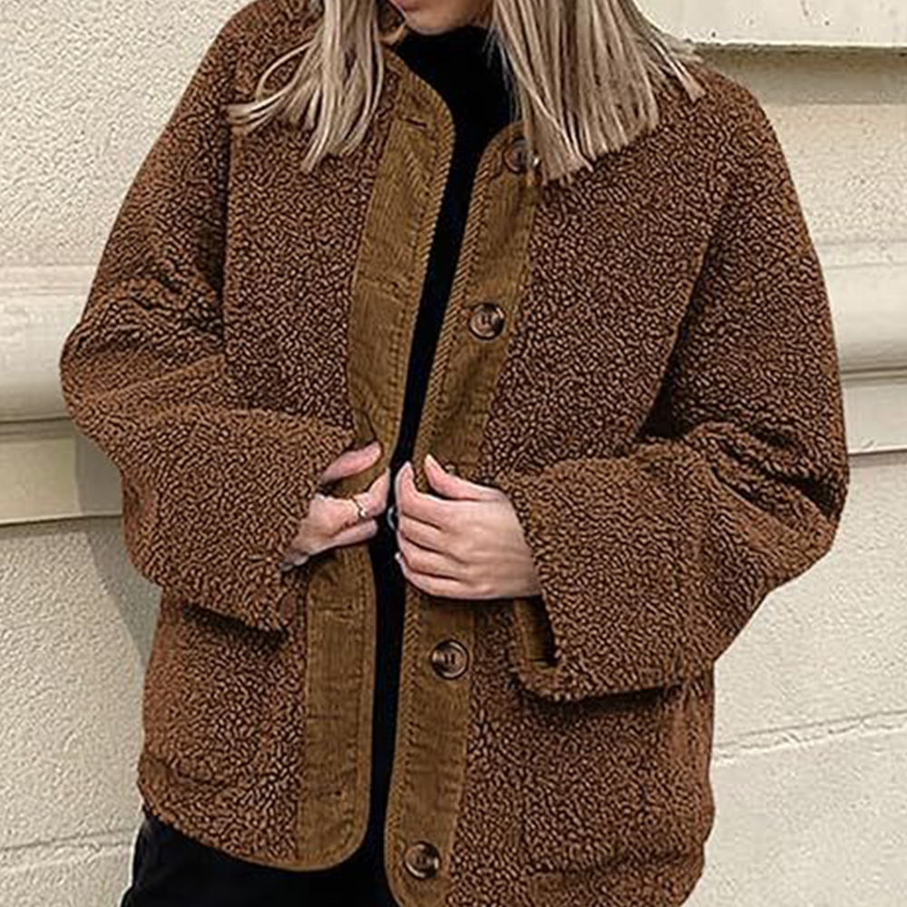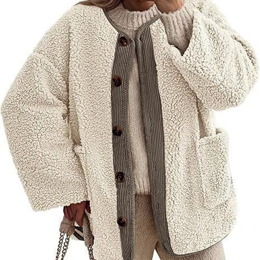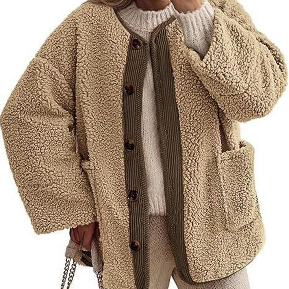 Warmer Wintermantel für Damen mit Knopfleiste und Plüsch-Sherpa-Jacke