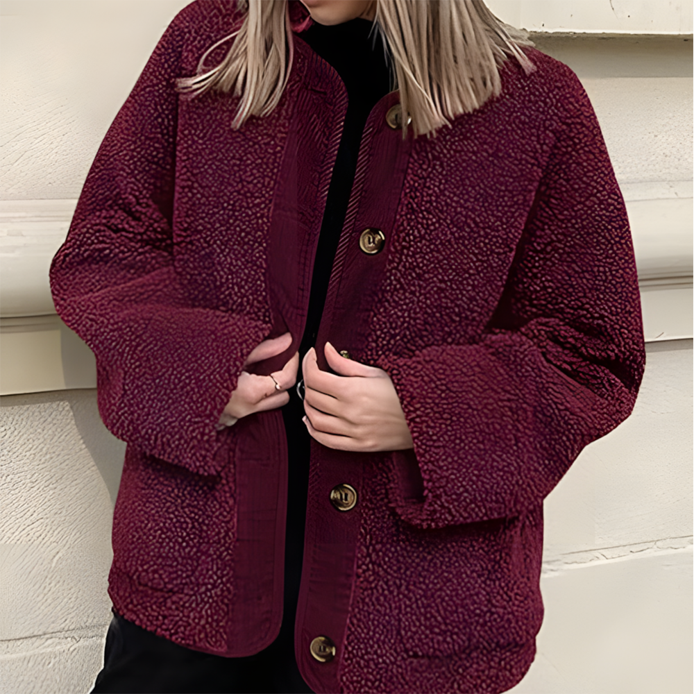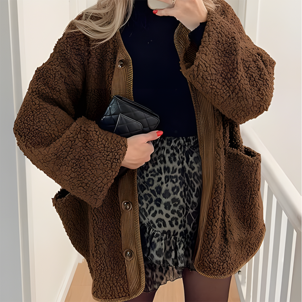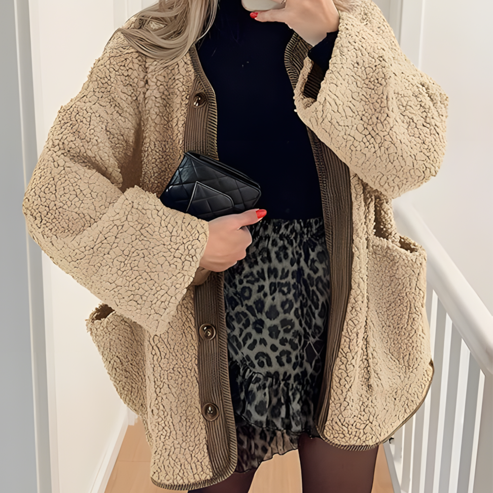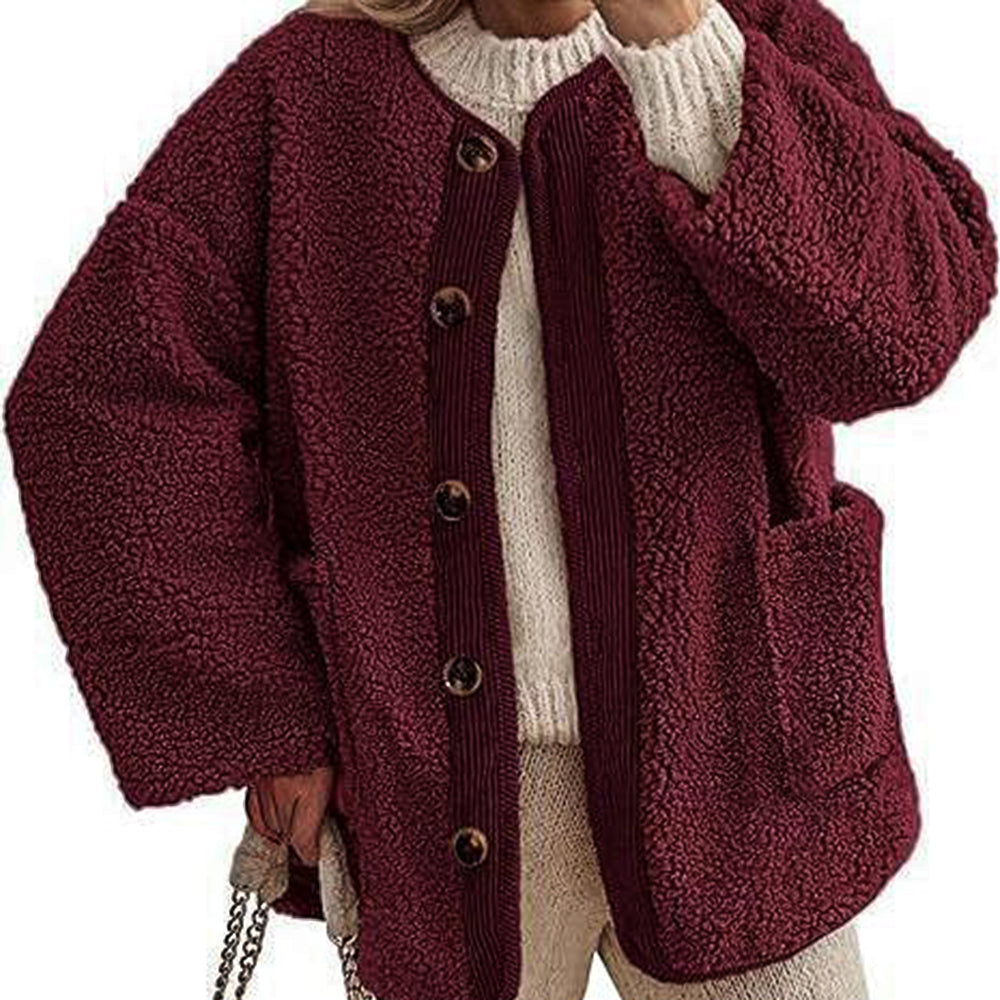 Warmer Wintermantel für Damen mit Knopfleiste und Plüsch-Sherpa-Jacke