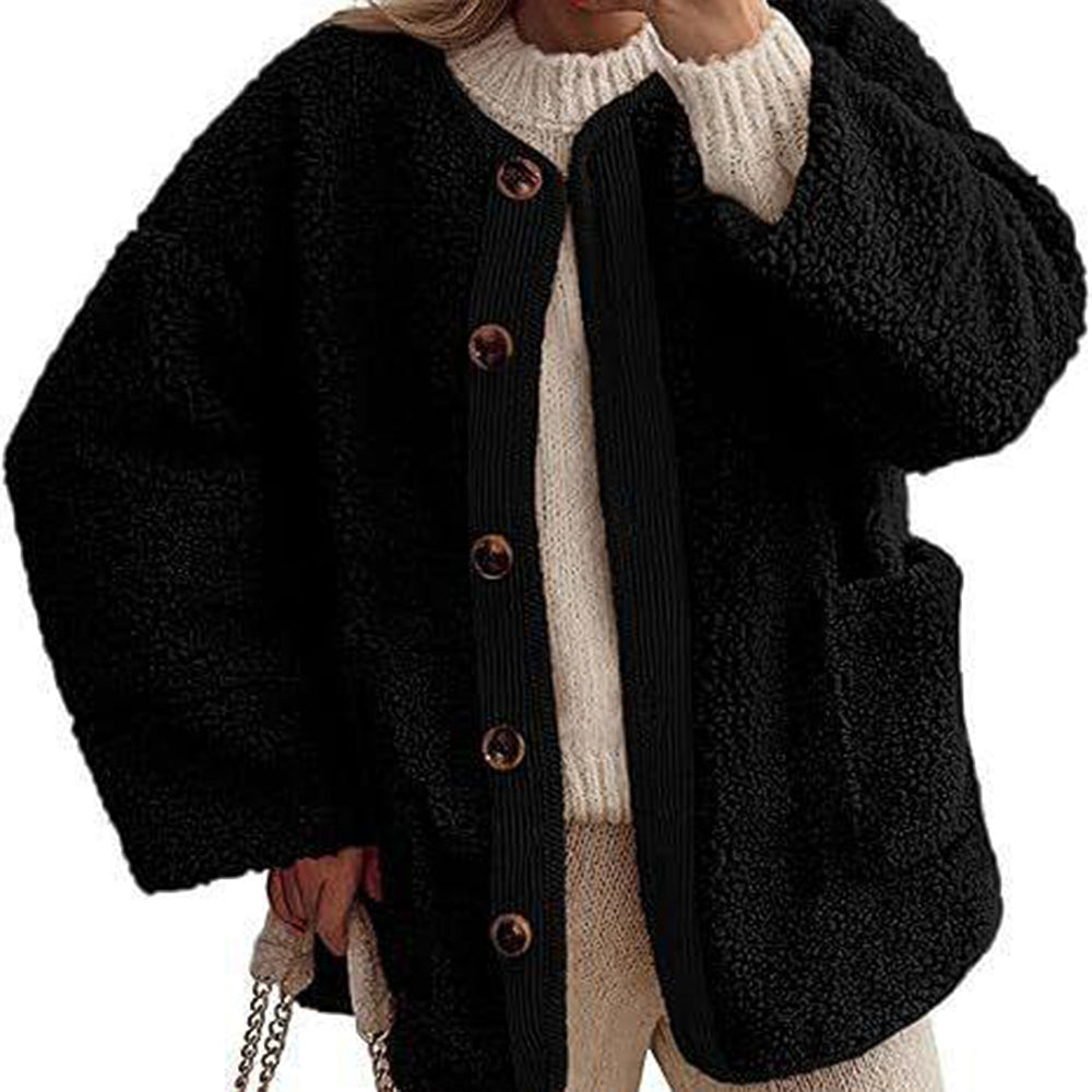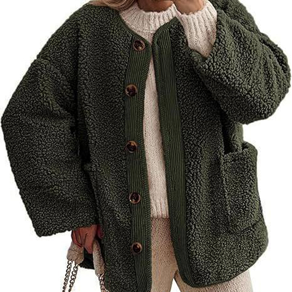 • 1 x Warmer Wintermantel für Damen mit Knopfleiste und Plüsch-Sherpa-Jacke