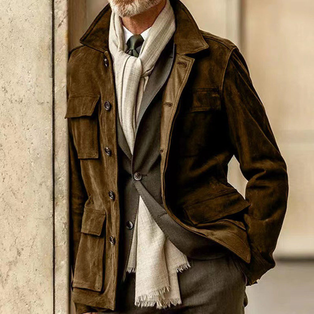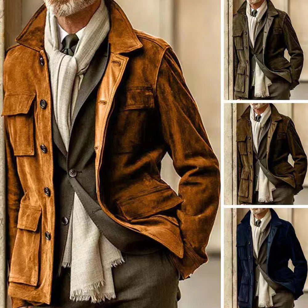 🍂🌼Stoff: Diese Jacke ist aus hochwertigen Stoffen gefertigt, um ein Trageerlebnis zu schaffen, das sowohl verschleißfest als auch warm ist. Nach einer speziellen Verarbeitung ist der Stoff weich und dennoch griffig und zeigt ein außergewöhnliches Gentleman-Aussehen.